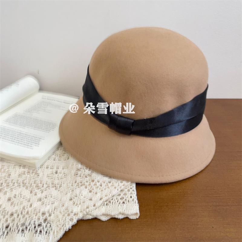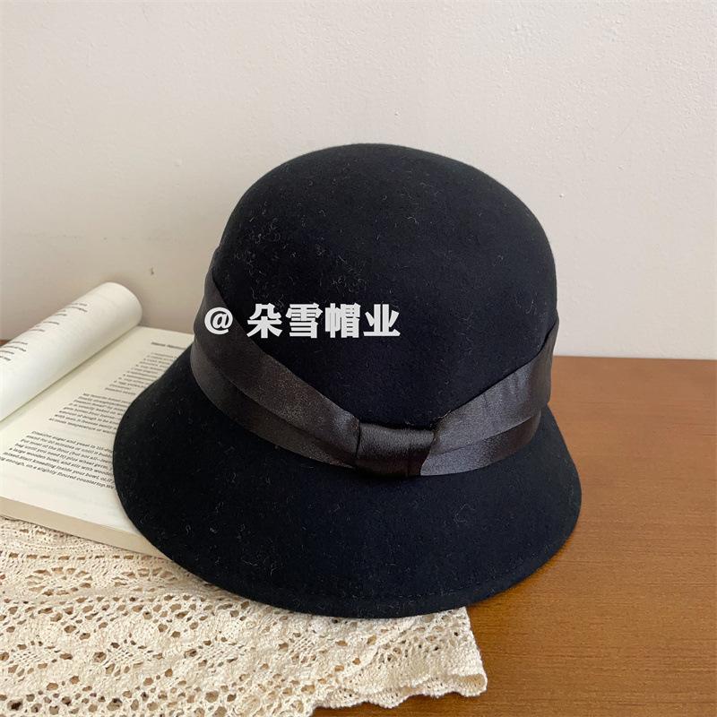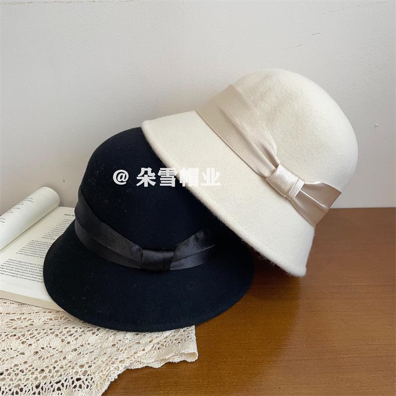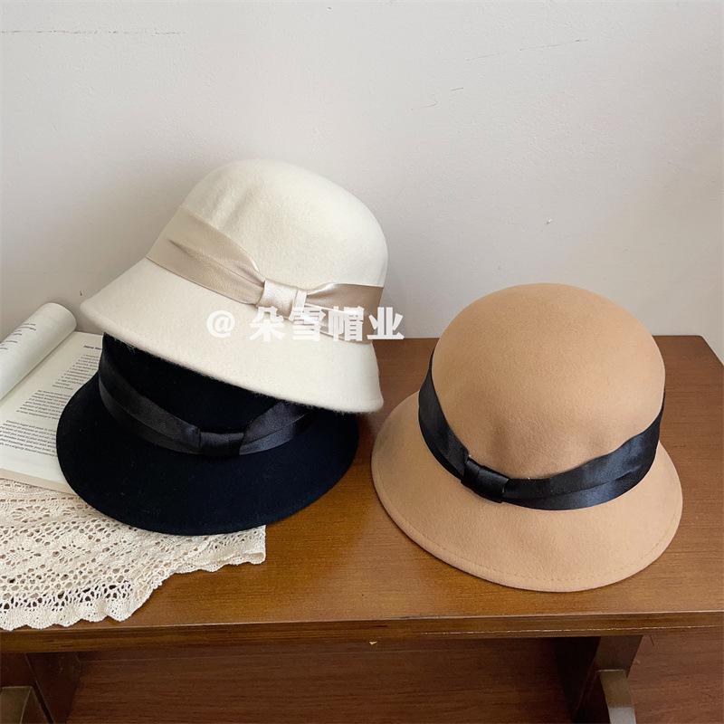 Gorro de lana nuevo para otoño e invierno, sombrero de fieltro retro francés de alta calidad para mujer, sombrero de pescador de moda, sombrero de lavabo pequeño para damas de alta sociedad.