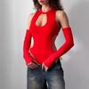 Disponible en Europa y Estados Unidos, otoño transfronterizo, chica sexy, sin tirantes, top con agujeros, ajustado, manga larga, mono para mujer, venta al por mayor