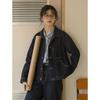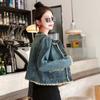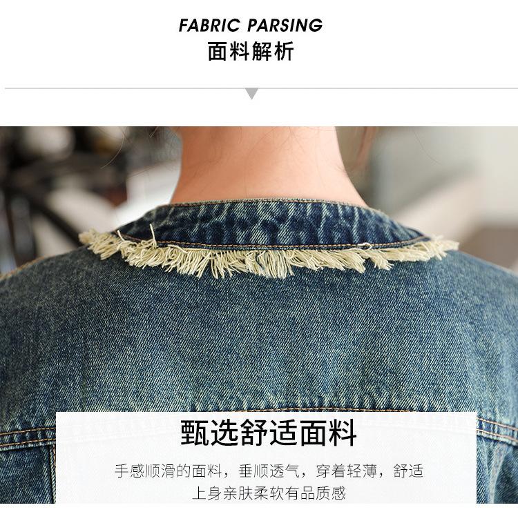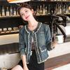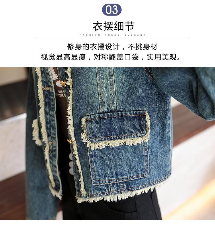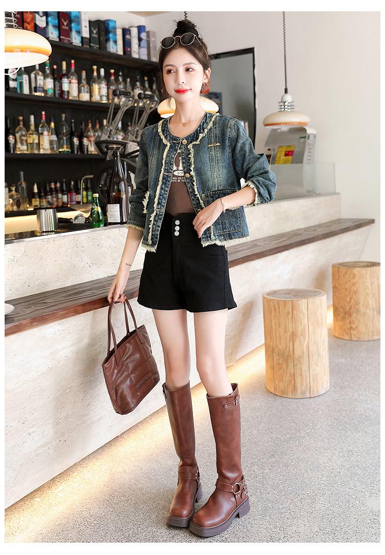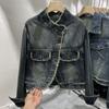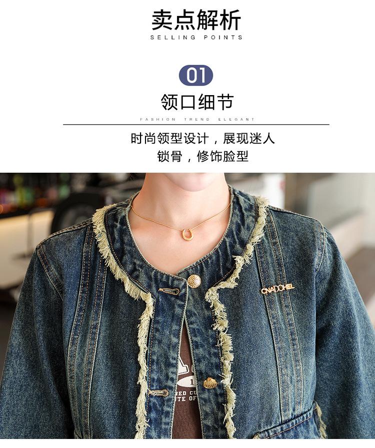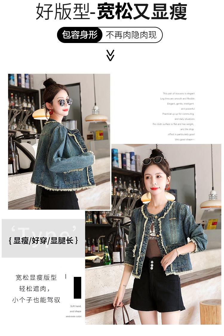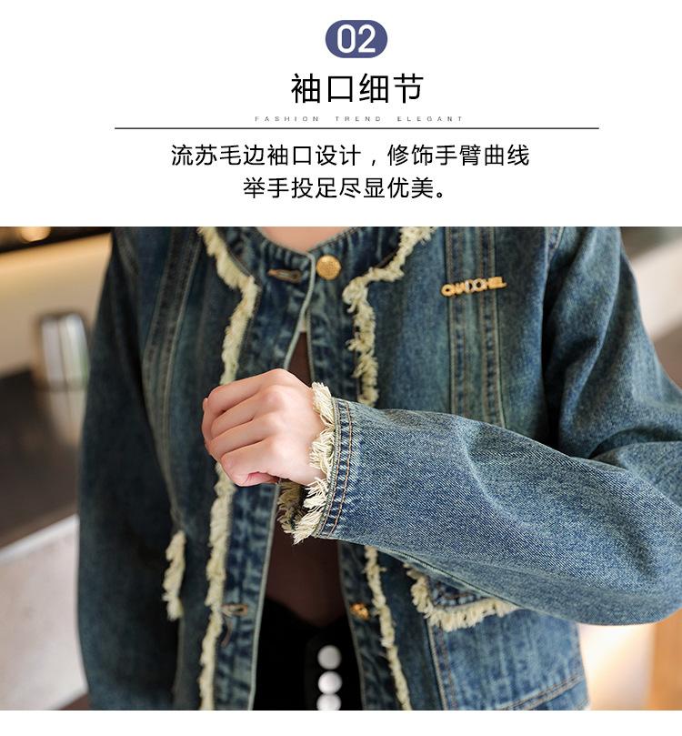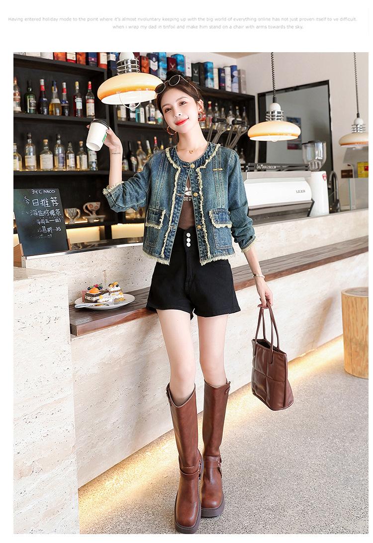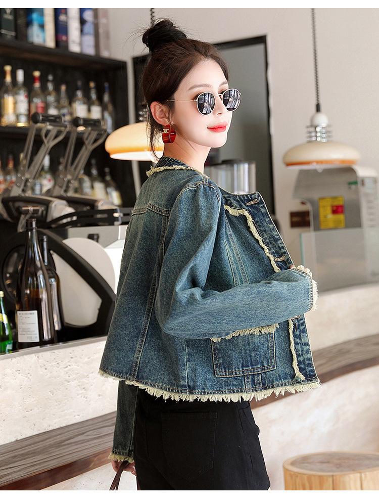 Abrigo corto de mezclilla retro estilo Hong Kong para mujer 2023 Primavera y Otoño Nuevo con flecos deshilachados cuello redondo estilo ropa de trabajo chaqueta top a la moda