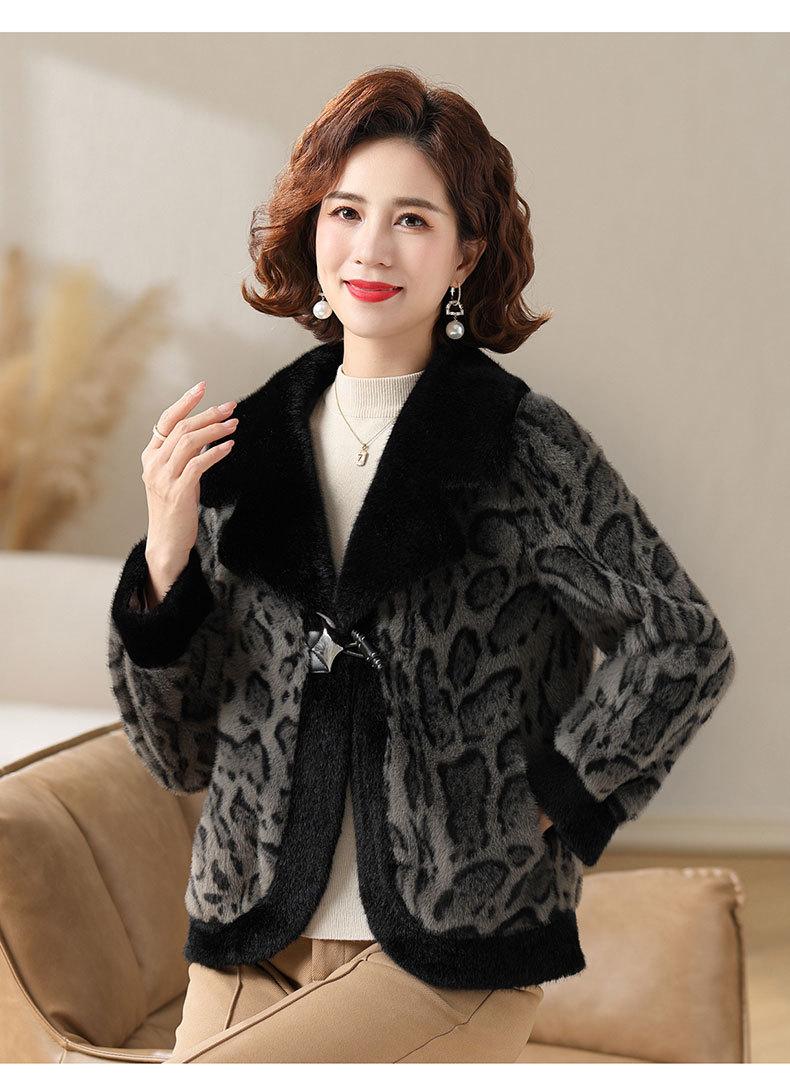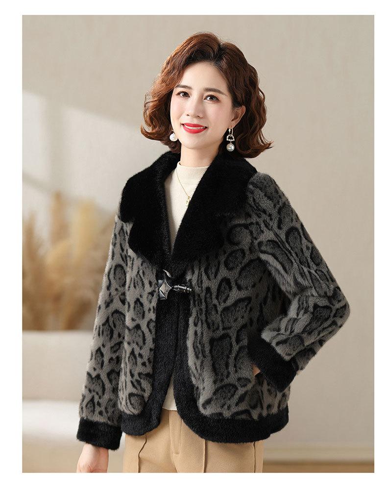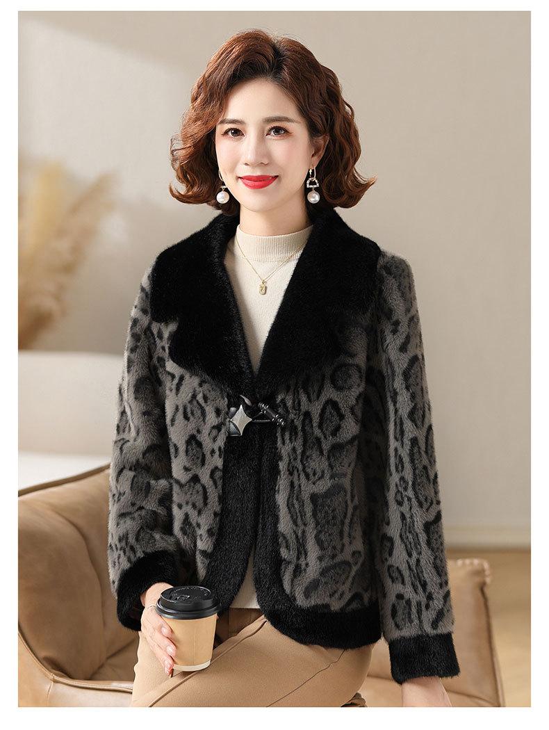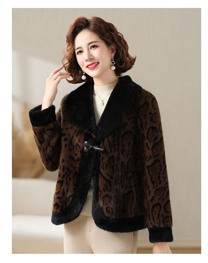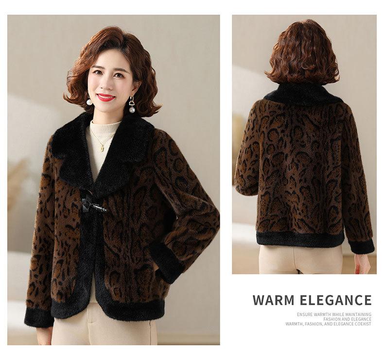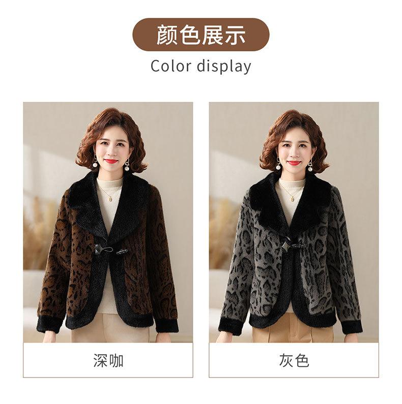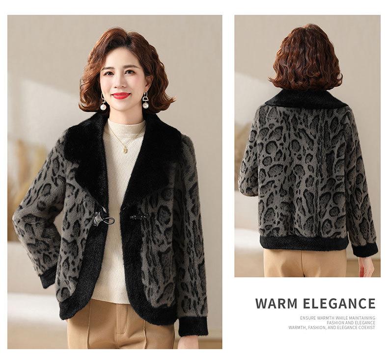 Abrigo corto de terciopelo de visón de invierno para madre, nueva moda, abrigo de piel de leopardo de una pieza con relleno de algodón y piel sintética para mujeres de mediana edad y mayores