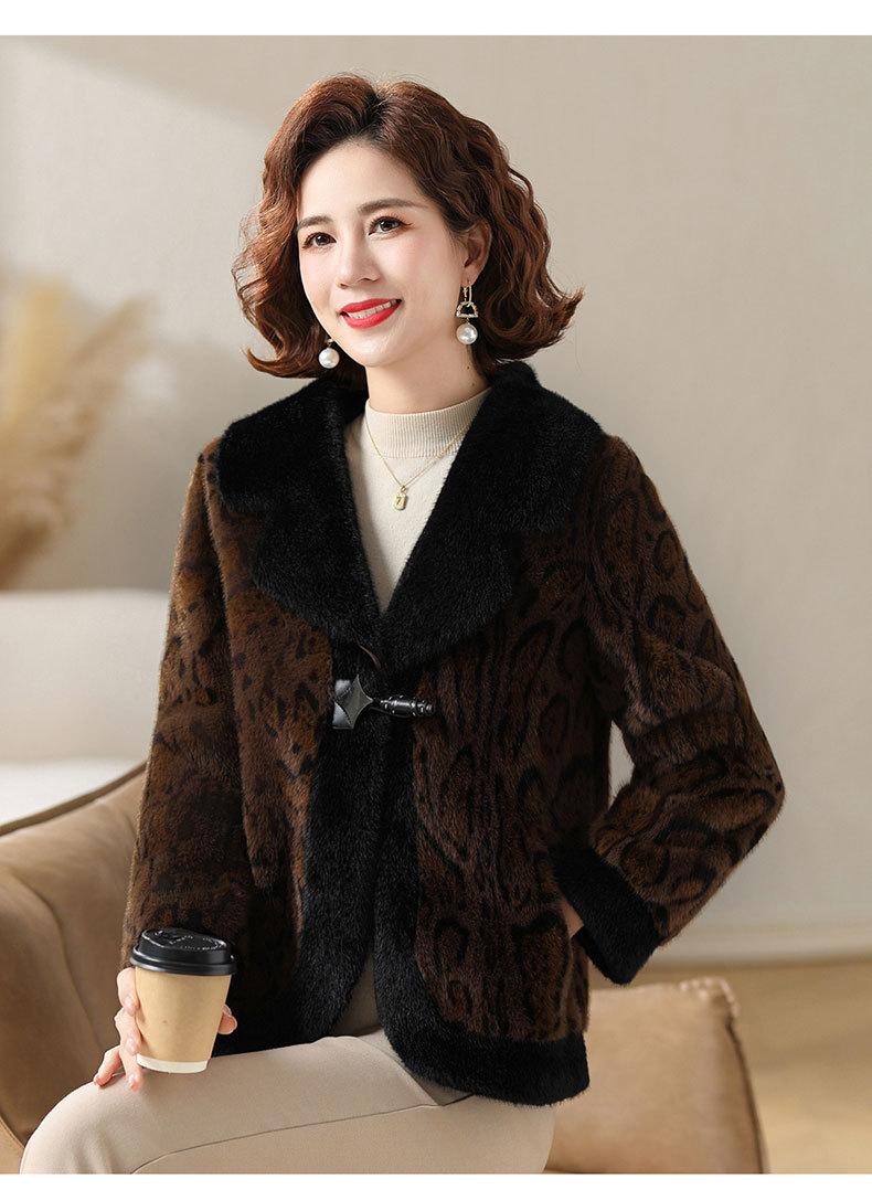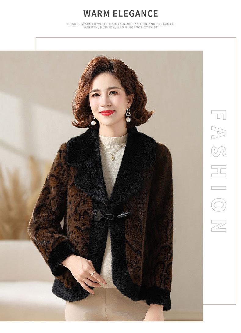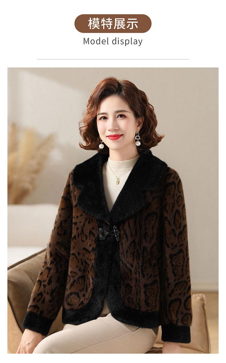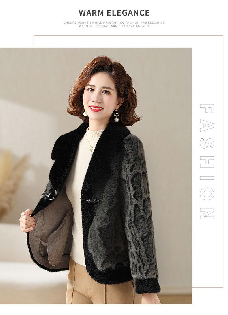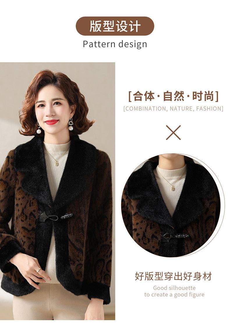 Abrigo corto de terciopelo de visón de invierno para madre, nueva moda, abrigo de piel de leopardo de una pieza con relleno de algodón y piel sintética para mujeres de mediana edad y mayores