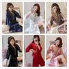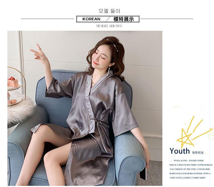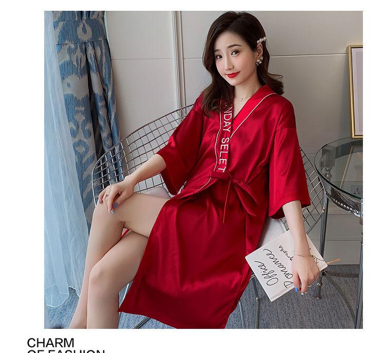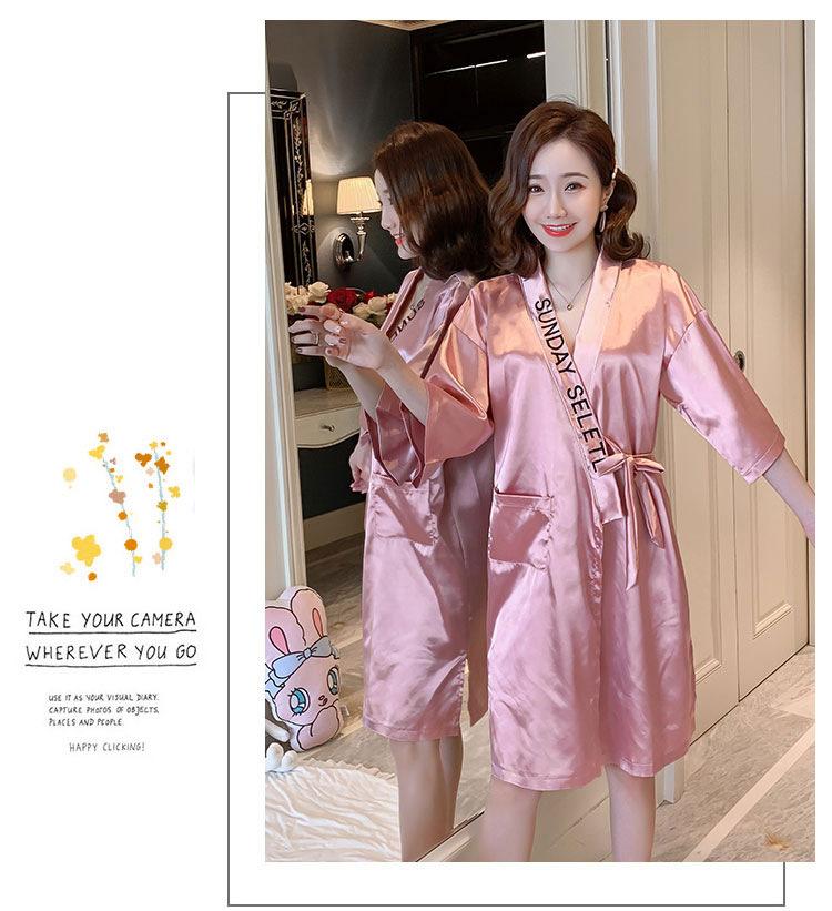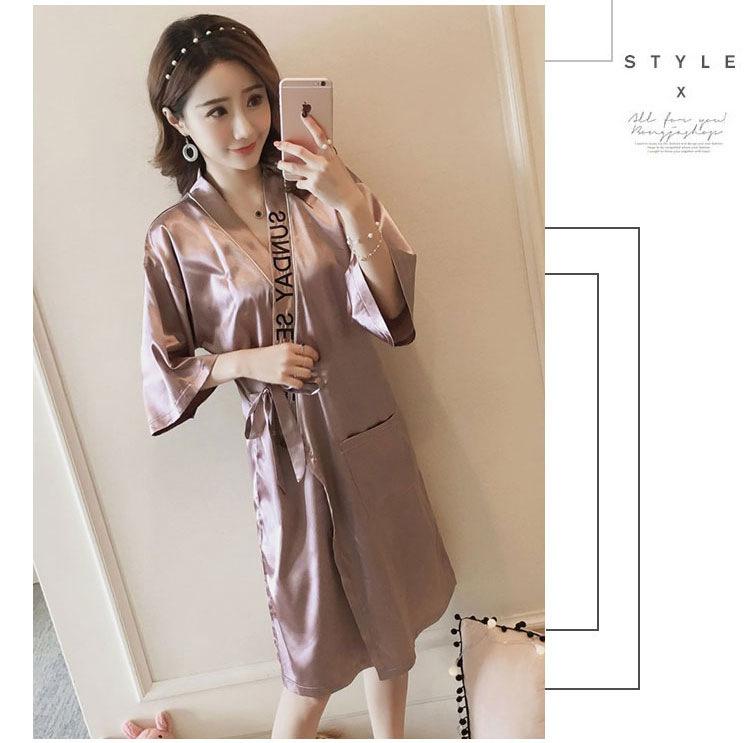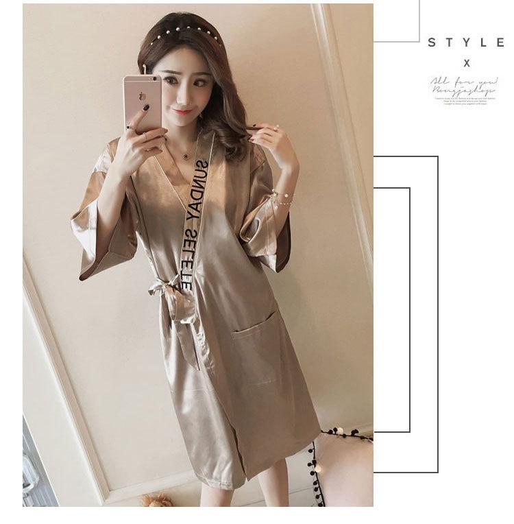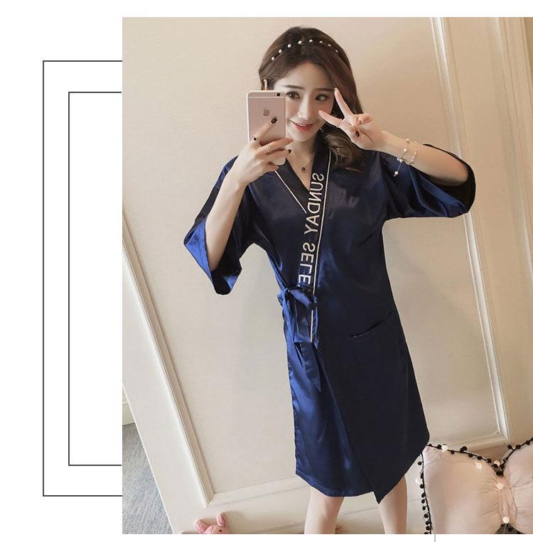 Kimono de seda de verano para mujer, de siete mangas y color liso, con letras, para el hogar, sexy, a la moda