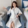 Ydd three-quarter sleeve bathrobe-white, Ydd three-quarter sleeve bathrobe-royal blue, Ydd three-quarter sleev...