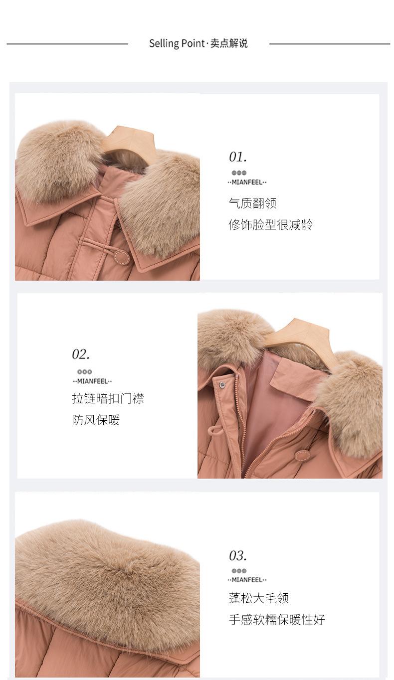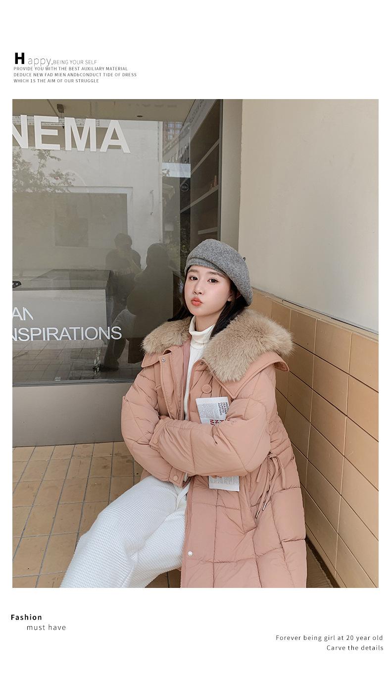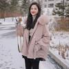 2024 Nuevo Estilo Coreano Abrigo de Algodón Grueso con Cuello Grande de Lana para Mujer Invierno Medio Largo Suelto Abrigo de Algodón Acolchado