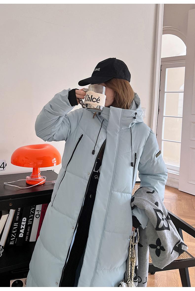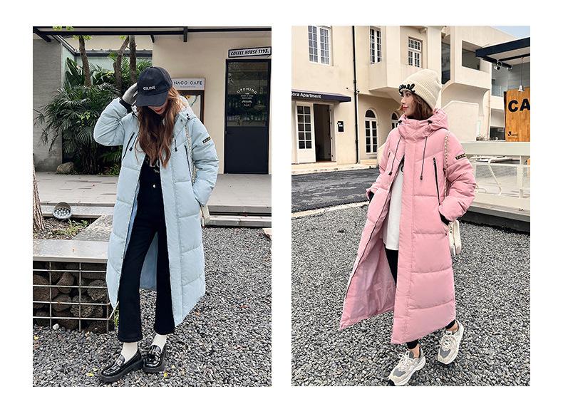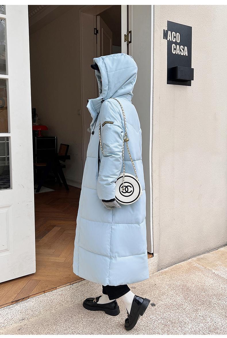2023 Invierno Nueva Moda Abrigo Holgado con Capucha Acolchado de Algodón para Mujer Elegante Extra Largo Grueso Tipo Pan Cálido