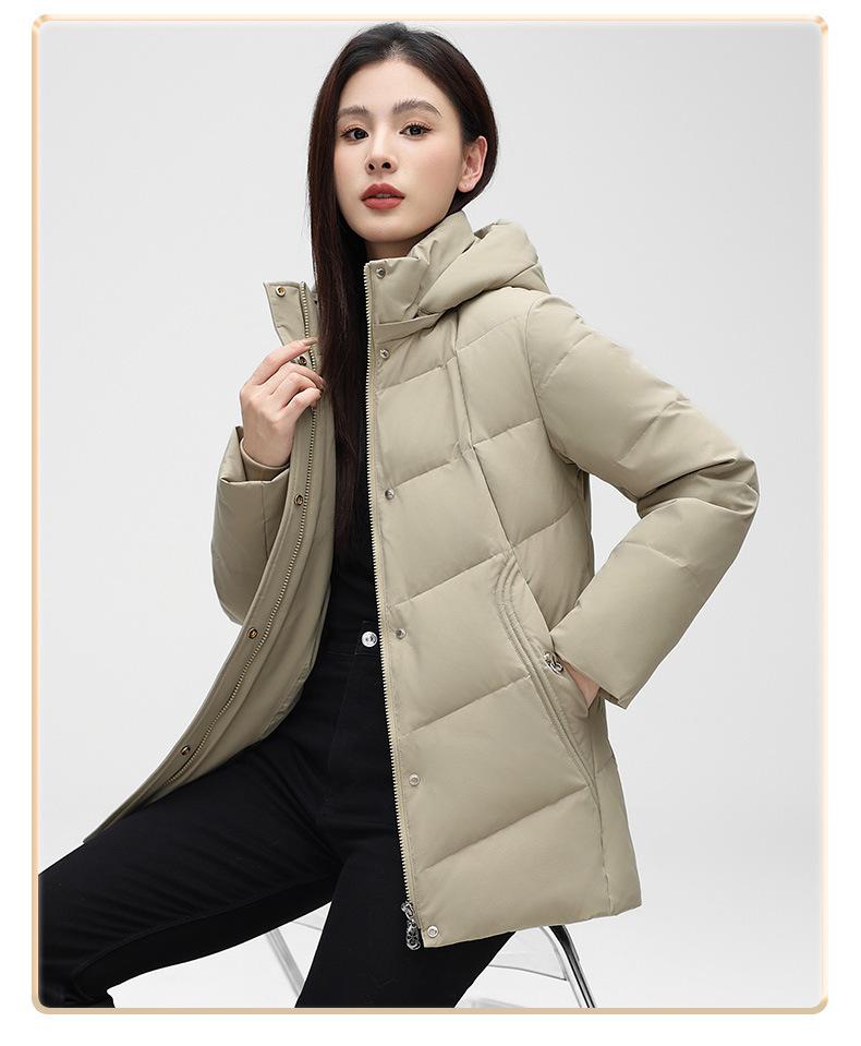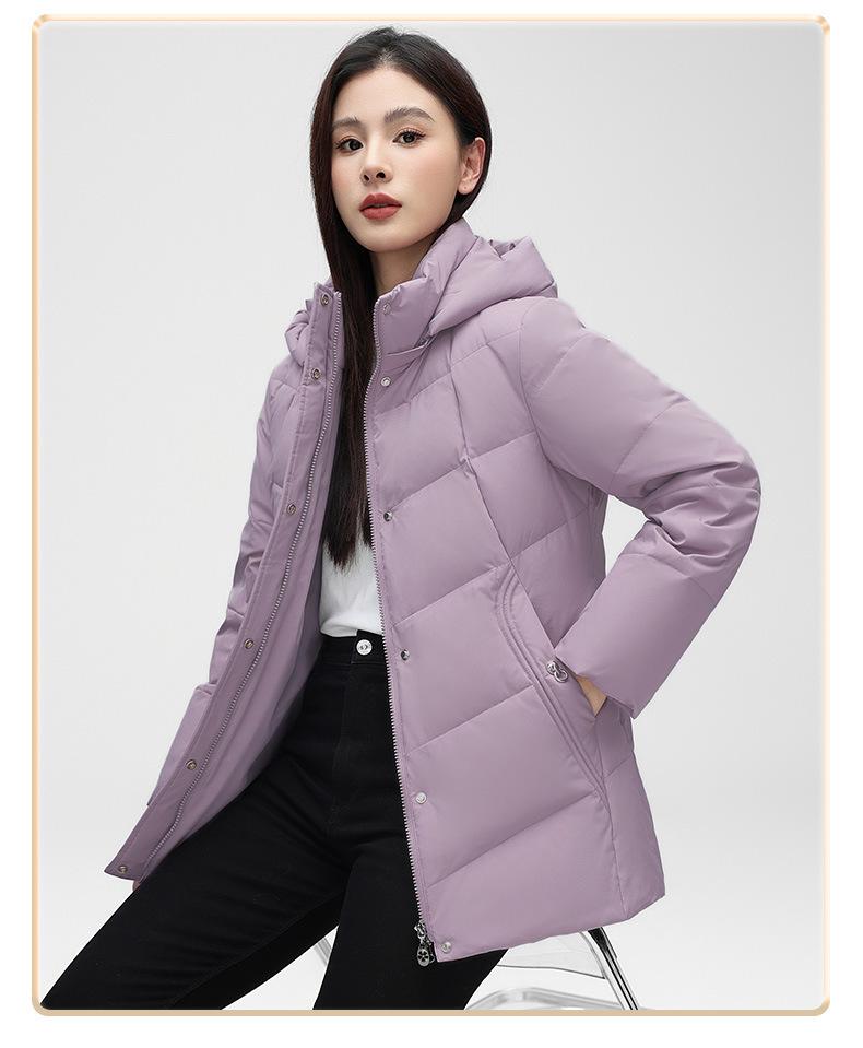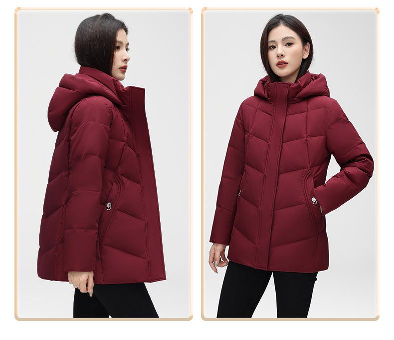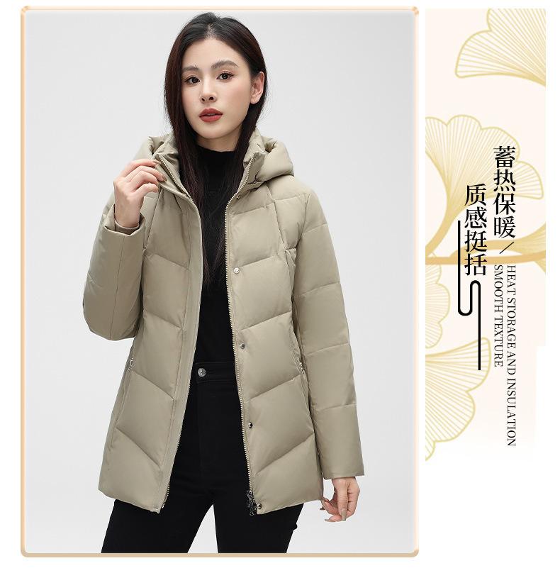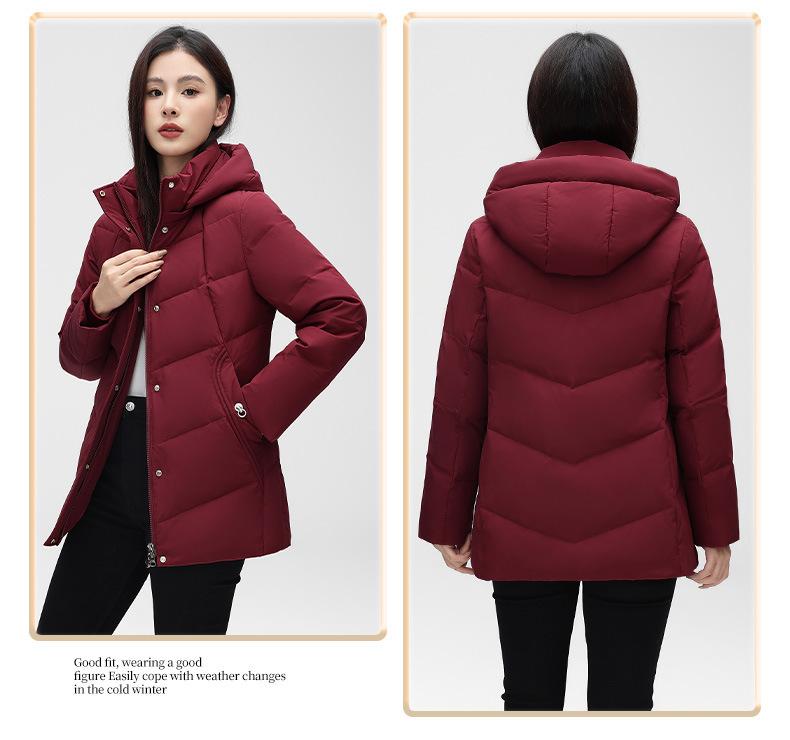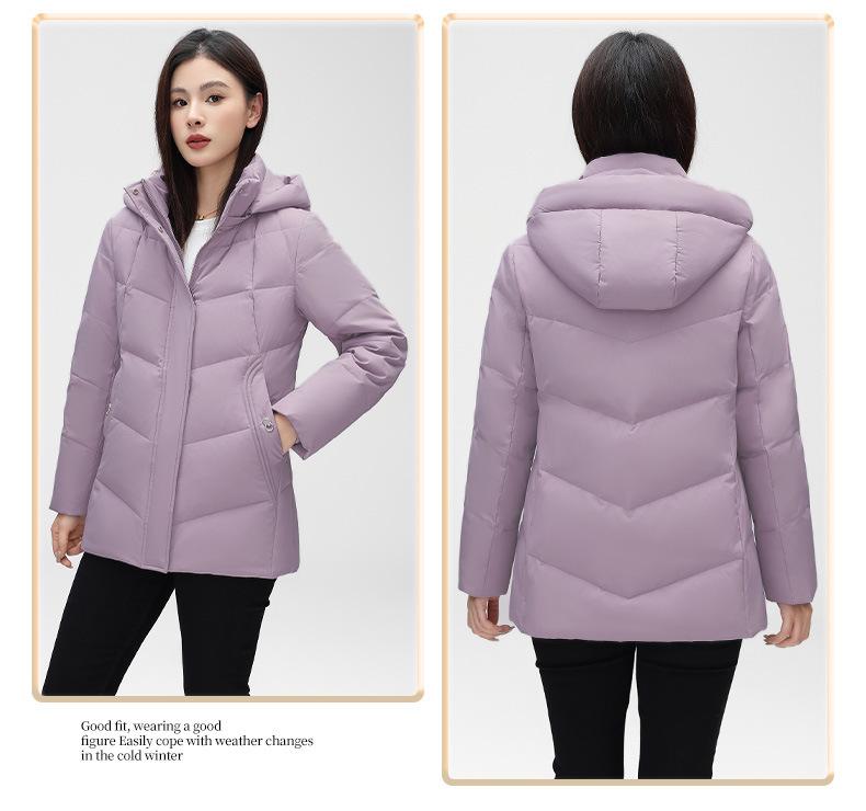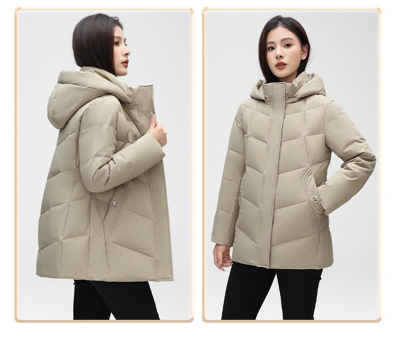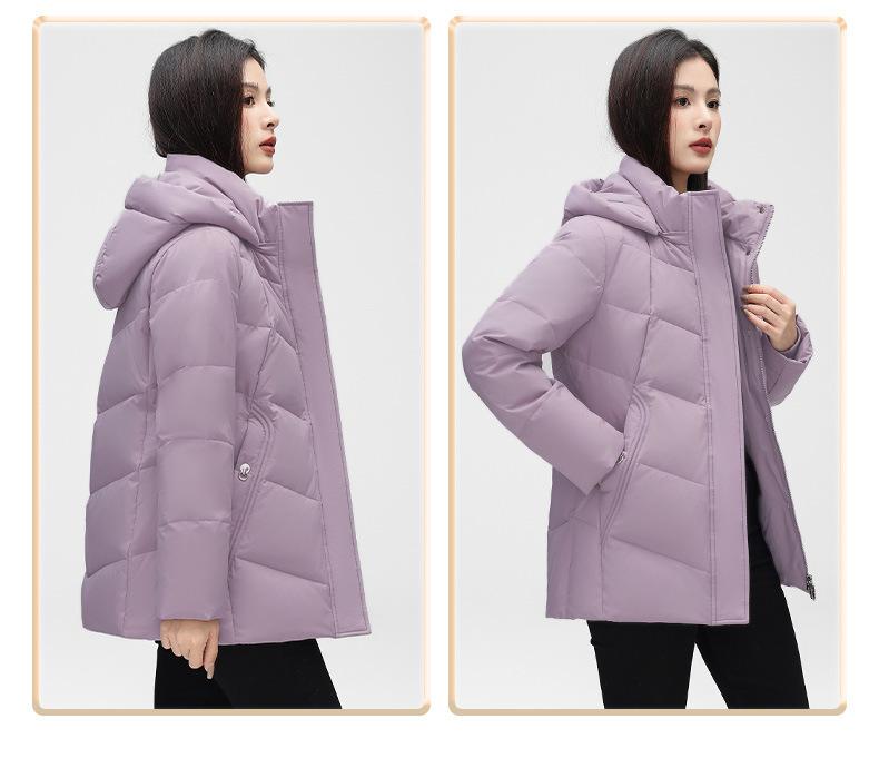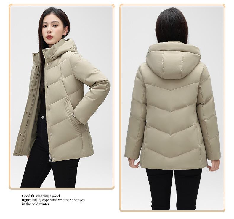 Chaqueta de plumón de pato blanca para mujer, corta y holgada, 2024, recién llegada en stock, ropa de invierno para madre, chaqueta de plumón con capucha de talla grande.