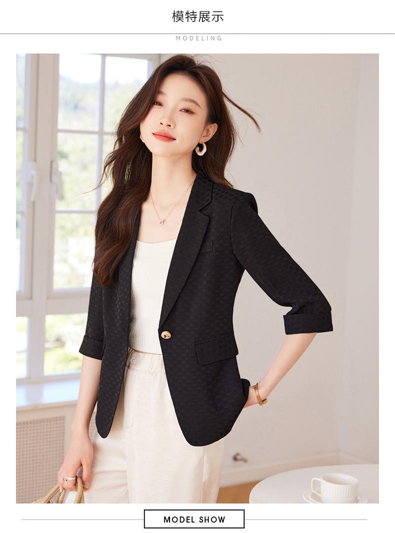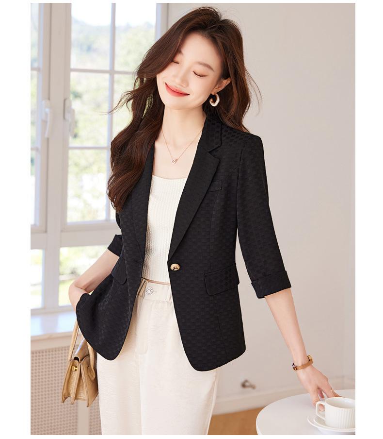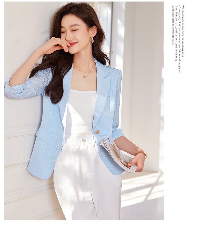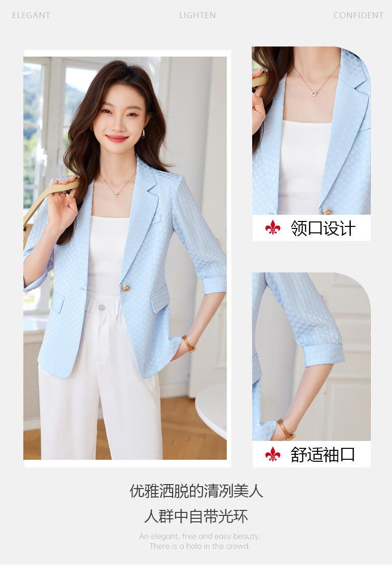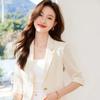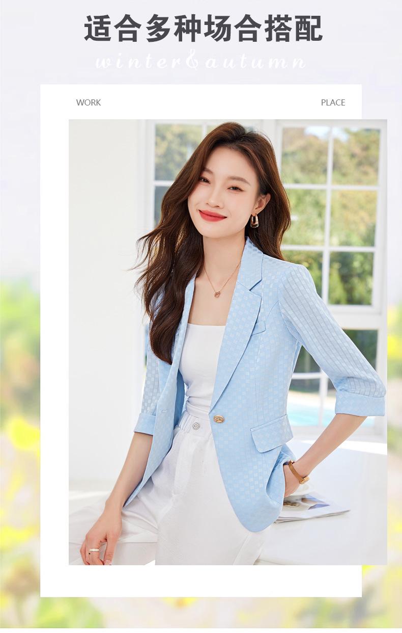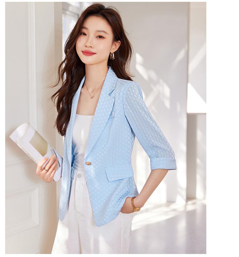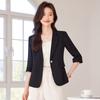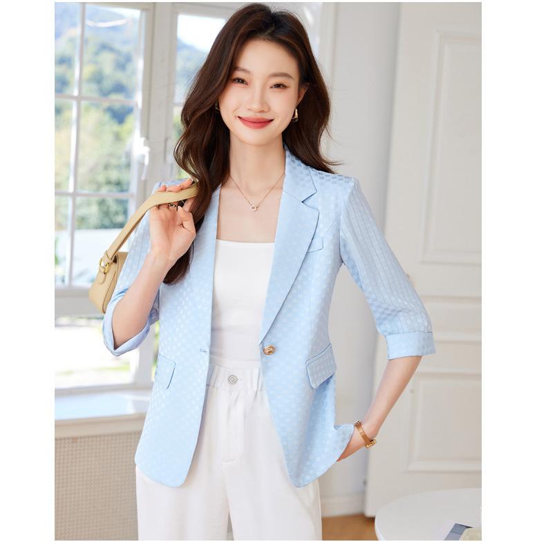 Chaqueta de traje pequeña de manga 3/4 azul para mujer, primavera y verano 2024, estilo informal, profesional, de temperamento sencillo