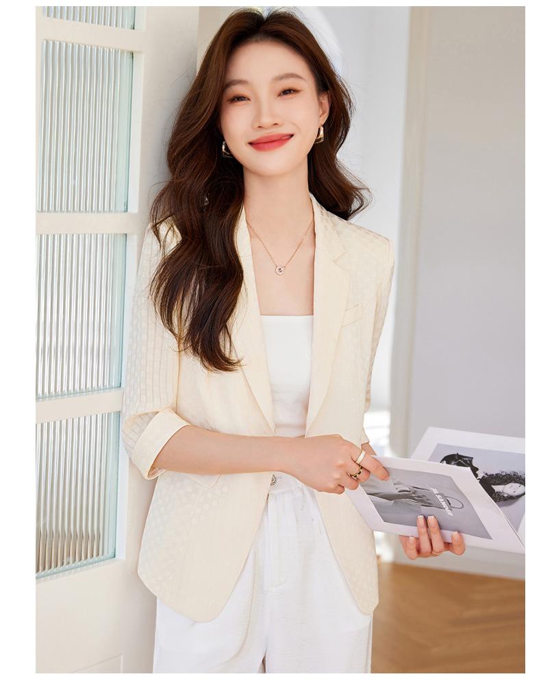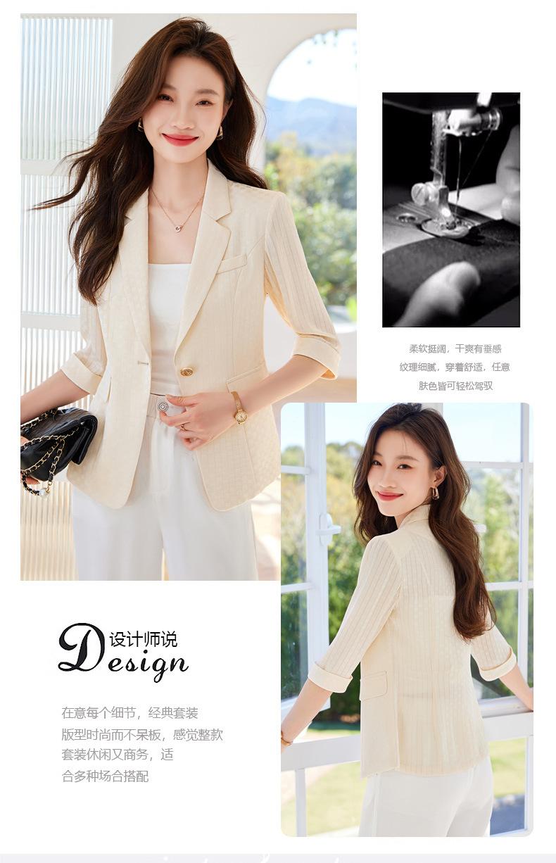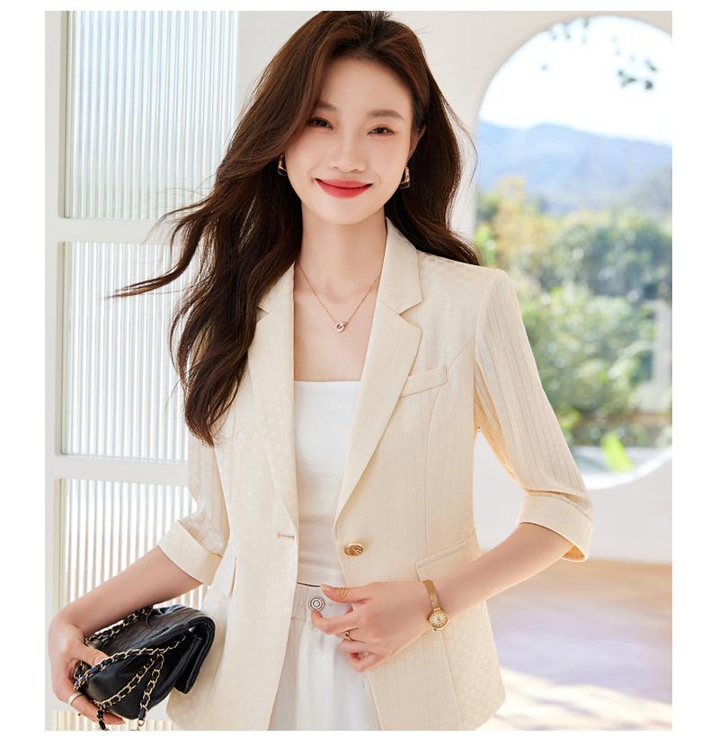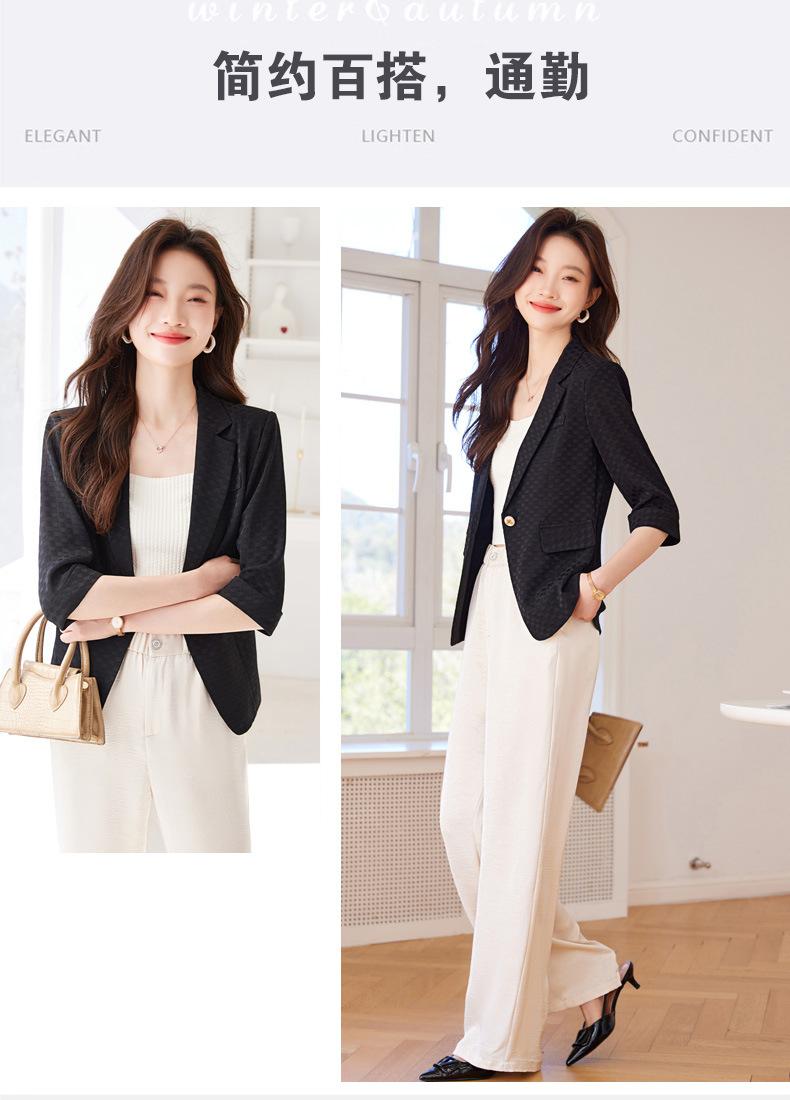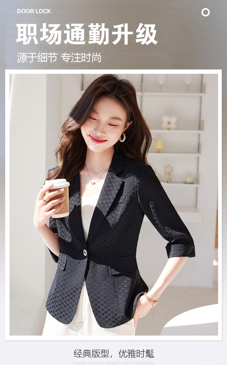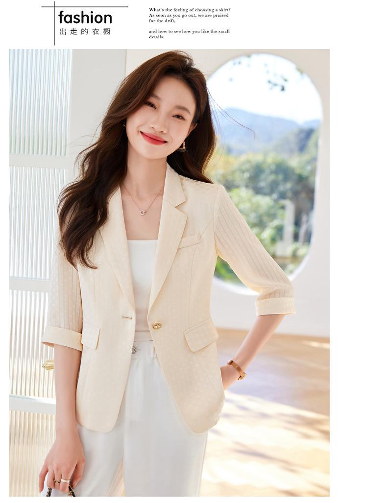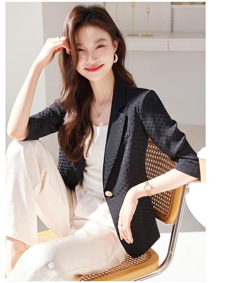 Chaqueta de traje pequeña de manga 3/4 azul para mujer, primavera y verano 2024, estilo informal, profesional, de temperamento sencillo