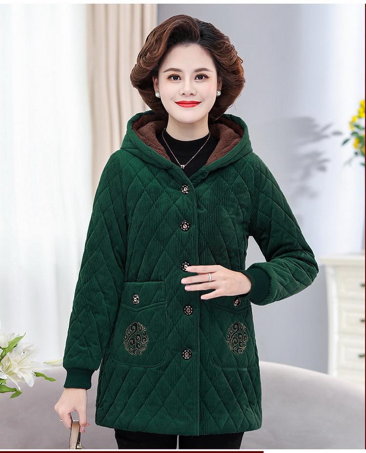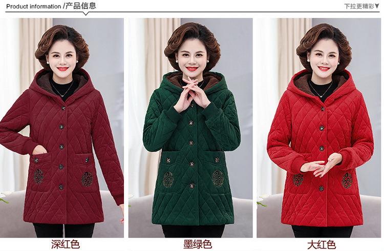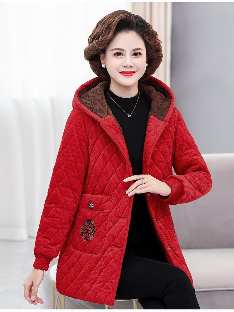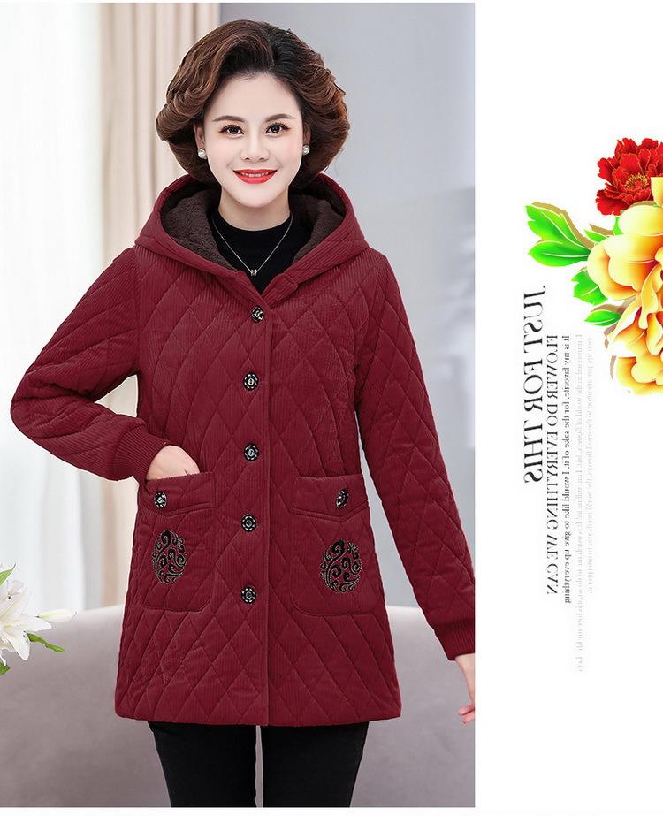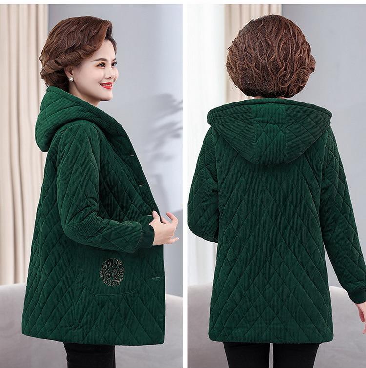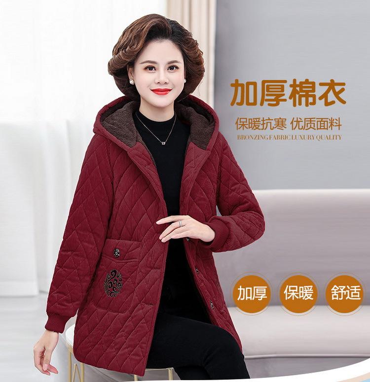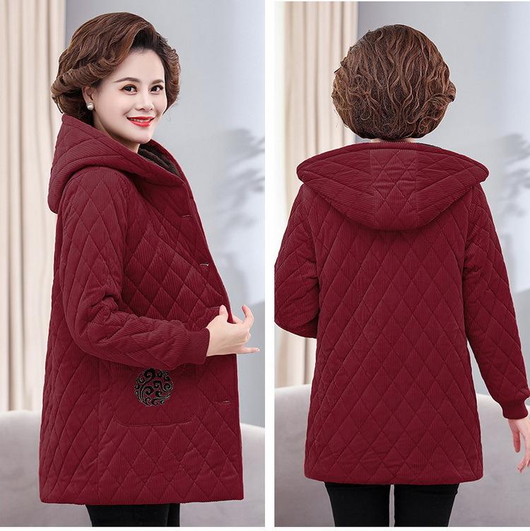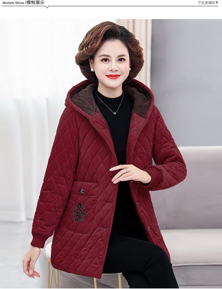 Abrigo grueso de algodón acolchado con forro polar para mamá, largo medio, cálido para invierno, ropa para mujeres de mediana edad y mayores, estilo occidental, abrigo de algodón acolchado bordado