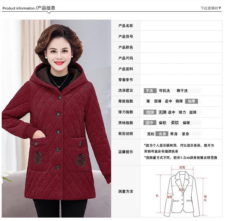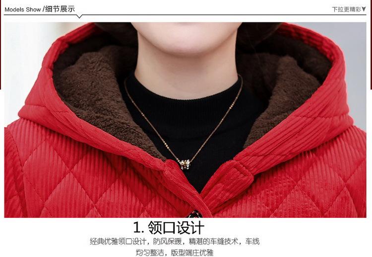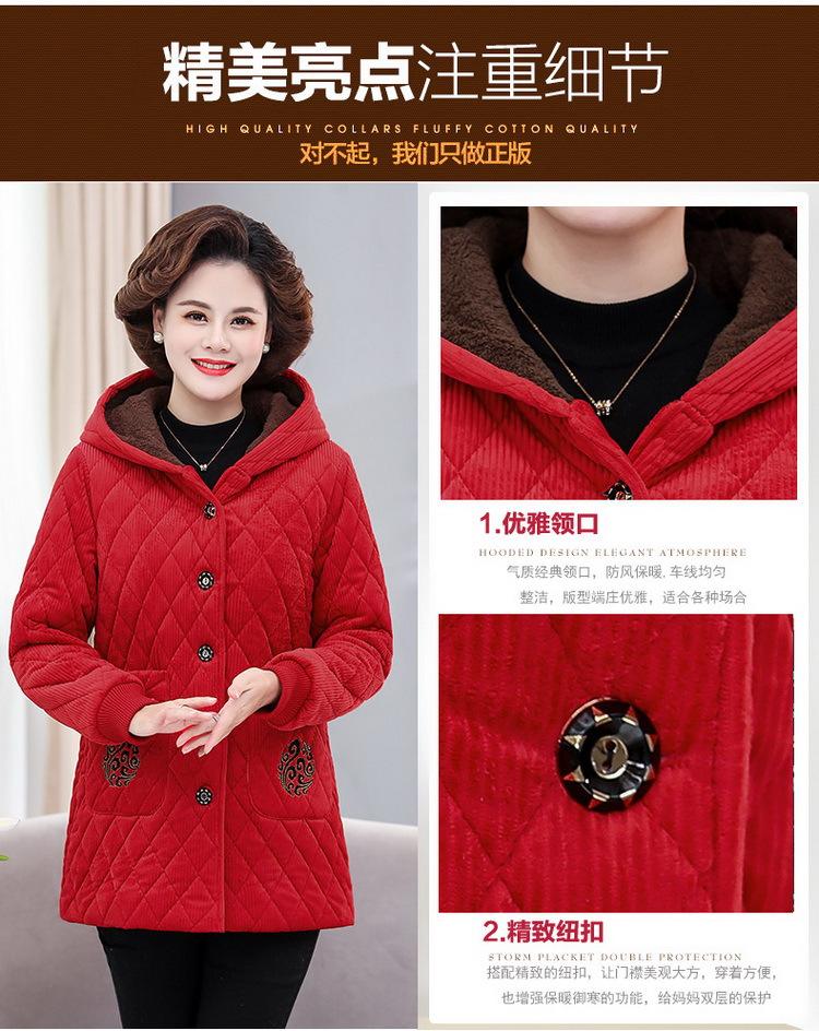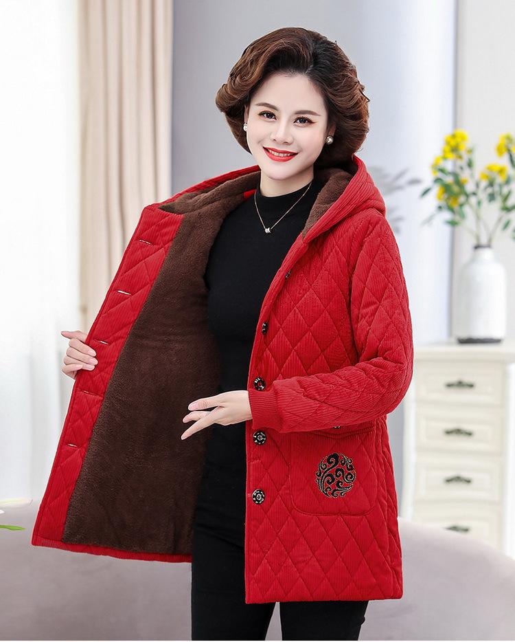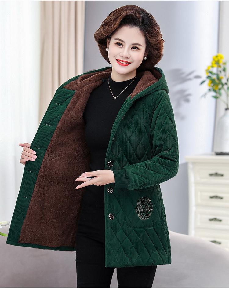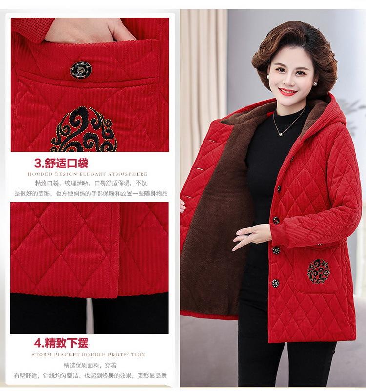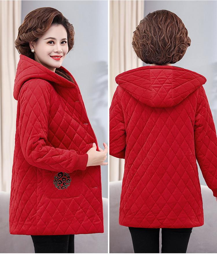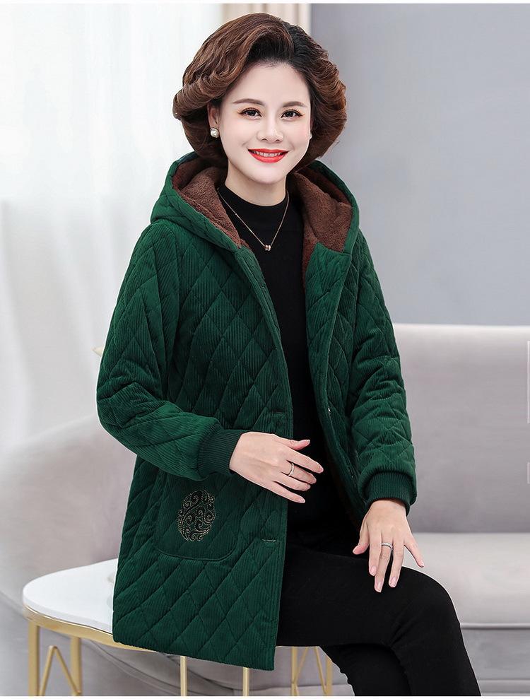 Abrigo grueso de algodón acolchado con forro polar para mamá, largo medio, cálido para invierno, ropa para mujeres de mediana edad y mayores, estilo occidental, abrigo de algodón acolchado bordado