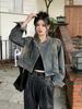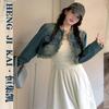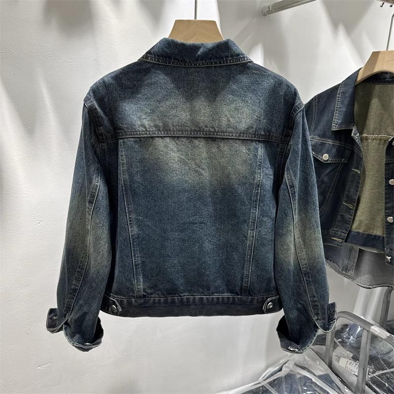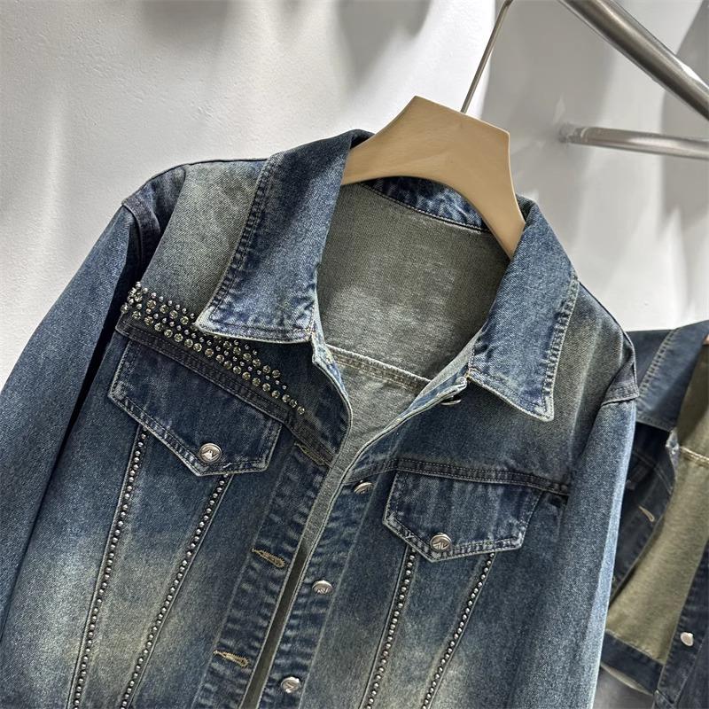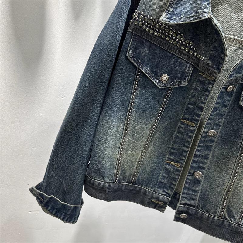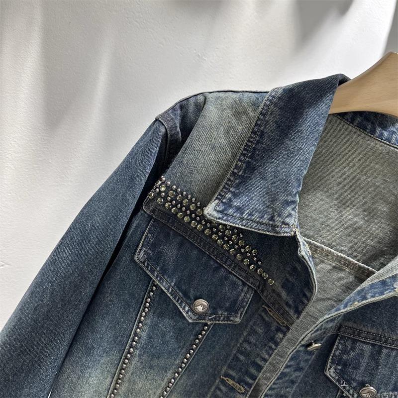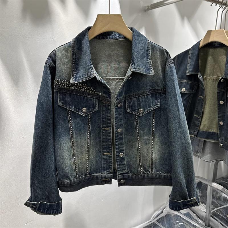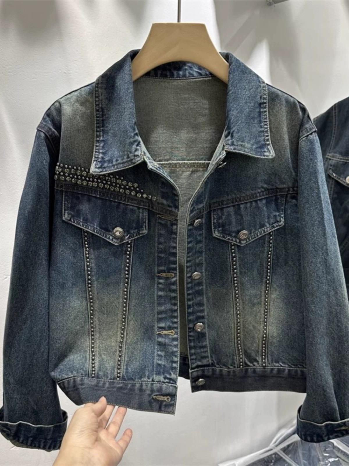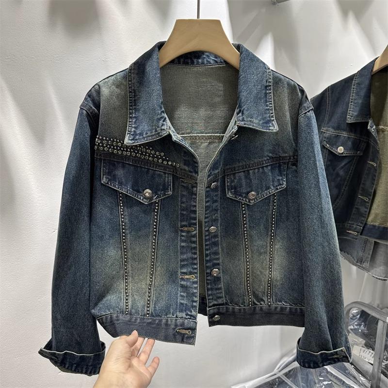 Chamarra de mezclilla con cuentas de alta gama para mujer 2025 Otoño Nueva Moda Chaqueta estilo Bf con top corto estilo Hong Kong