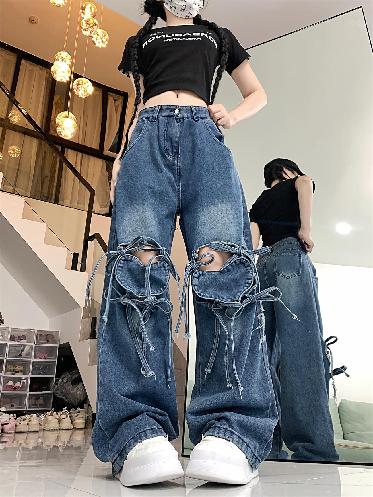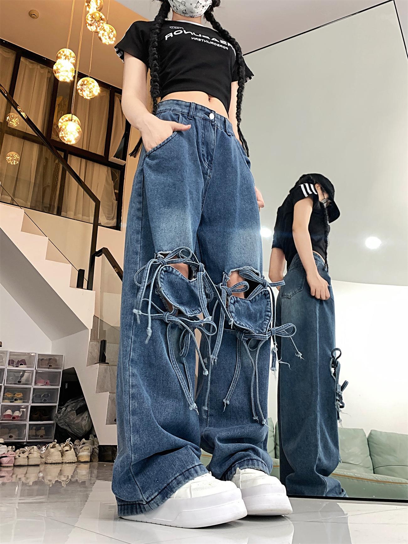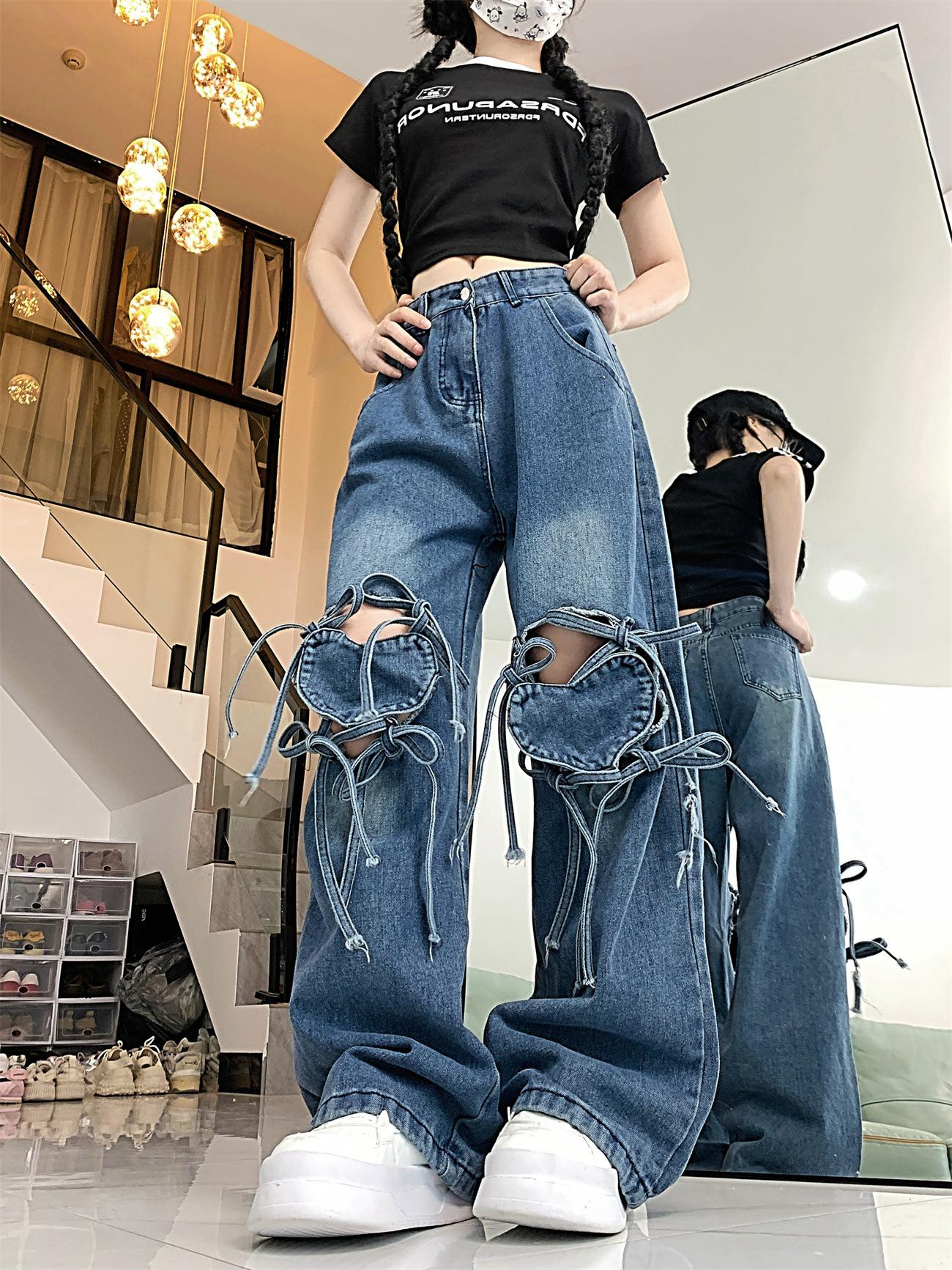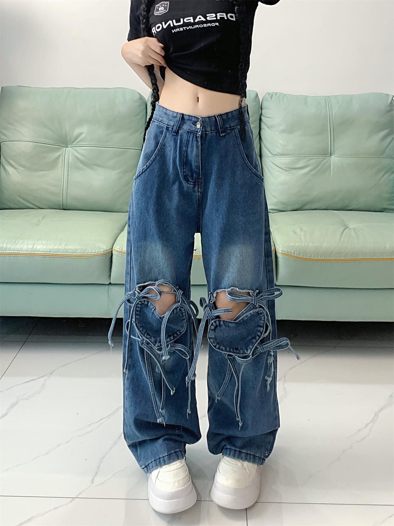 Jeans para Mujer, Ropa Dopamina de Primavera, Diseño Retro de Tirantes Love, Pantalones Rectos de Moda para Mujer