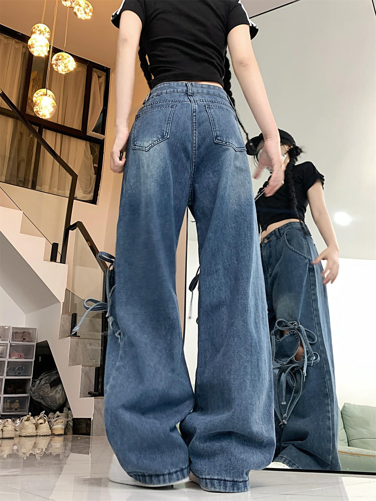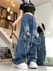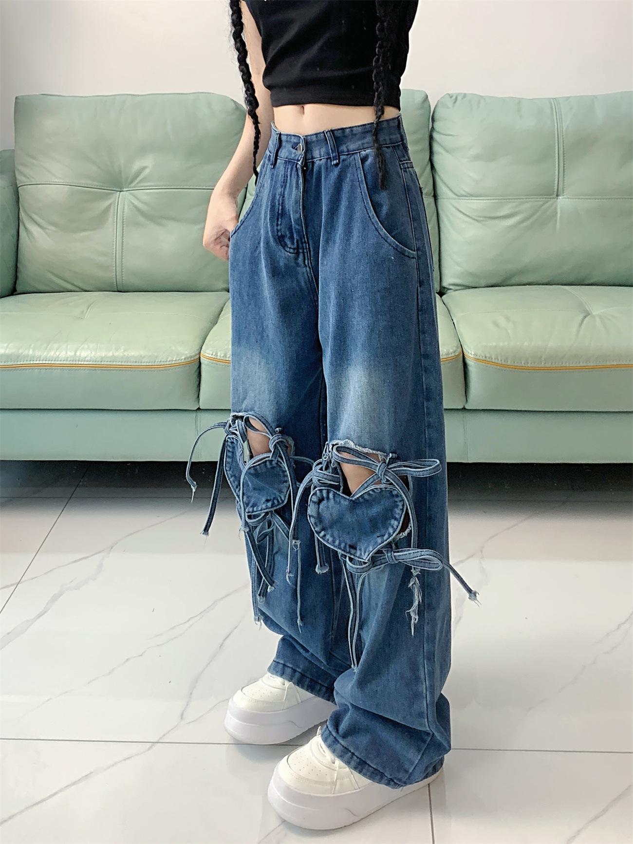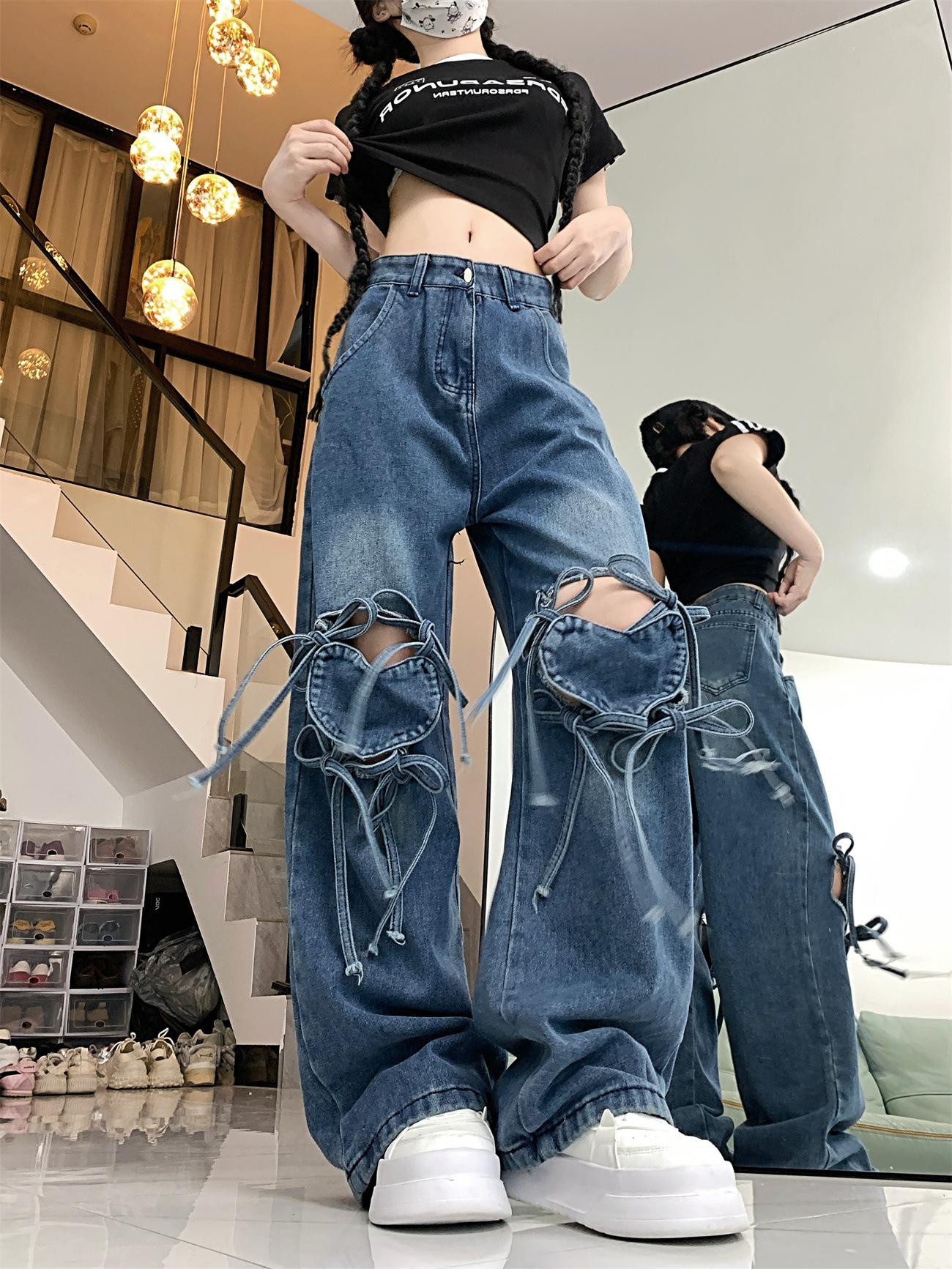 Jeans para Mujer, Ropa Dopamina de Primavera, Diseño Retro de Tirantes Love, Pantalones Rectos de Moda para Mujer