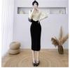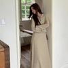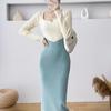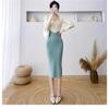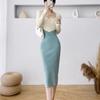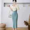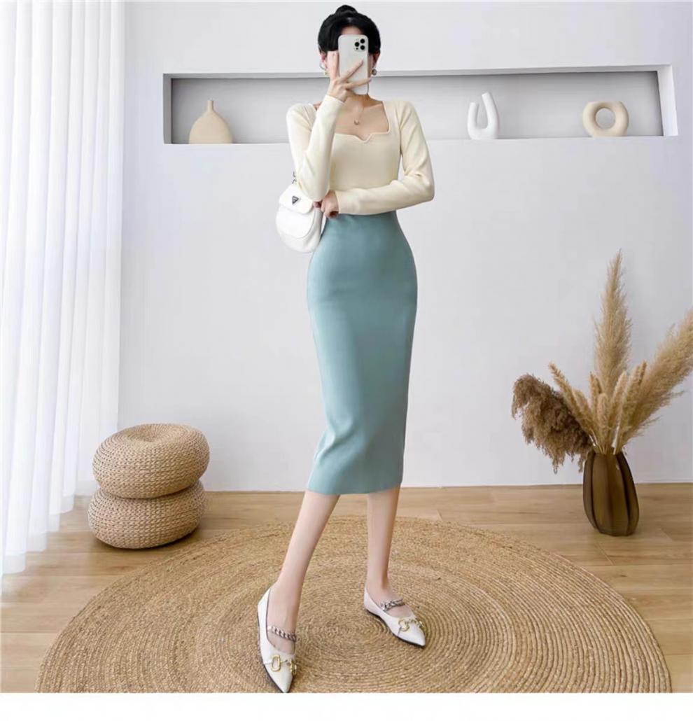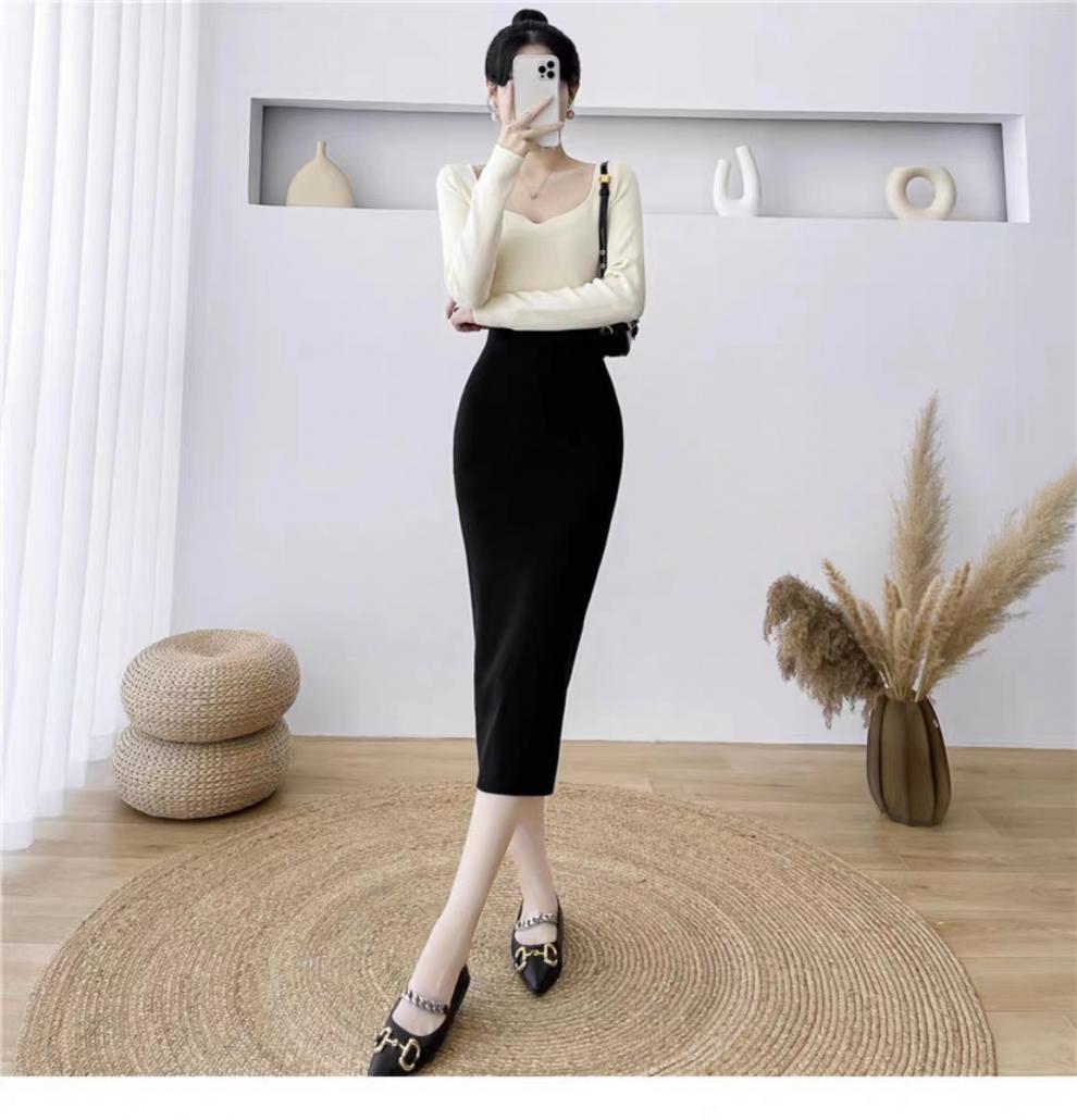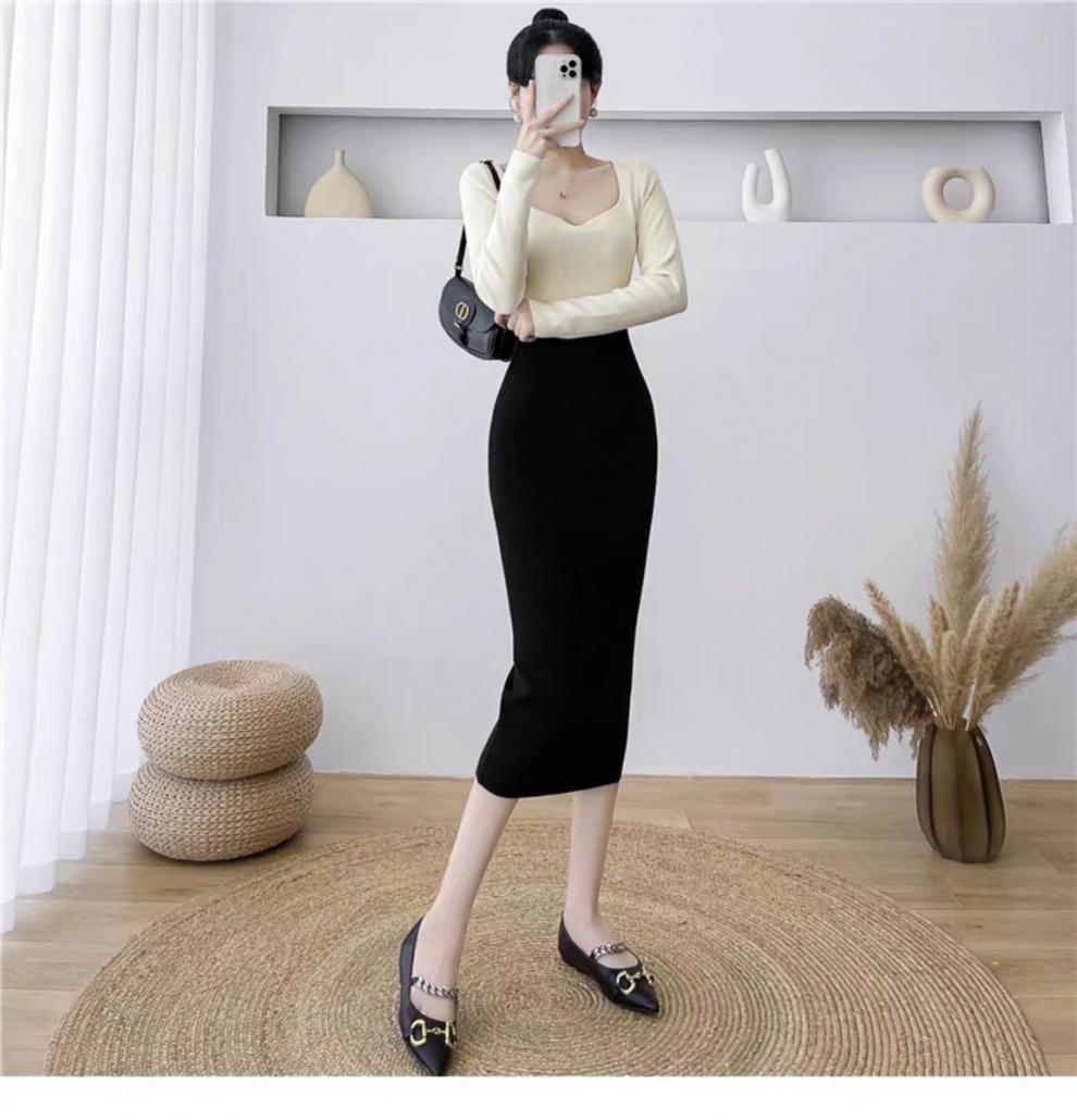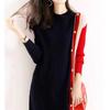 Vestido de punto empalmado de manga larga para mujer, otoño e invierno 2024, nuevo estilo francés, falda de diseño de nicho de alta gama.