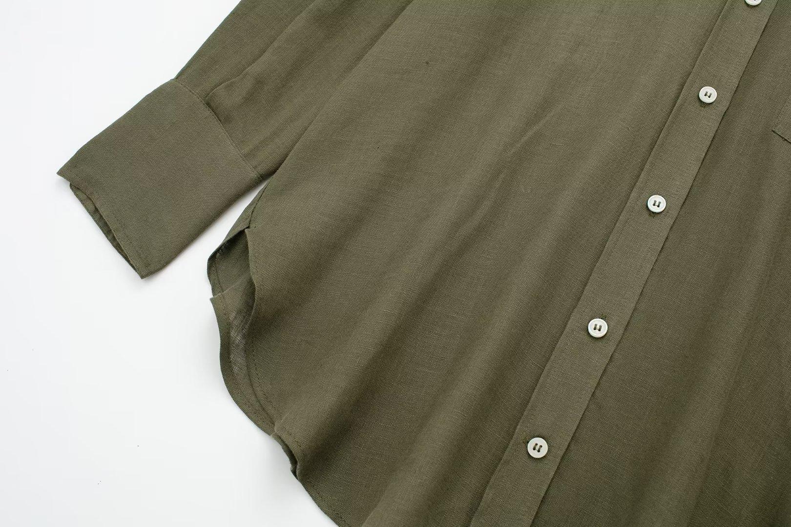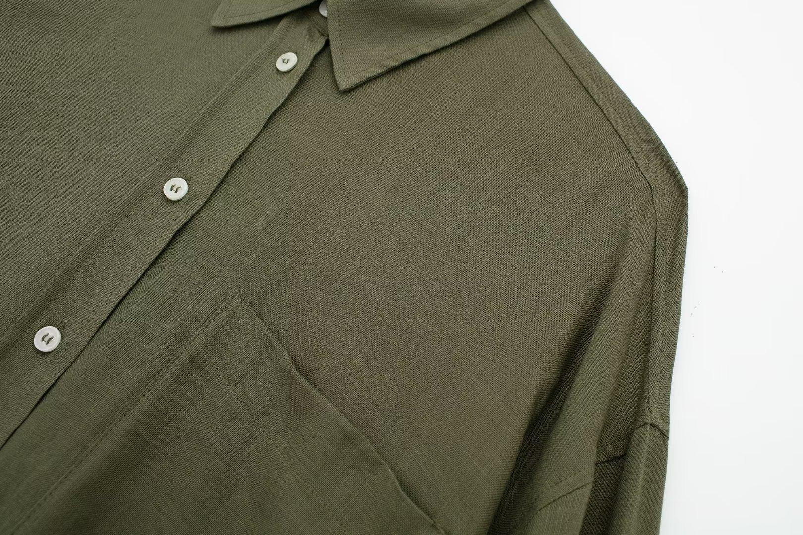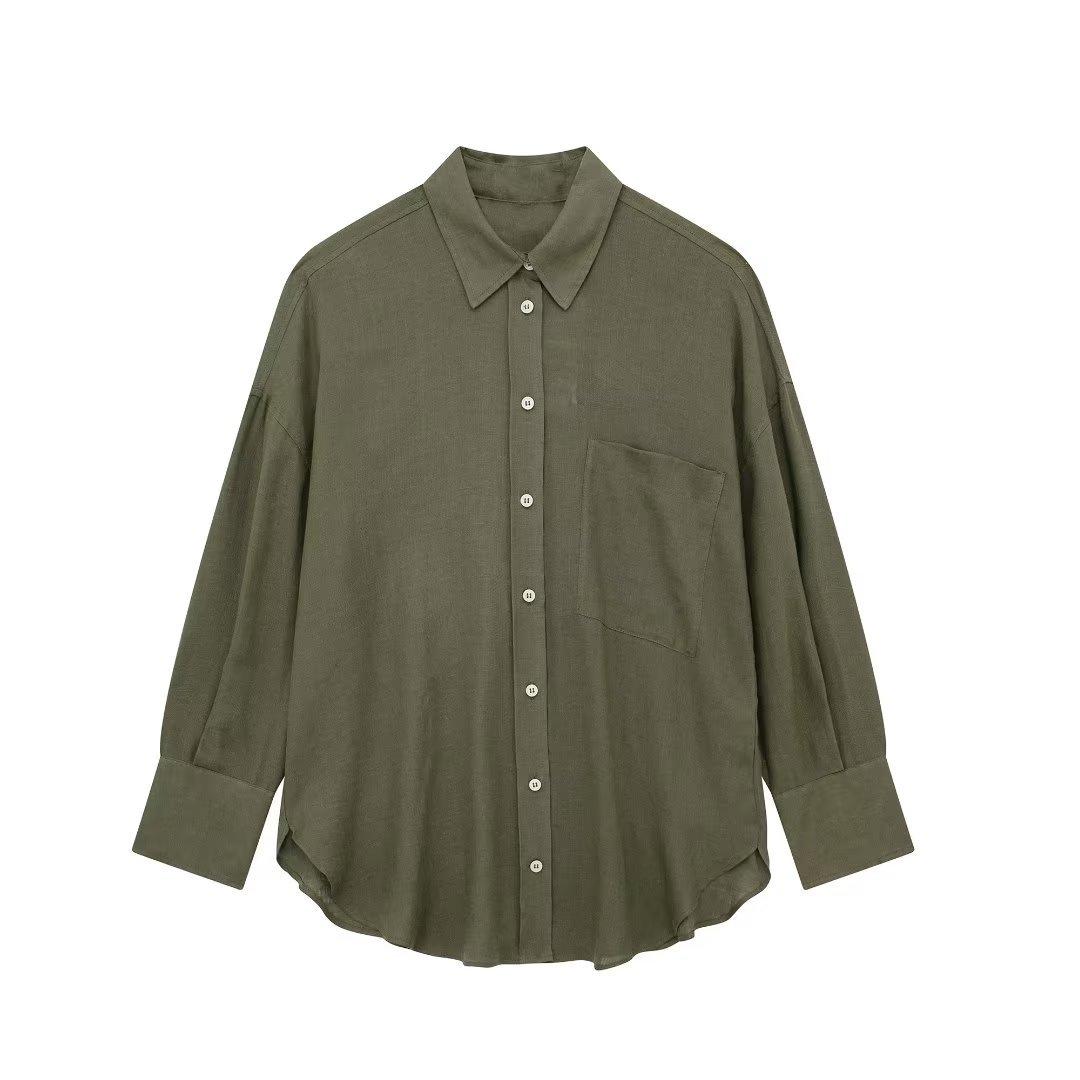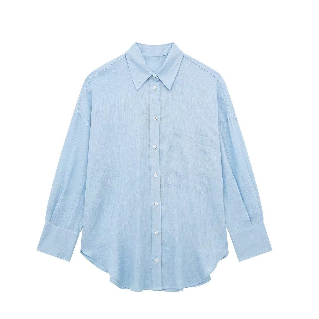 Camisa de lino de manga larga básica con solapa multicolor para mujer 2024, top sencillo de moda urbana transfronteriza europea y americana para mujer