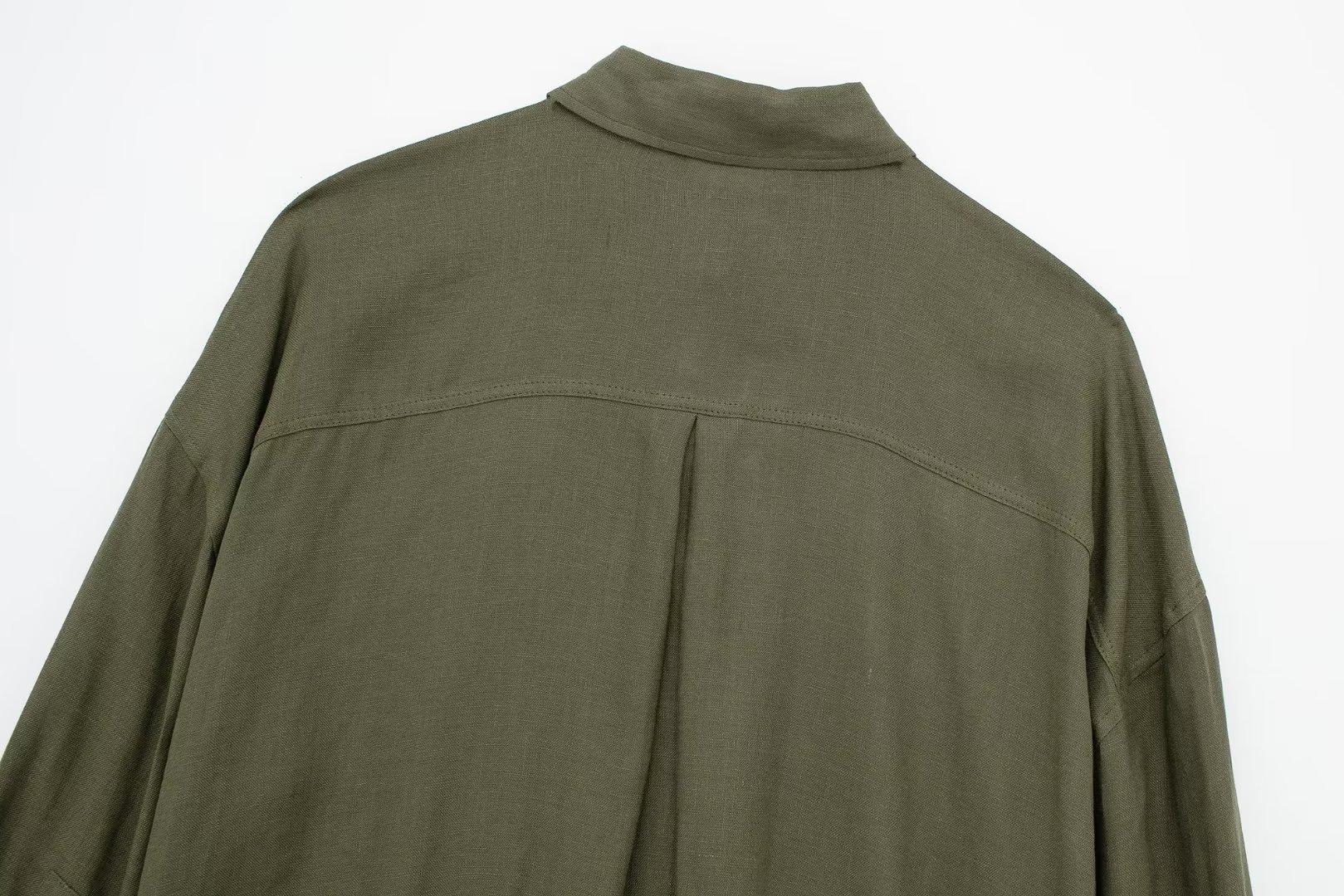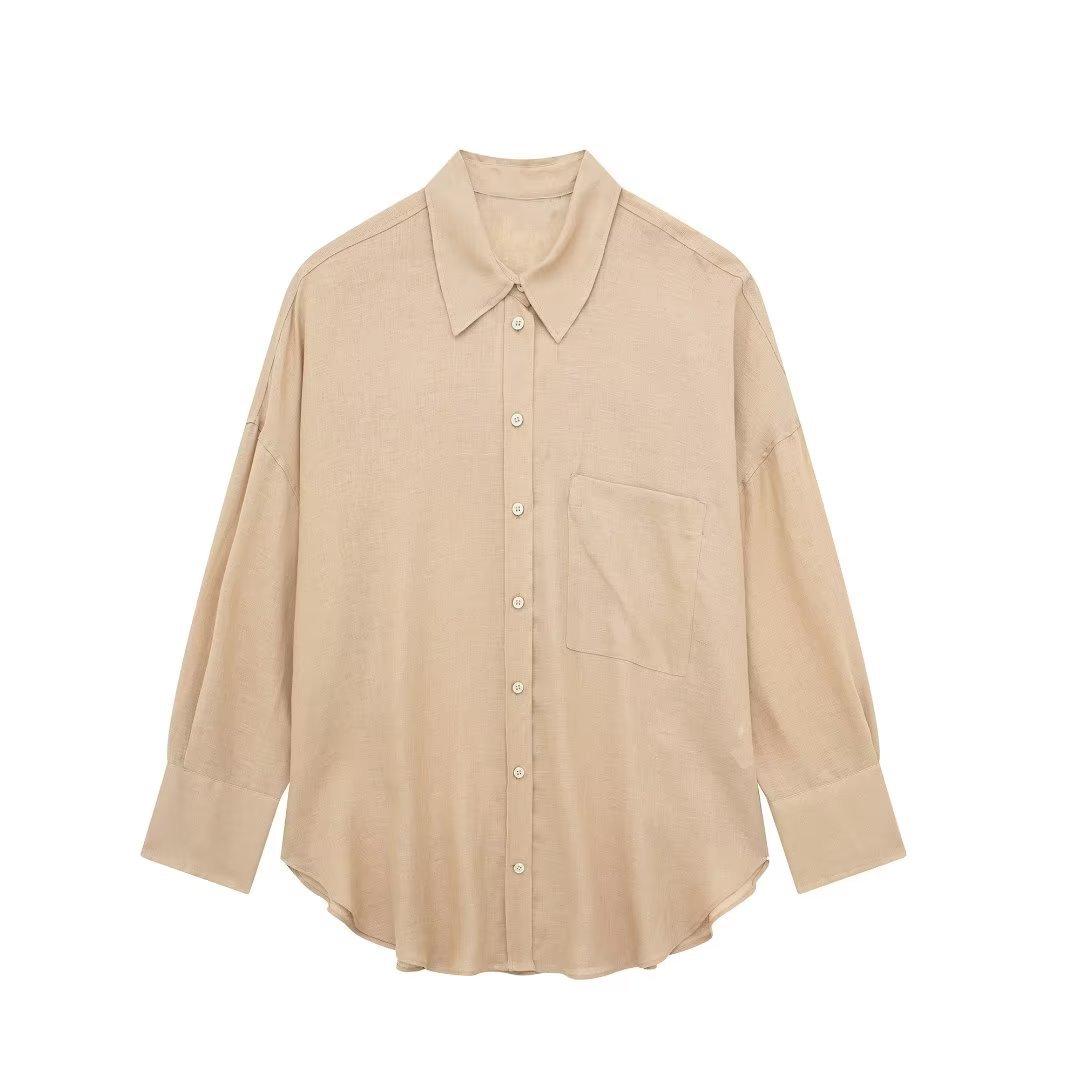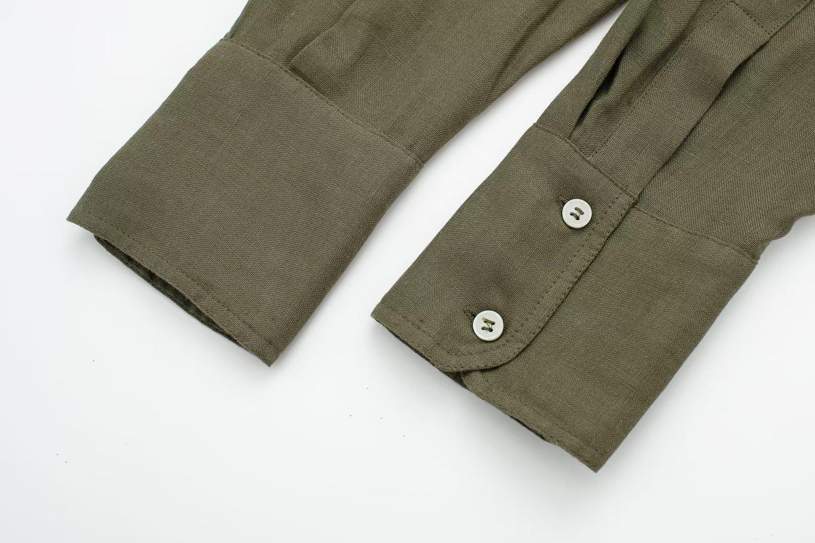 Camisa de lino de manga larga básica con solapa multicolor para mujer 2024, top sencillo de moda urbana transfronteriza europea y americana para mujer