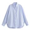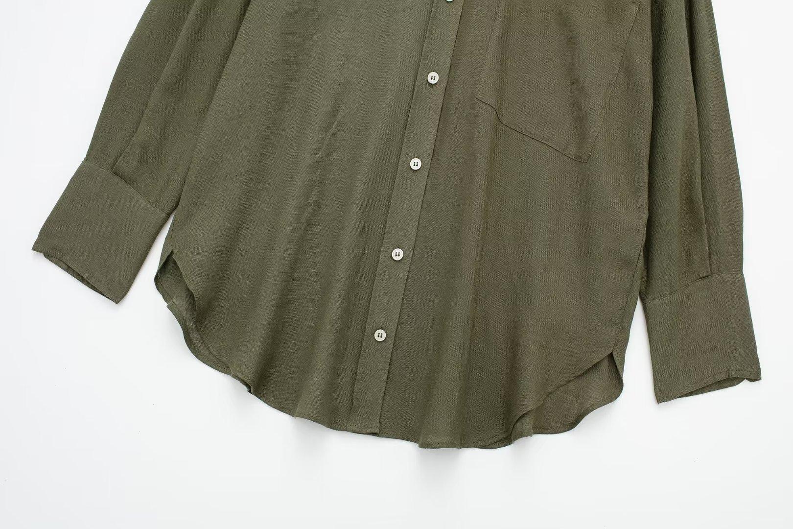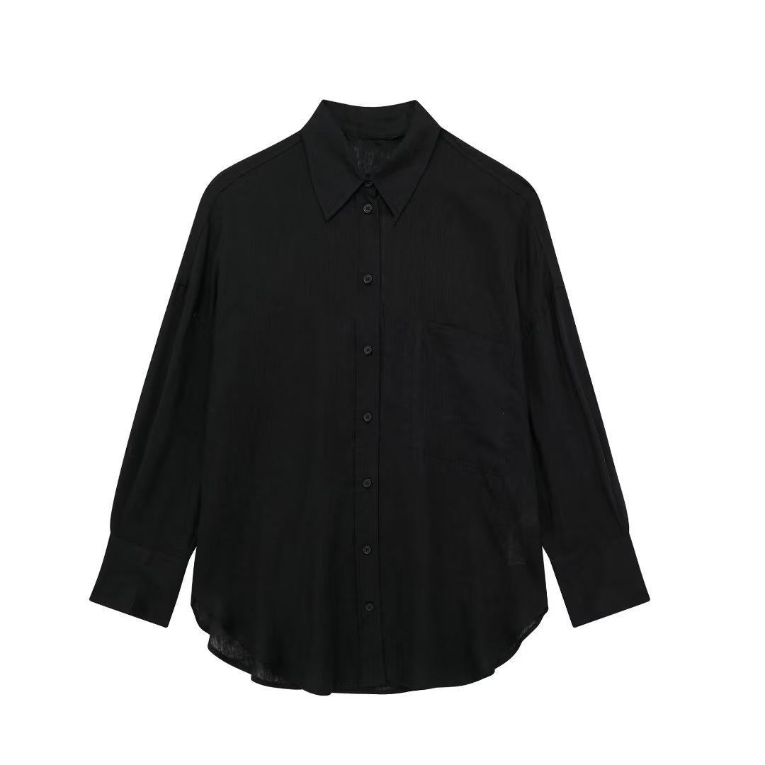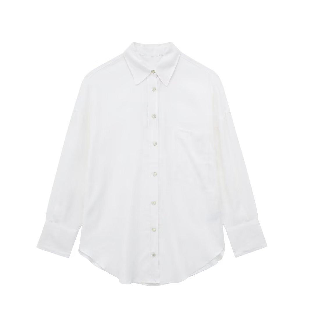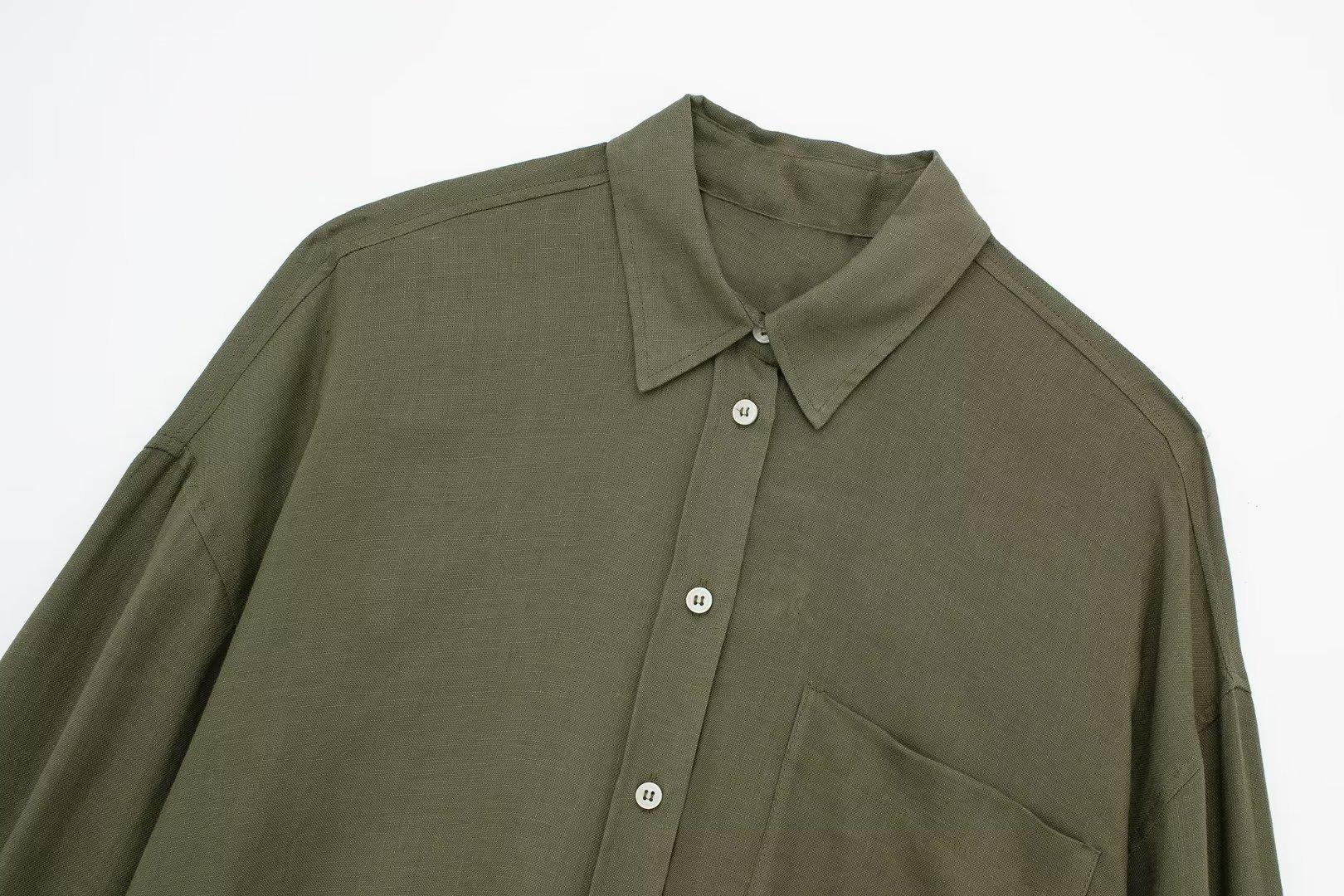 Camisa de lino de manga larga básica con solapa multicolor para mujer 2024, top sencillo de moda urbana transfronteriza europea y americana para mujer