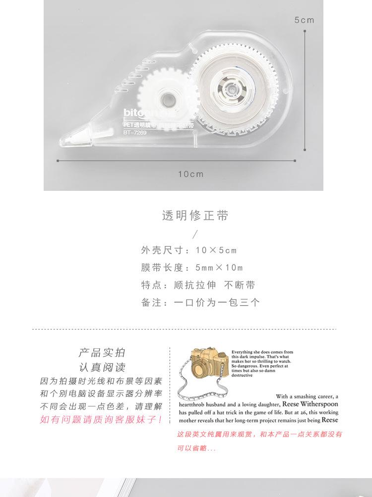 Versión 2 Cinta correctora de viento simple sin imprimir Capacidad Cinta correctora Suministros para estudiantes Juego de 3 unidades Cinturón continuo