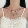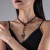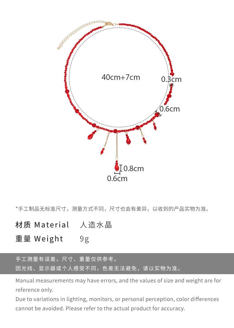 Collar con borlas y cuentas de vidrio de color rojo sangre retro de viento frío de joyería transfronteriza, cadena de clavícula de moda de nicho, cadena para el cuello