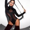 Ebay Europeo y Americano Transfronterizo Sexy Estilo Lujuria Pura Recorte con Cordones Costuras Inversas Mameluco Ajustado de Manga Larga Ropa de Mujer