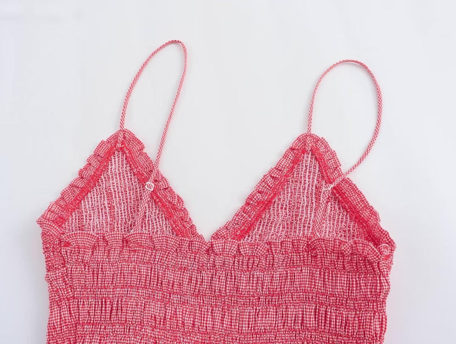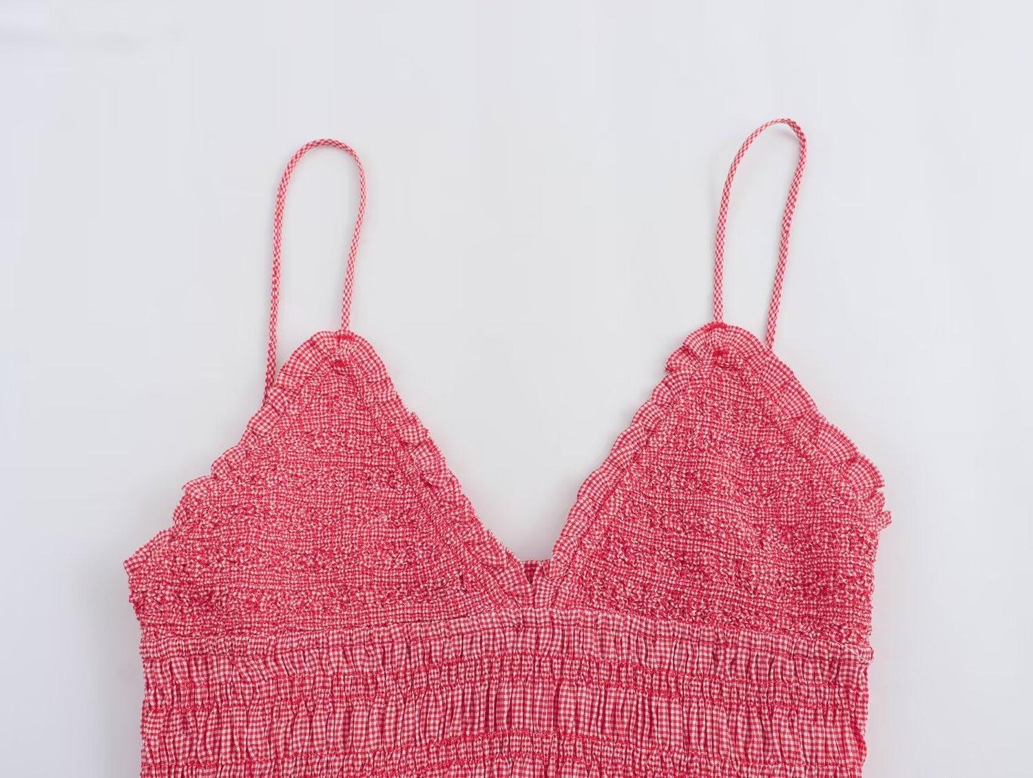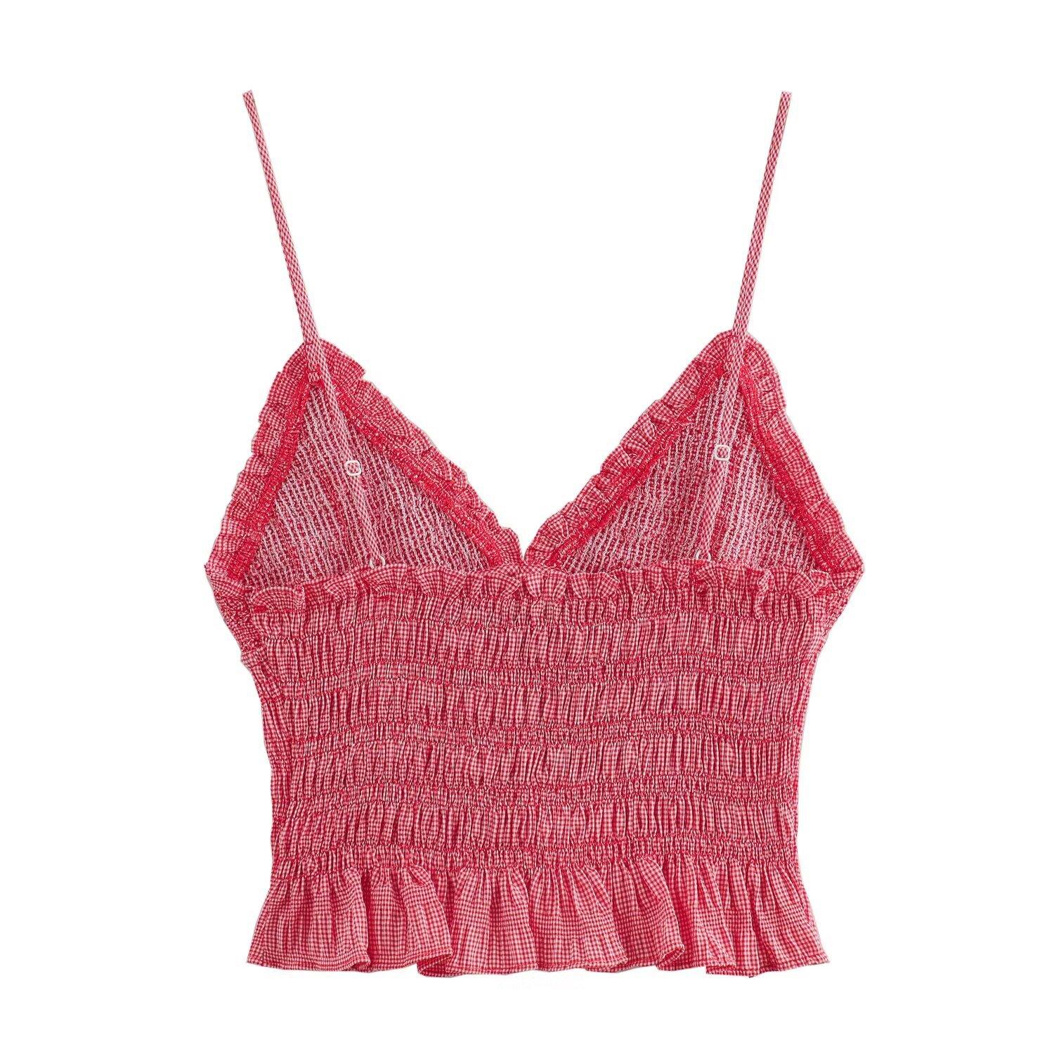 Camisola elástica rosa sin mangas con cuello en V para mujer, estilo europeo y americano, novedad de verano de 2024