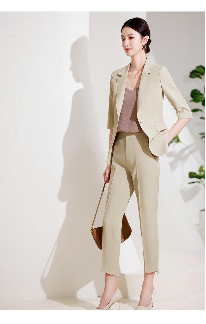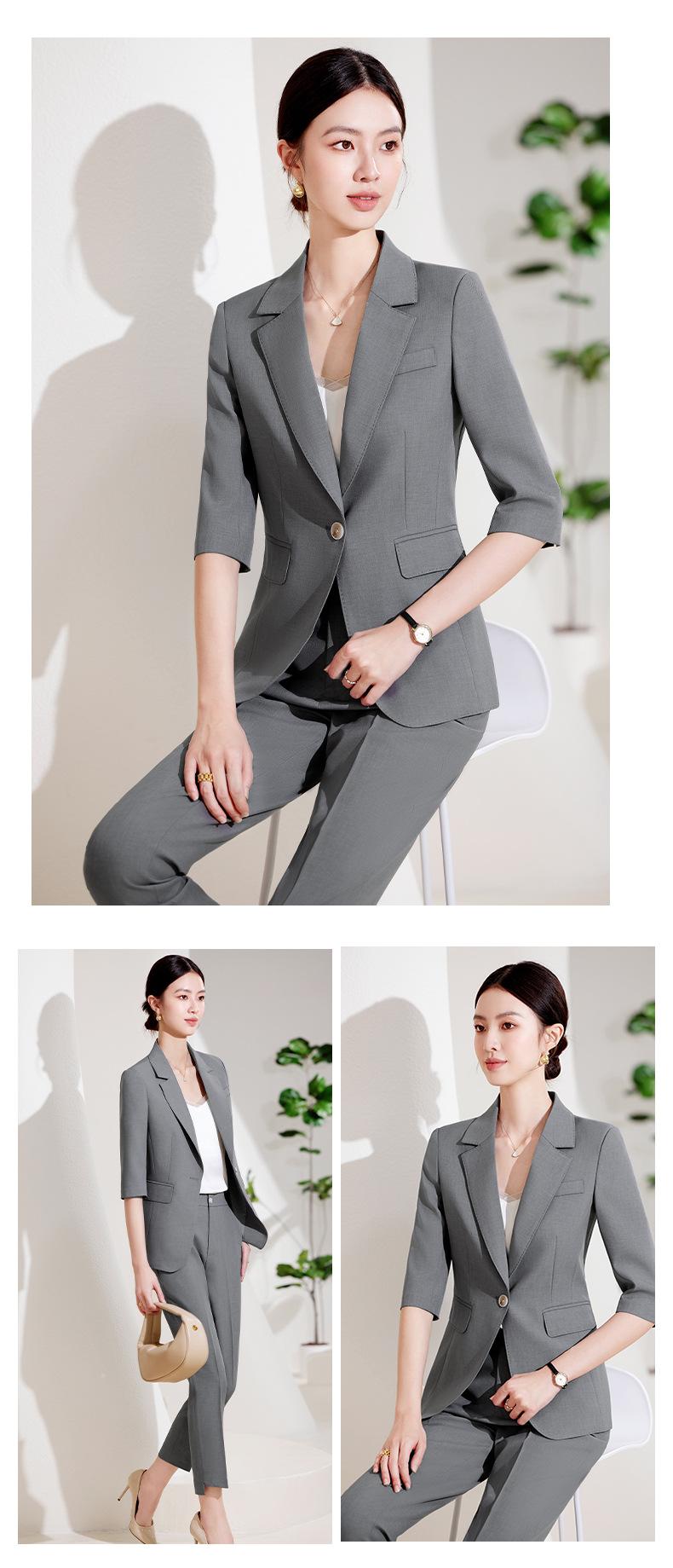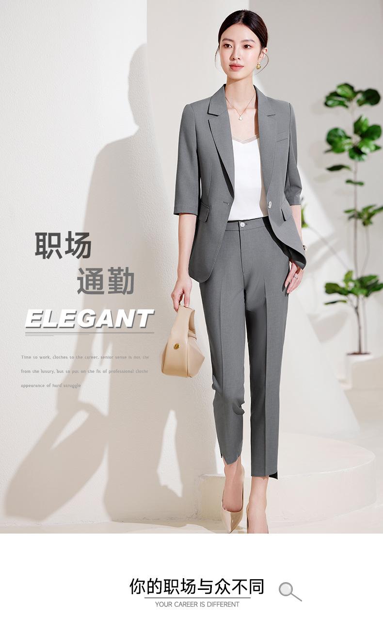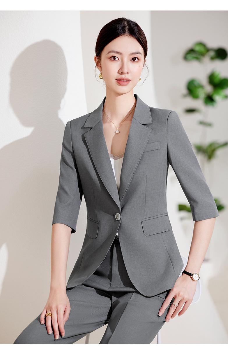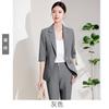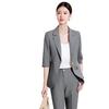 24 primavera, verano y otoño nuevo gris 3/4 manga profesional simple pequeño traje cuello chaqueta mujer pantalones cortos traje de dos piezas