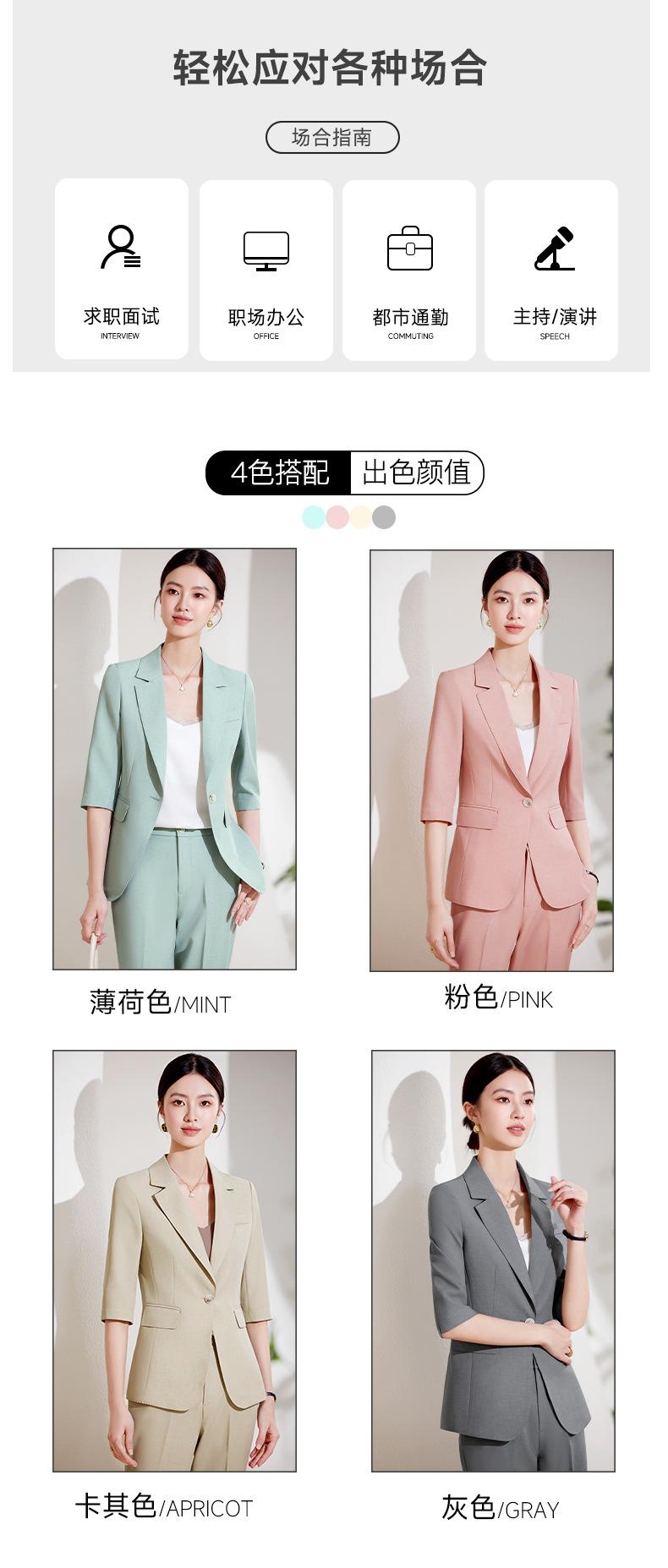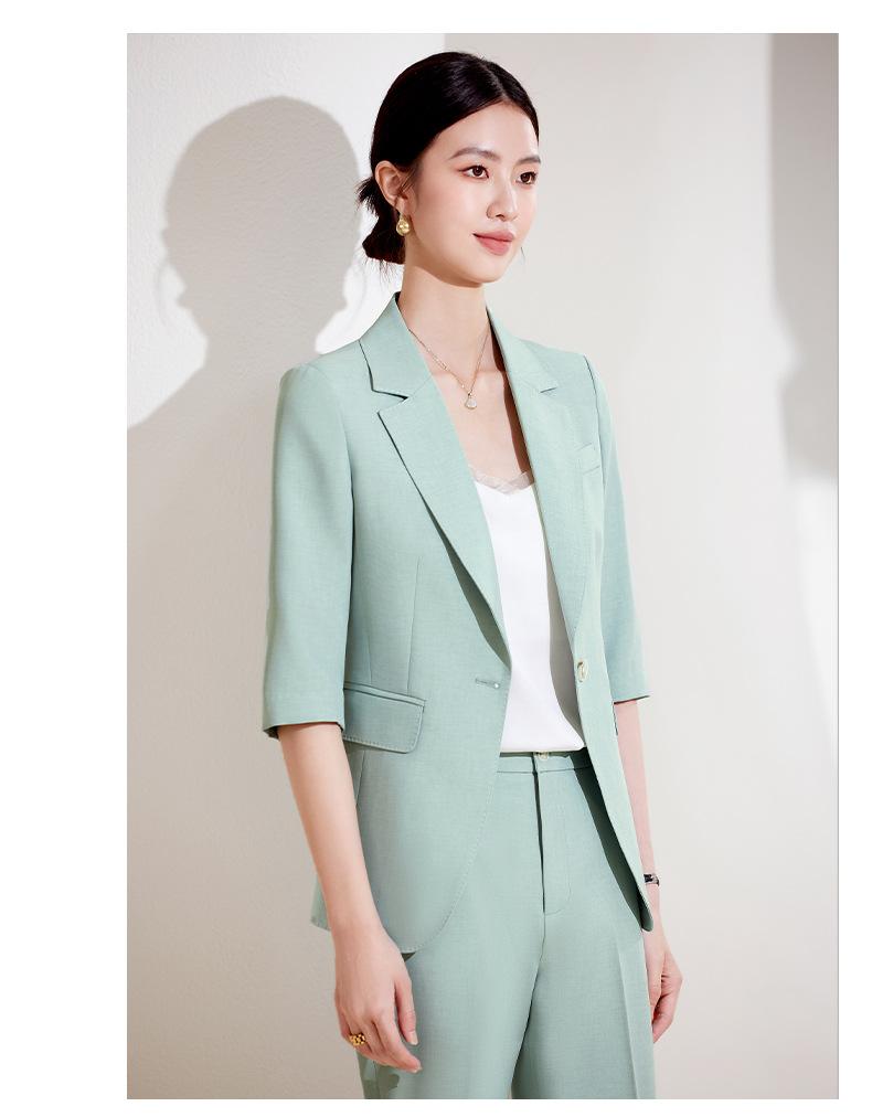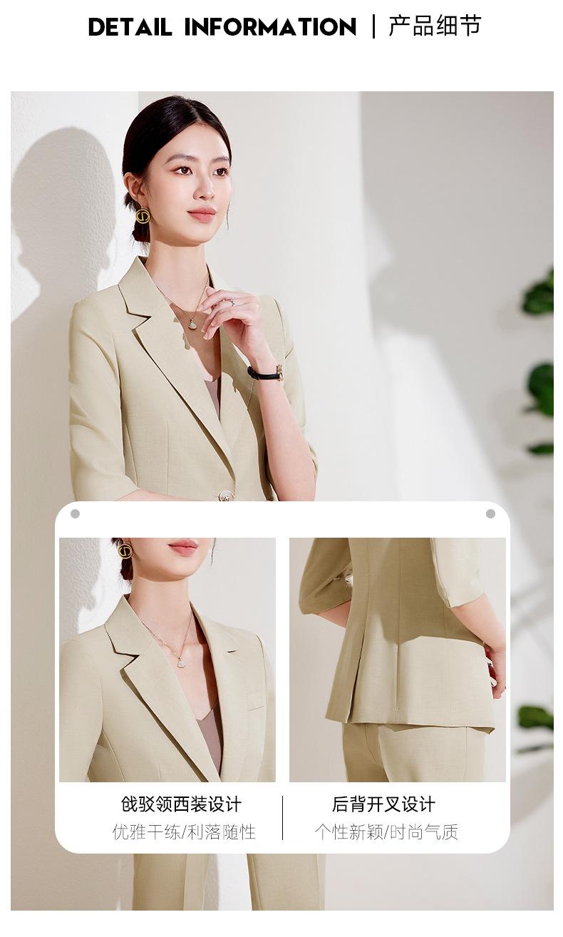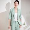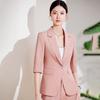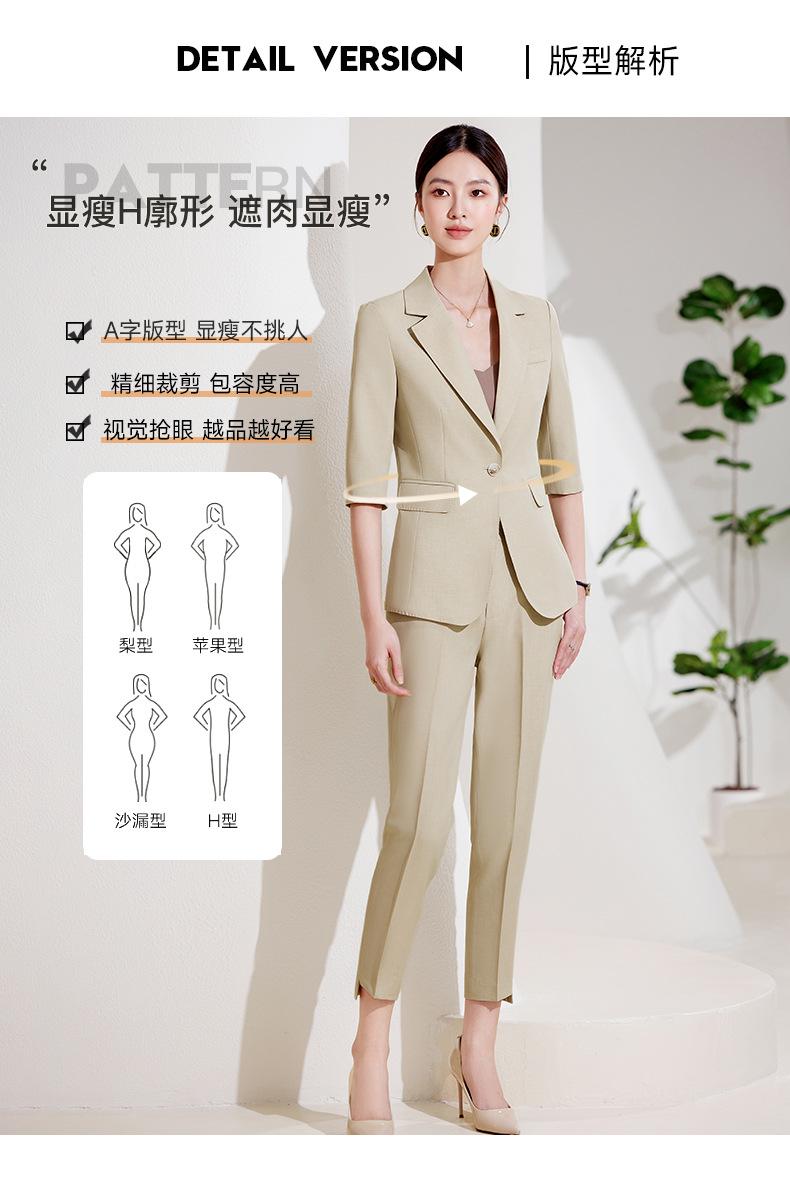24 primavera, verano y otoño nuevo gris 3/4 manga profesional simple pequeño traje cuello chaqueta mujer pantalones cortos traje de dos piezas