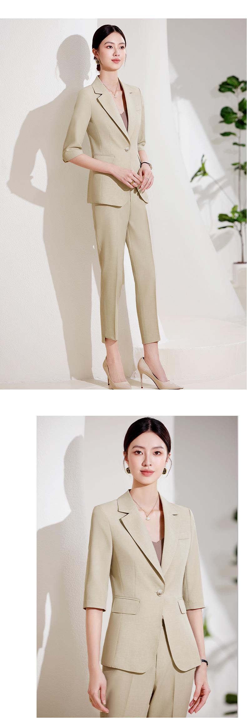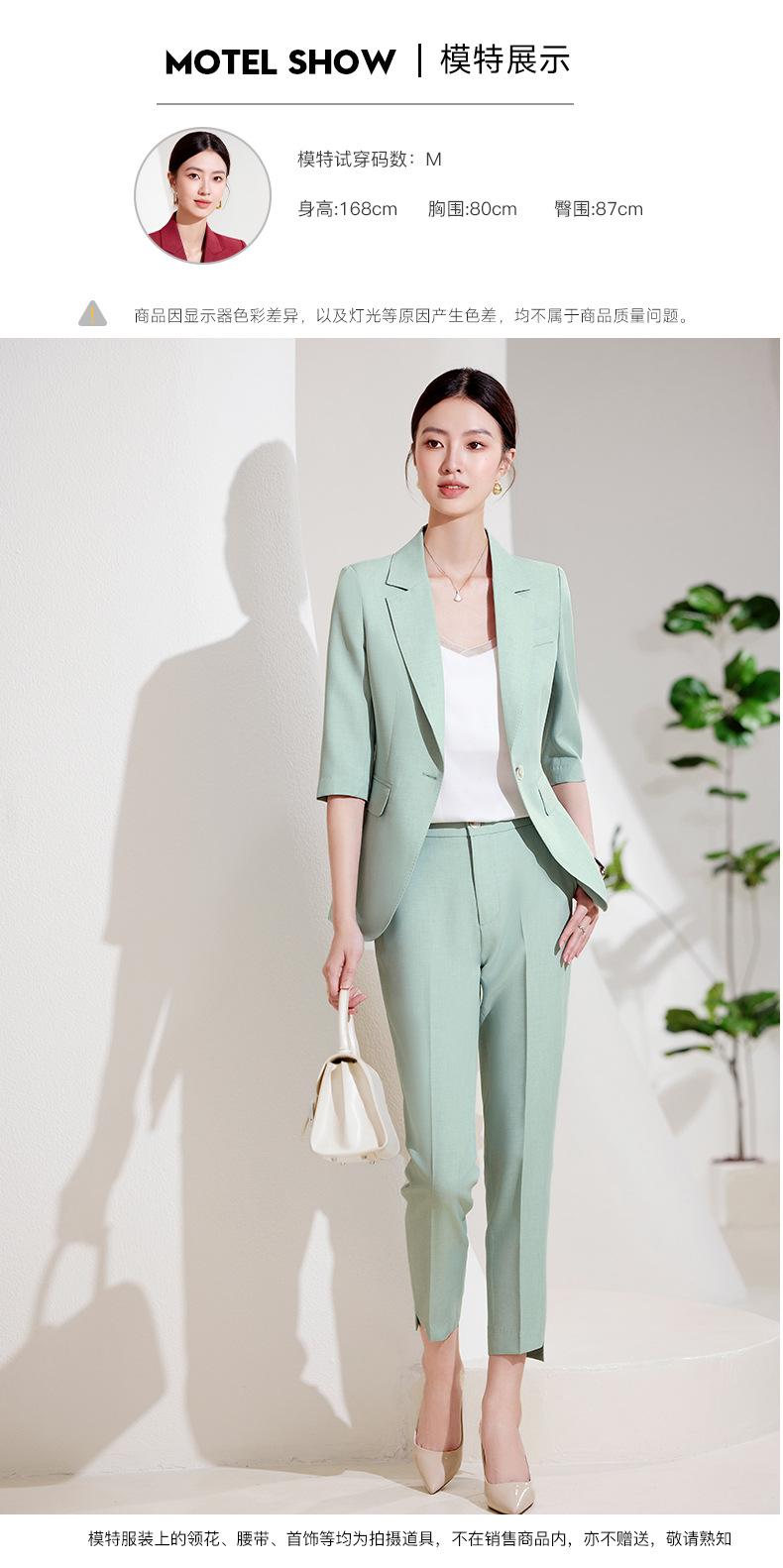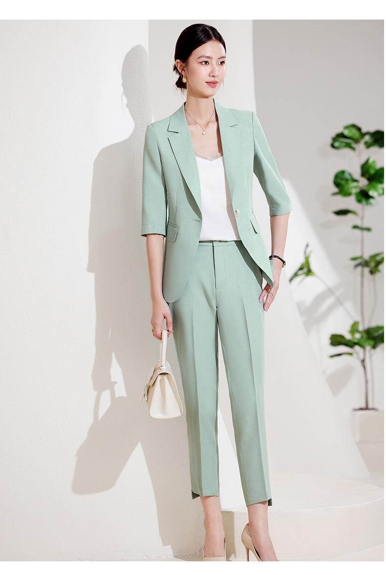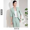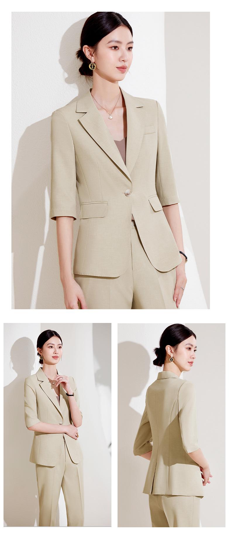 24 primavera, verano y otoño nuevo gris 3/4 manga profesional simple pequeño traje cuello chaqueta mujer pantalones cortos traje de dos piezas