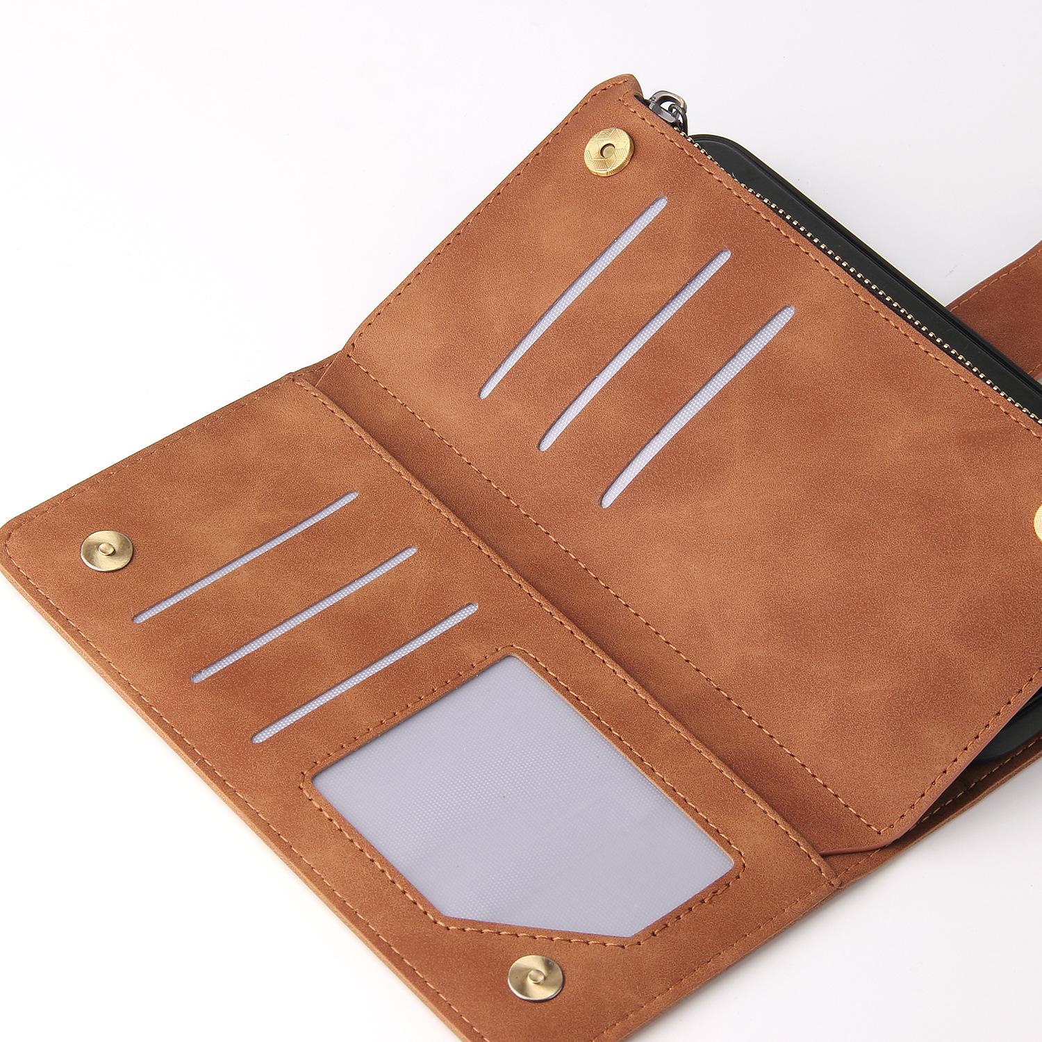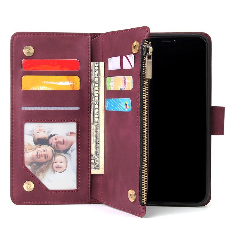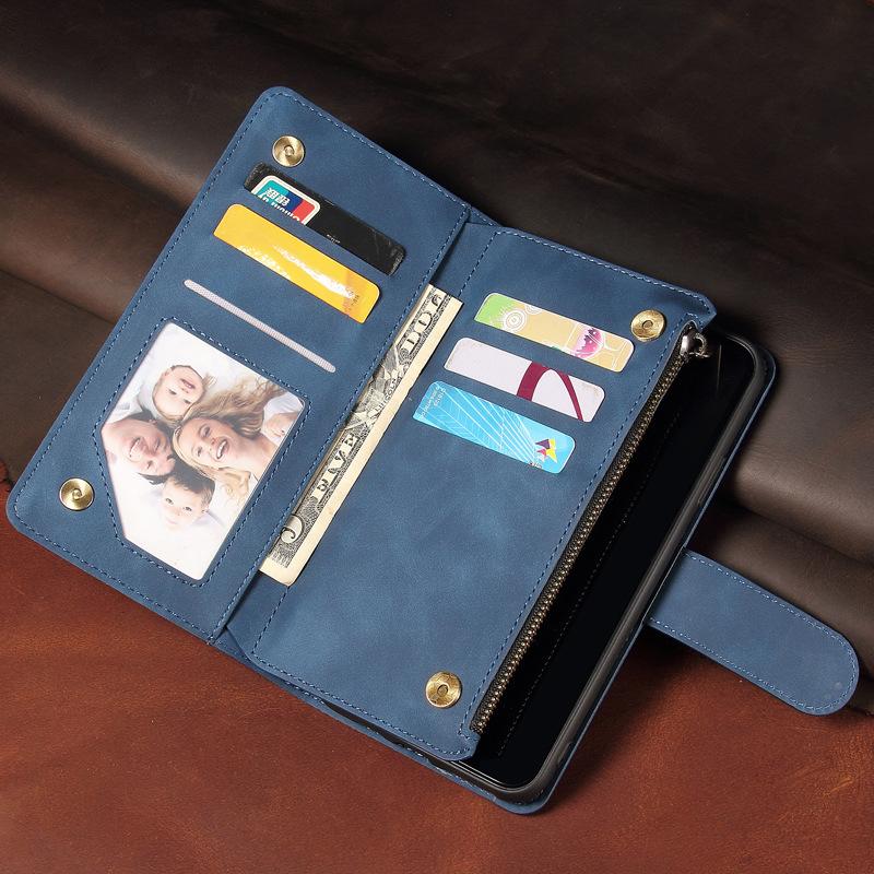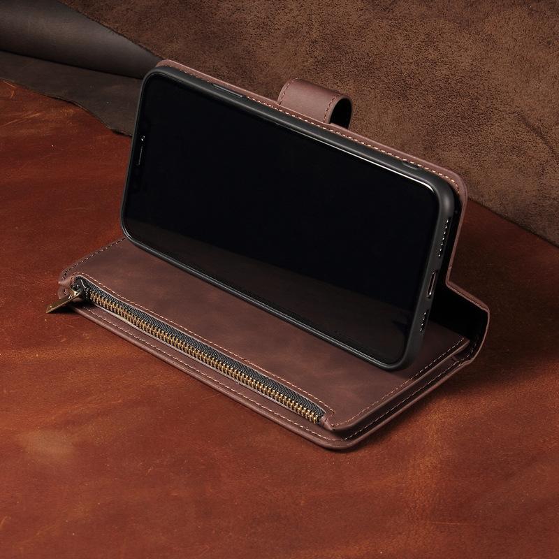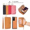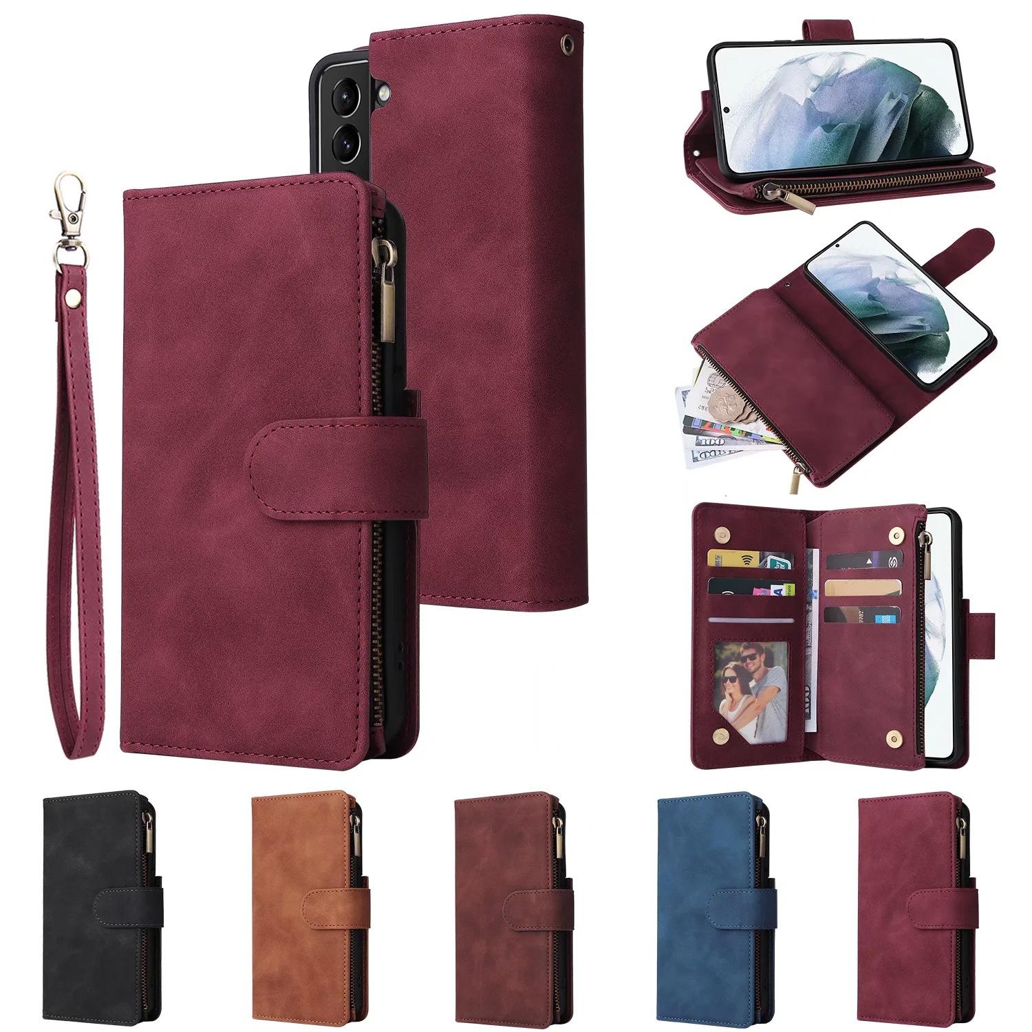 Adecuado para Samsung S23 Bolsa con Cremallera para Múltiples Tarjetas Estuche de Cuero S21/S22 Tarjeta Monedero Multifuncional Estuche para Teléfono Móvil Tapa Abatible