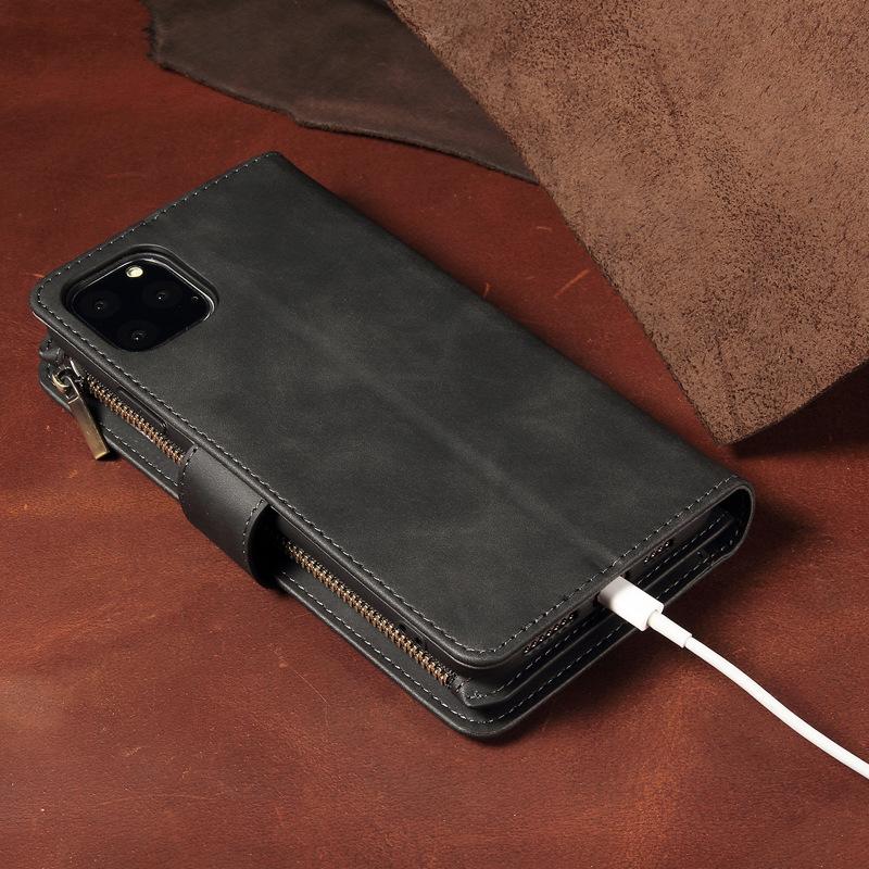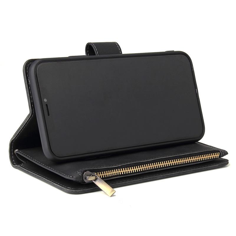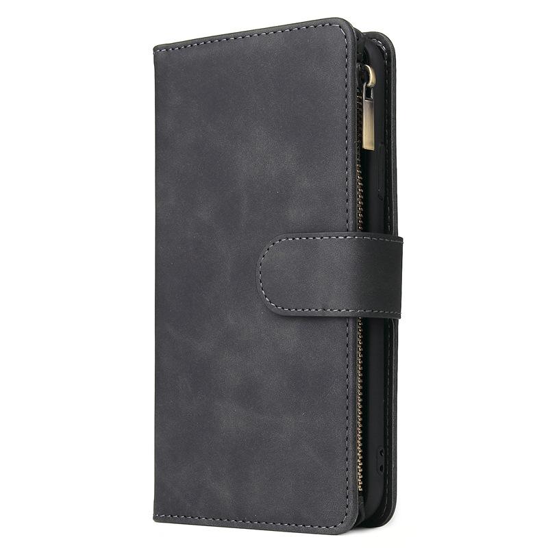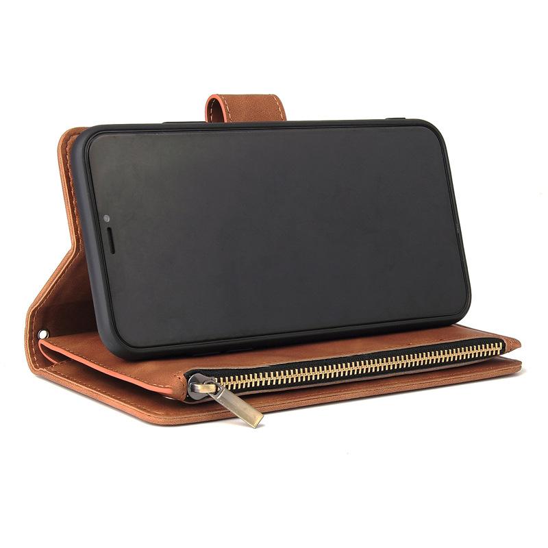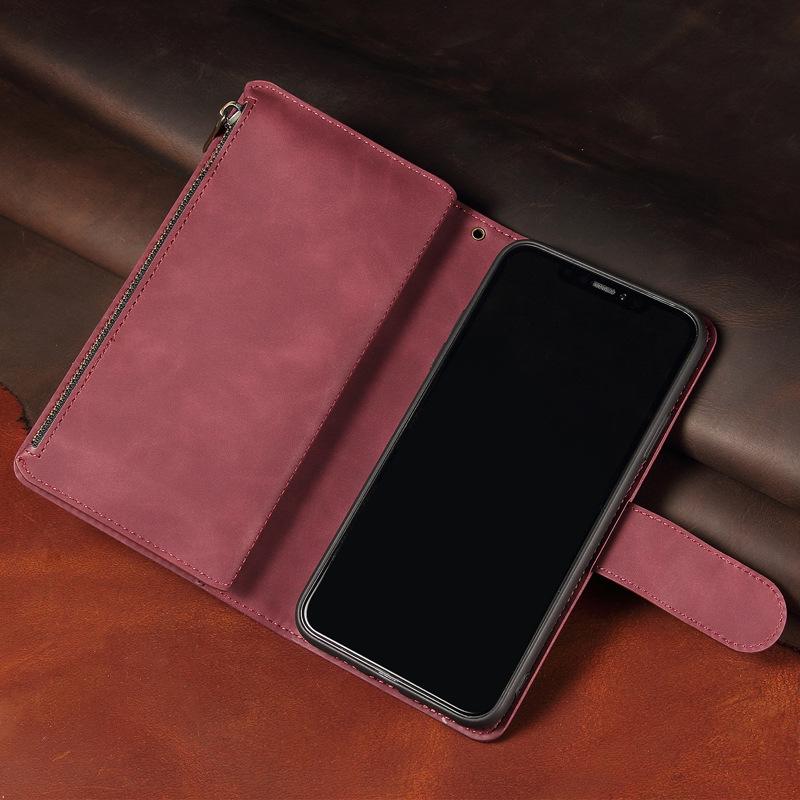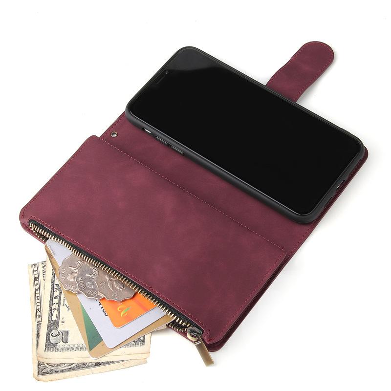 Adecuado para Samsung S23 Bolsa con Cremallera para Múltiples Tarjetas Estuche de Cuero S21/S22 Tarjeta Monedero Multifuncional Estuche para Teléfono Móvil Tapa Abatible