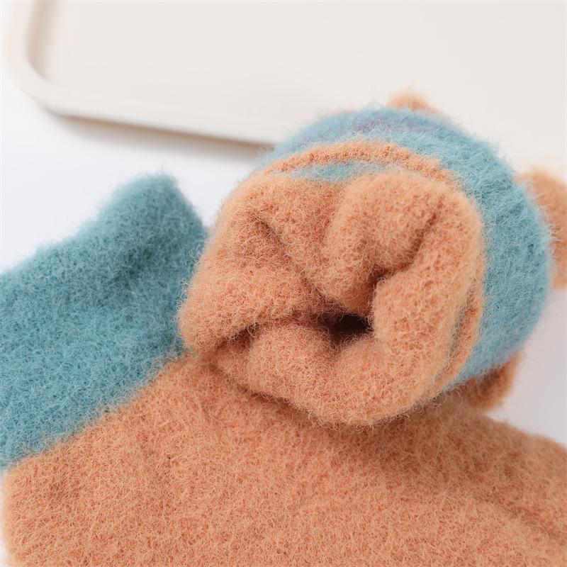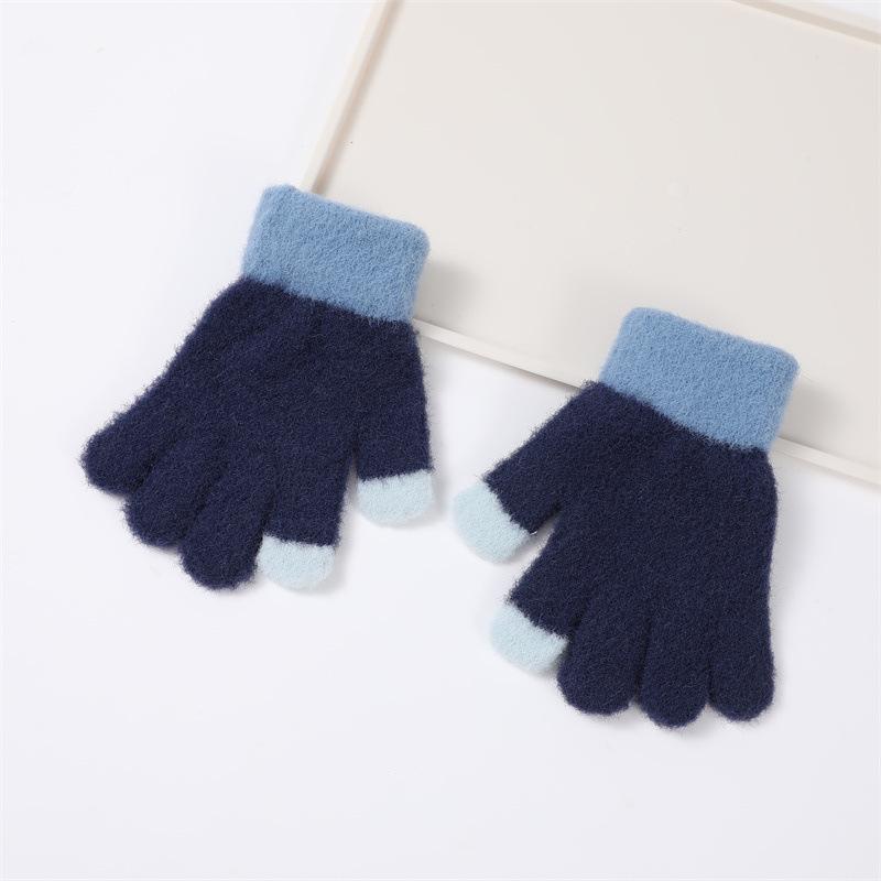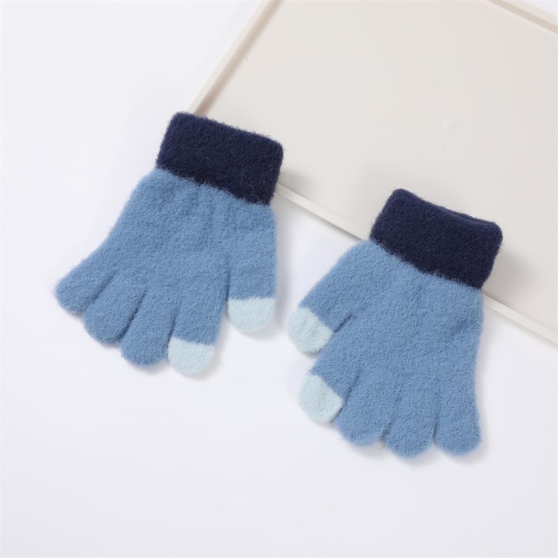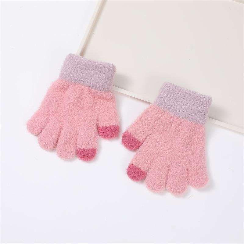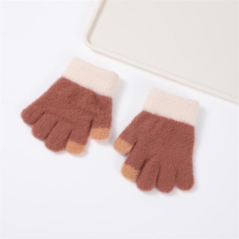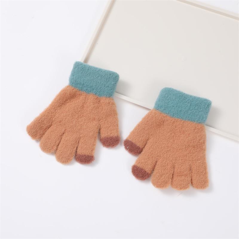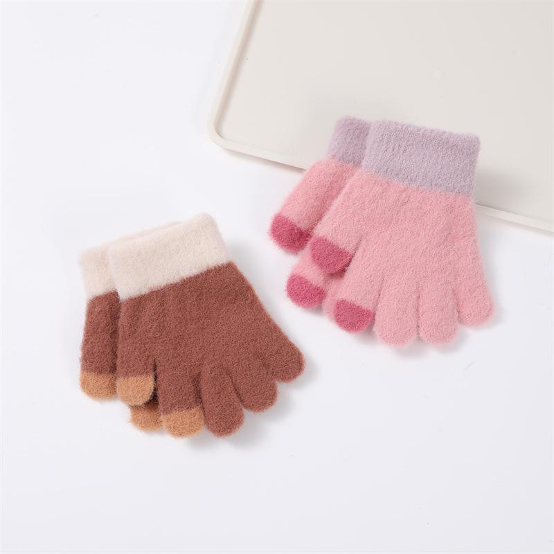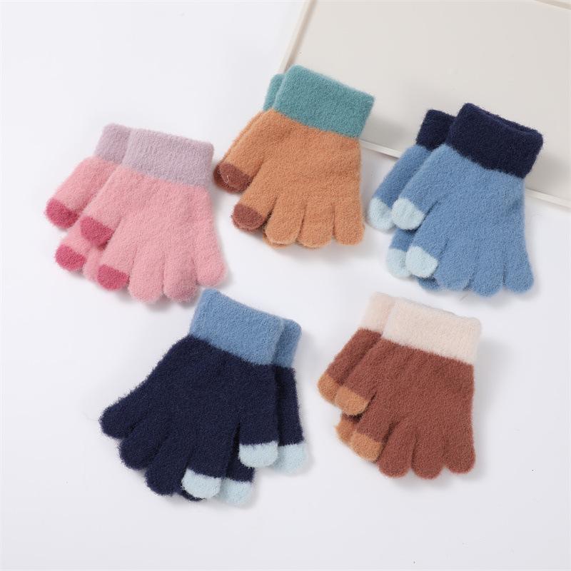 Guantes para niños con forro polar para niñas, invierno, combinación de colores, versátiles, estudiante, cinco dedos, lana tejida, medianos, para niños, cálidos, venta al por mayor