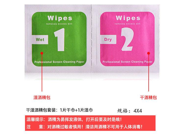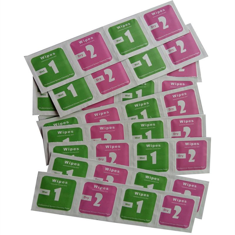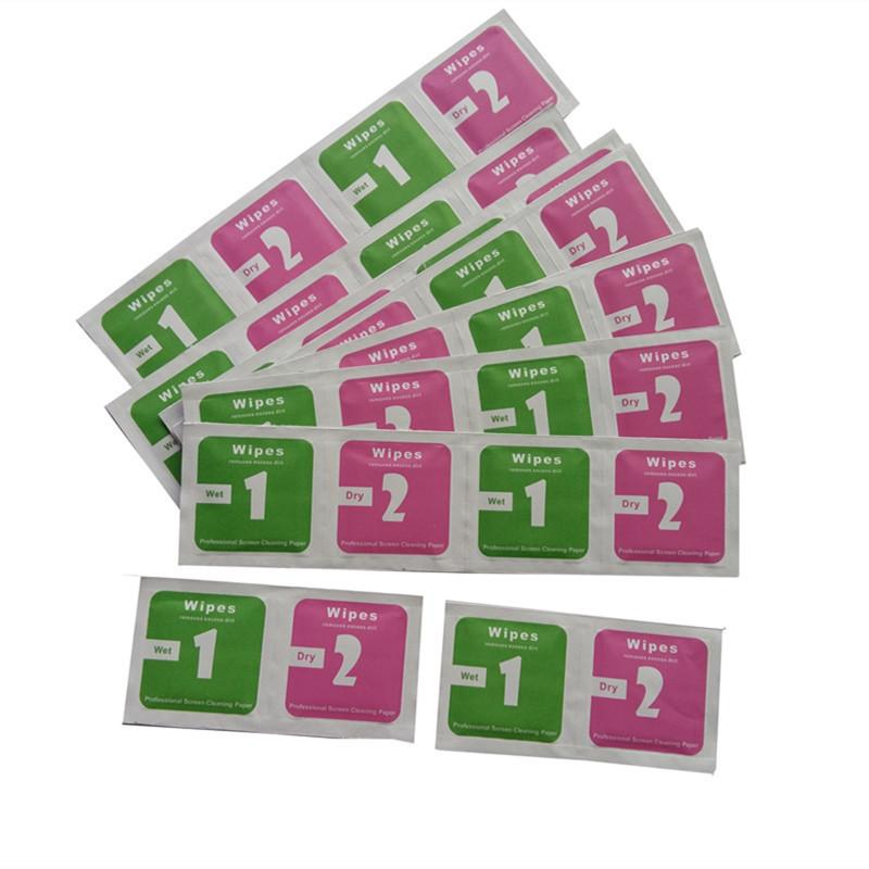 Pastilla de alcohol, bolsa húmeda y seca, papel para limpiar pantallas, película templada para teléfono móvil, herramienta de limpieza, papel de seda húmedo, venta al por mayor