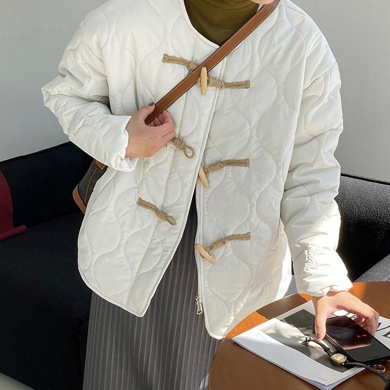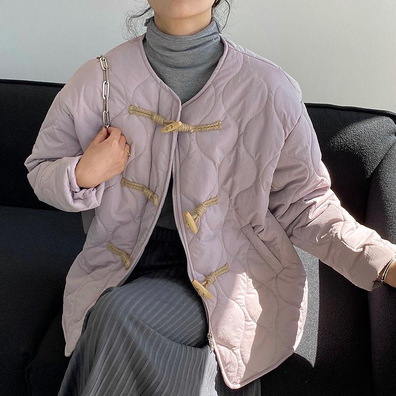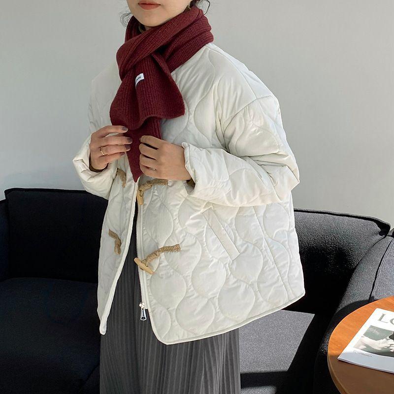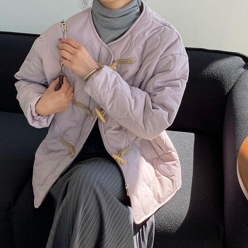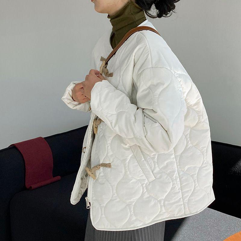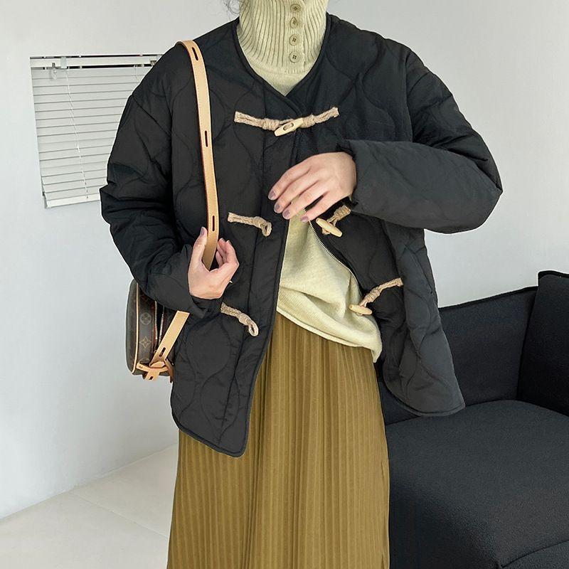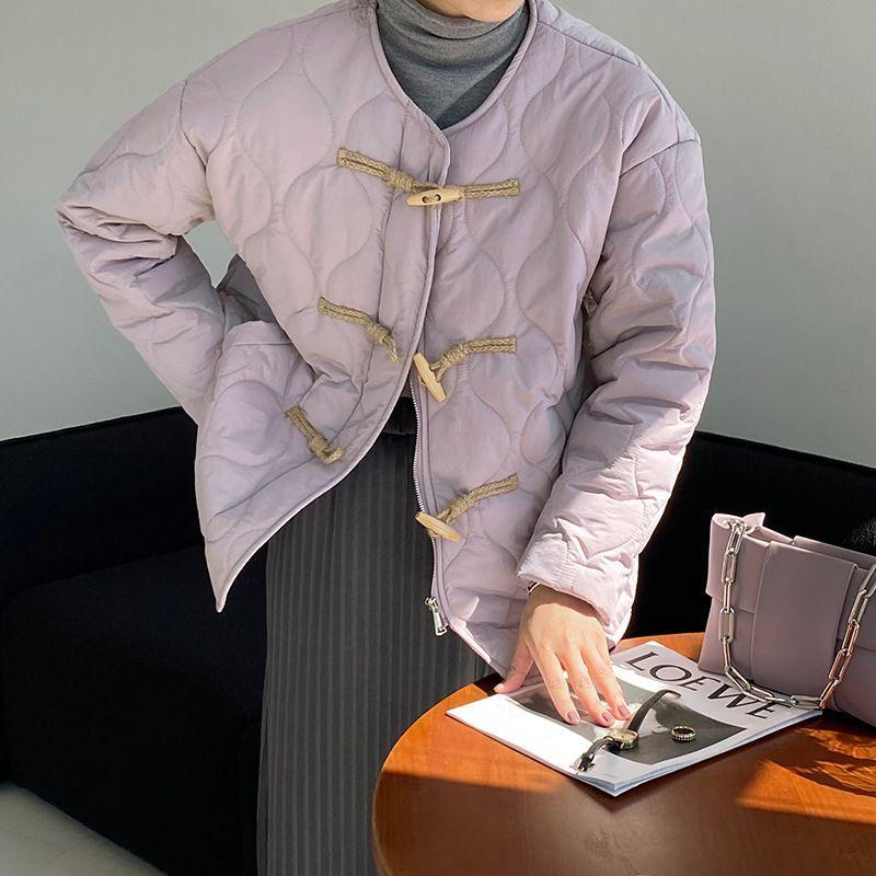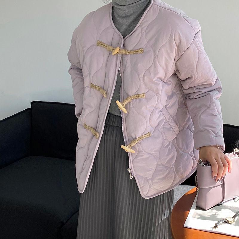 Chaqueta corta acolchada de algodón con hebilla de cuerno para mujer, chaqueta holgada acolchada de algodón estilo coreano, nueva chaqueta de invierno 2020