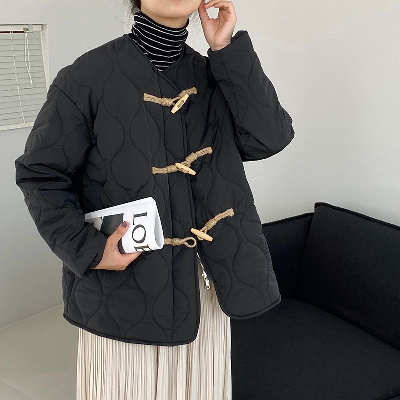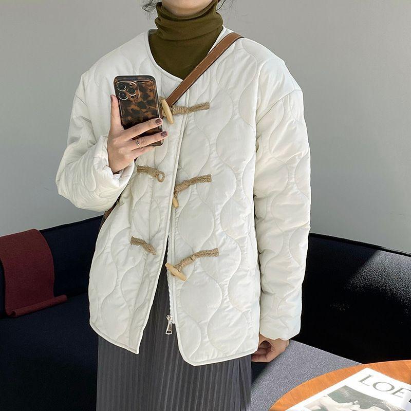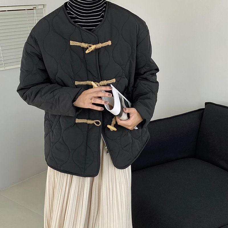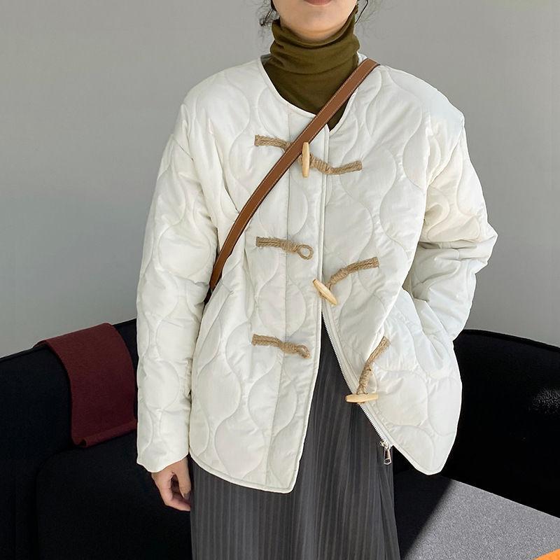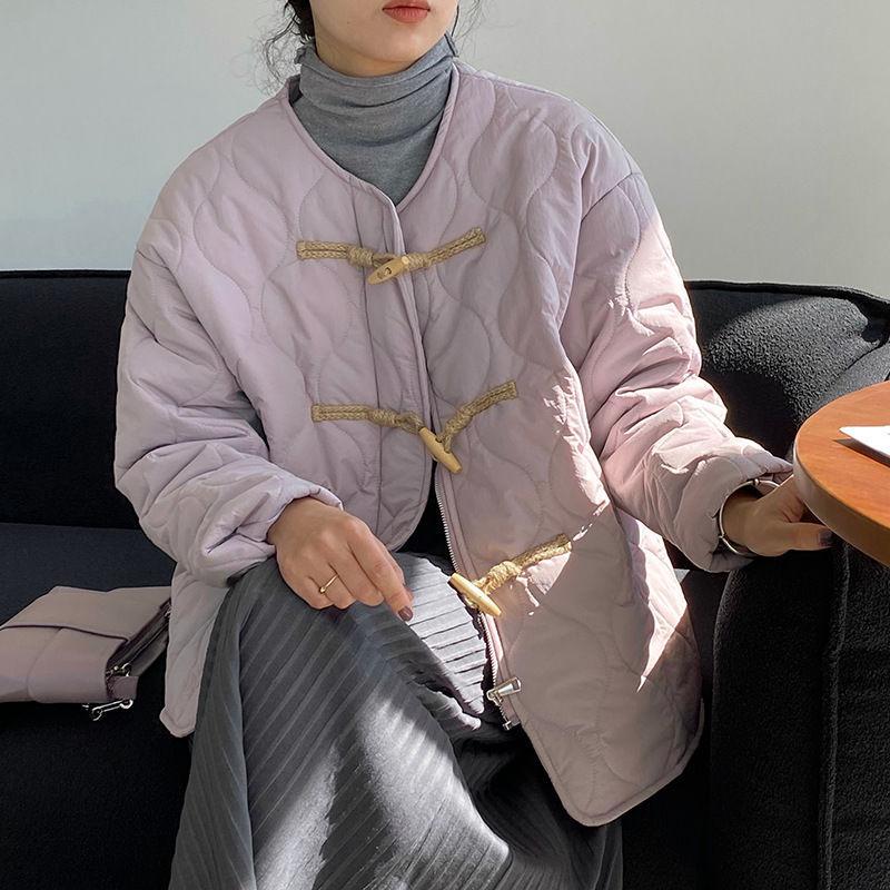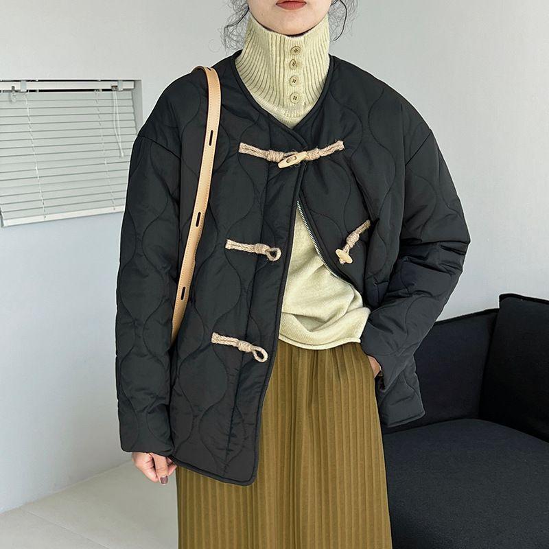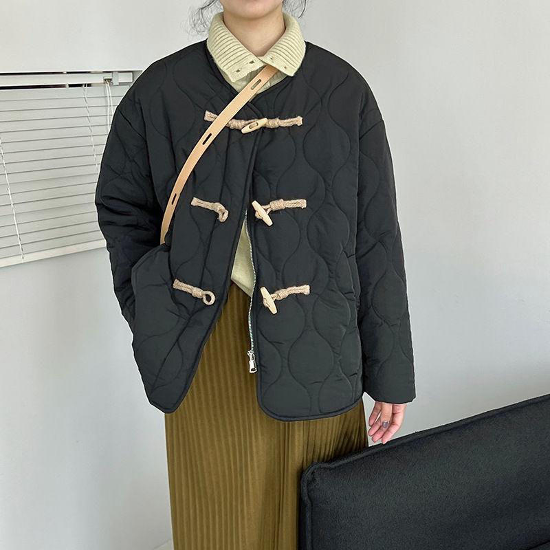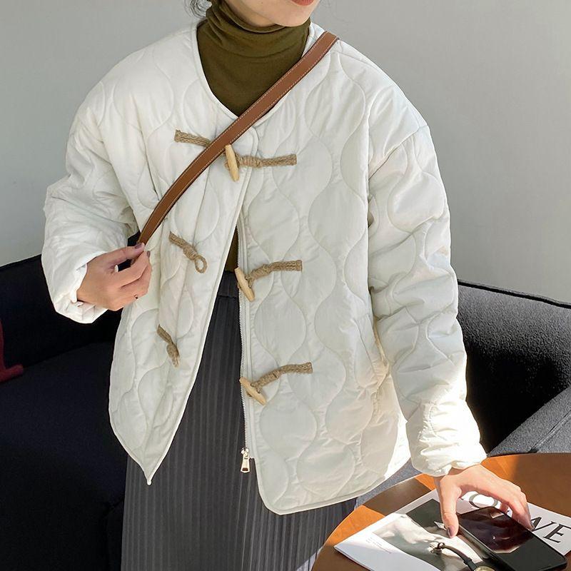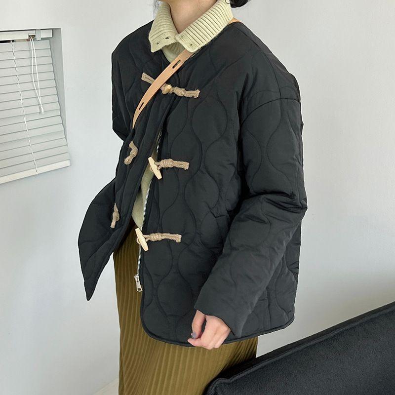 Chaqueta corta acolchada de algodón con hebilla de cuerno para mujer, chaqueta holgada acolchada de algodón estilo coreano, nueva chaqueta de invierno 2020