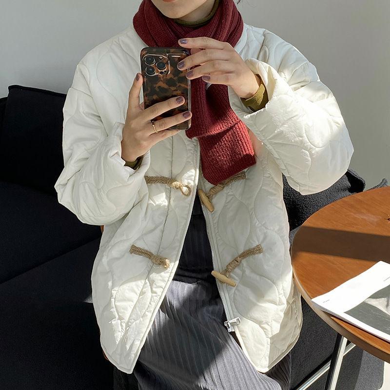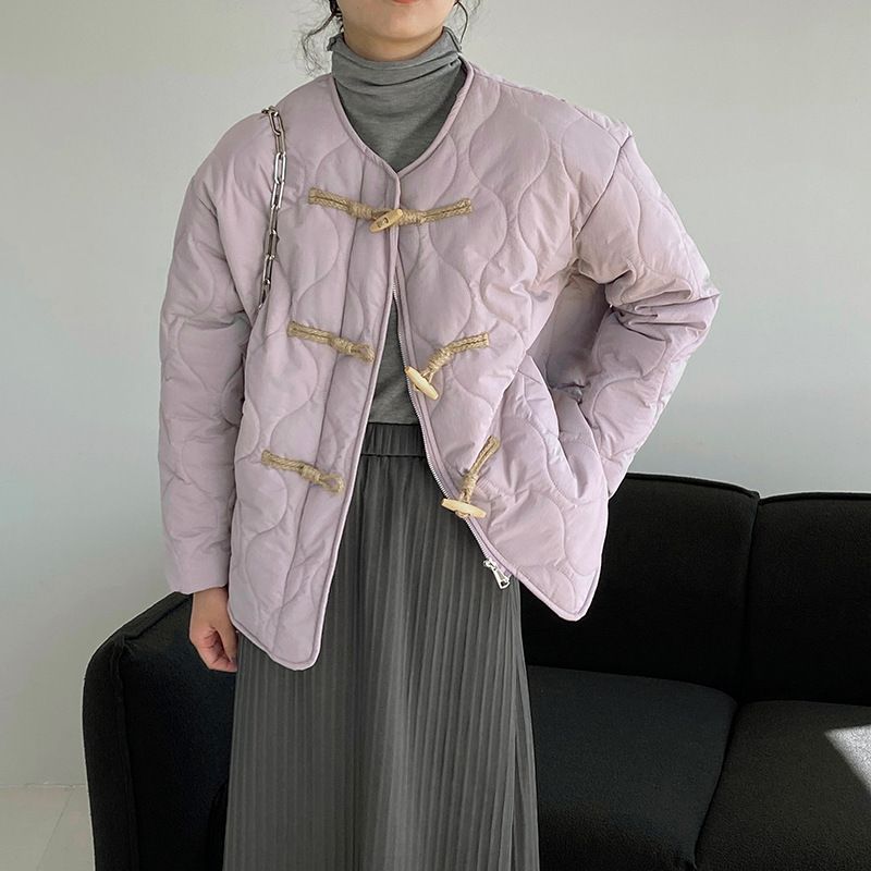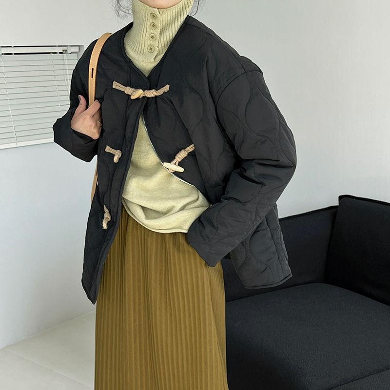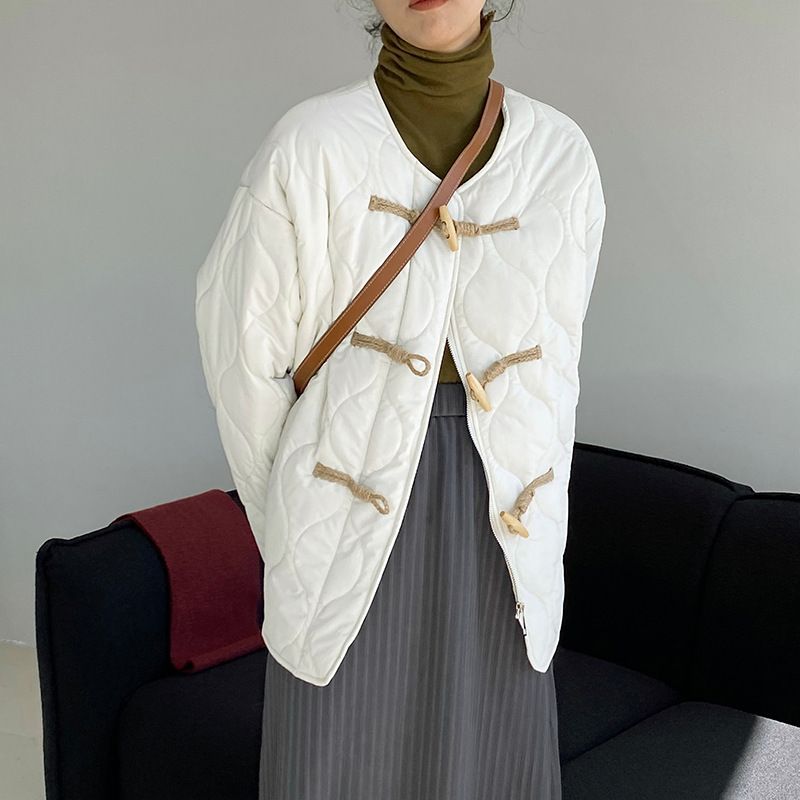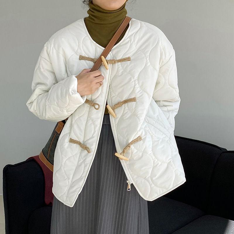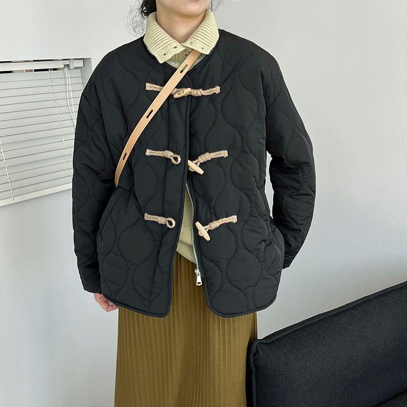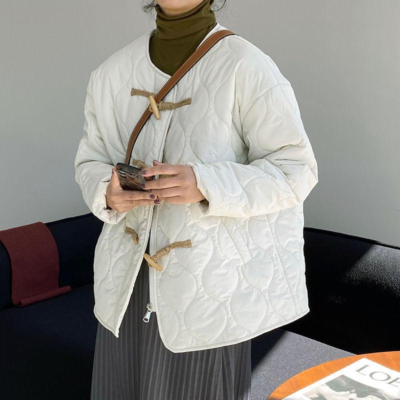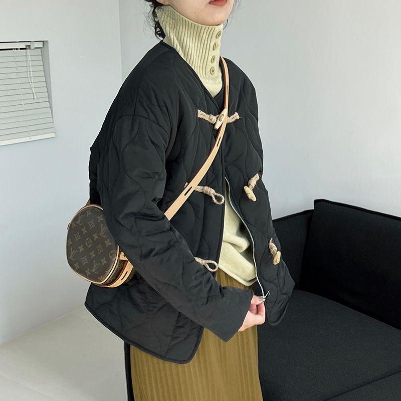 Chaqueta corta acolchada de algodón con hebilla de cuerno para mujer, chaqueta holgada acolchada de algodón estilo coreano, nueva chaqueta de invierno 2020