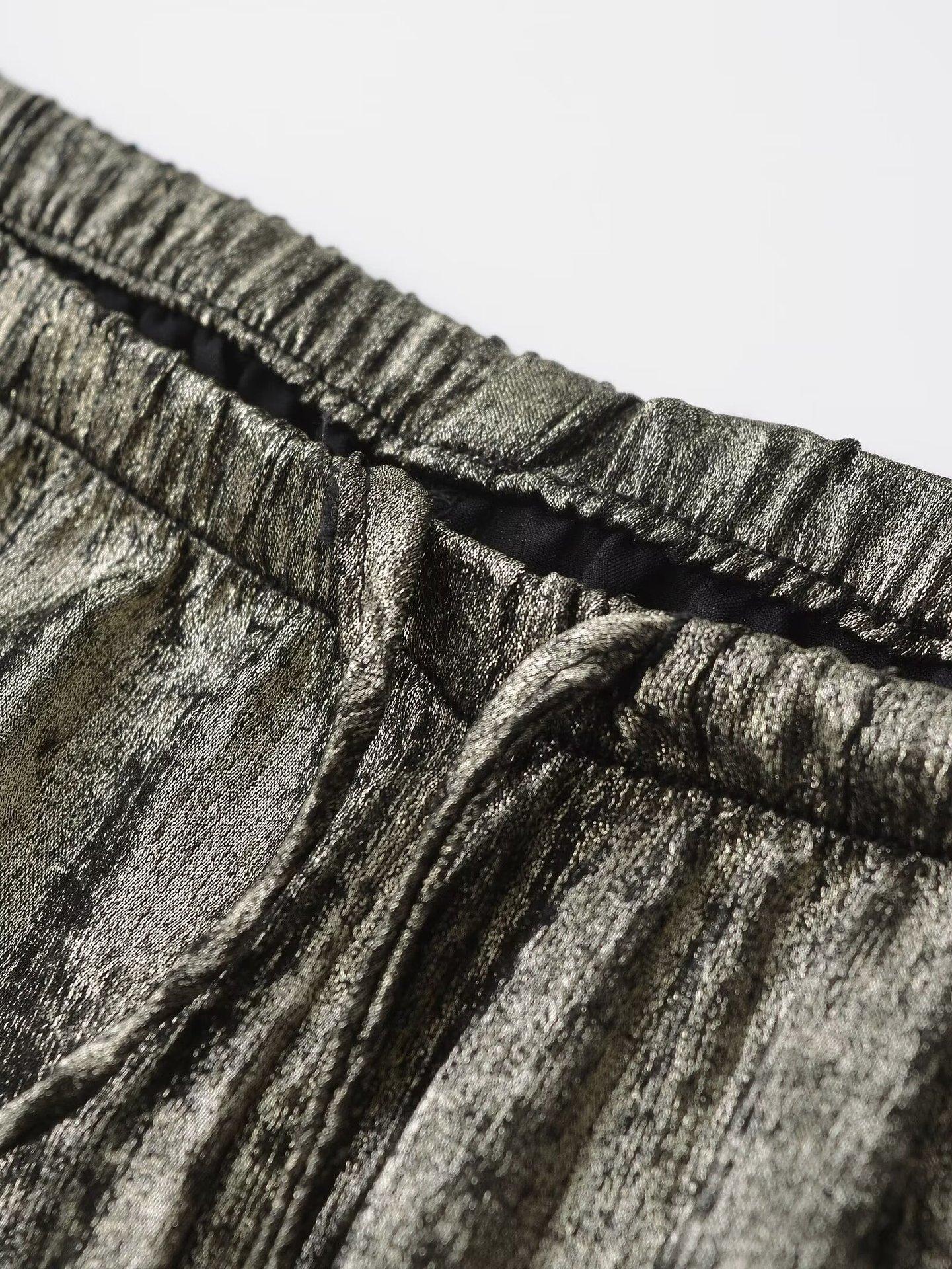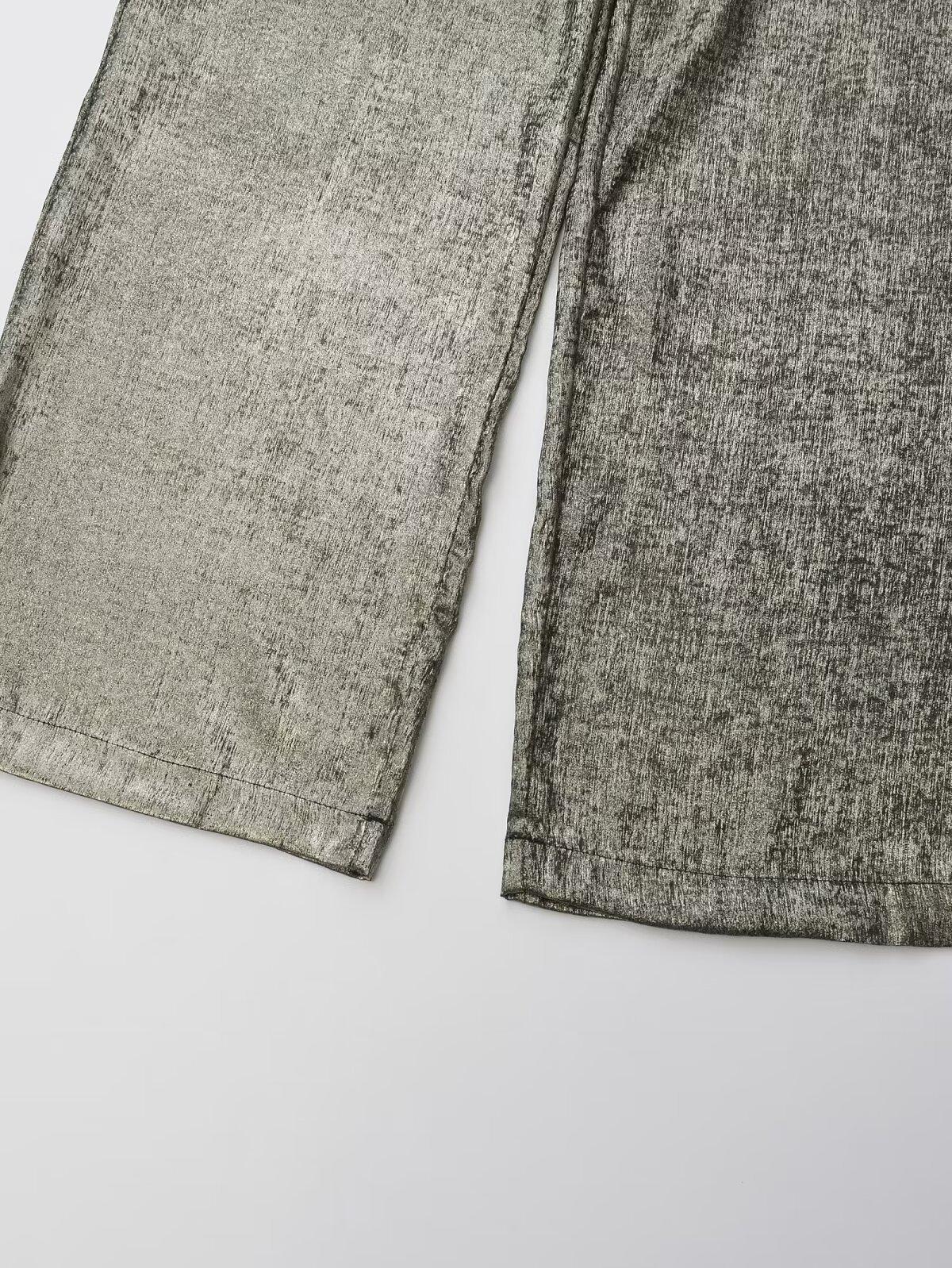 Pantalones anchos informales de moda callejera para mujer, pantalones holgados con drapeado brillante, estilo europeo y americano, primavera 2024