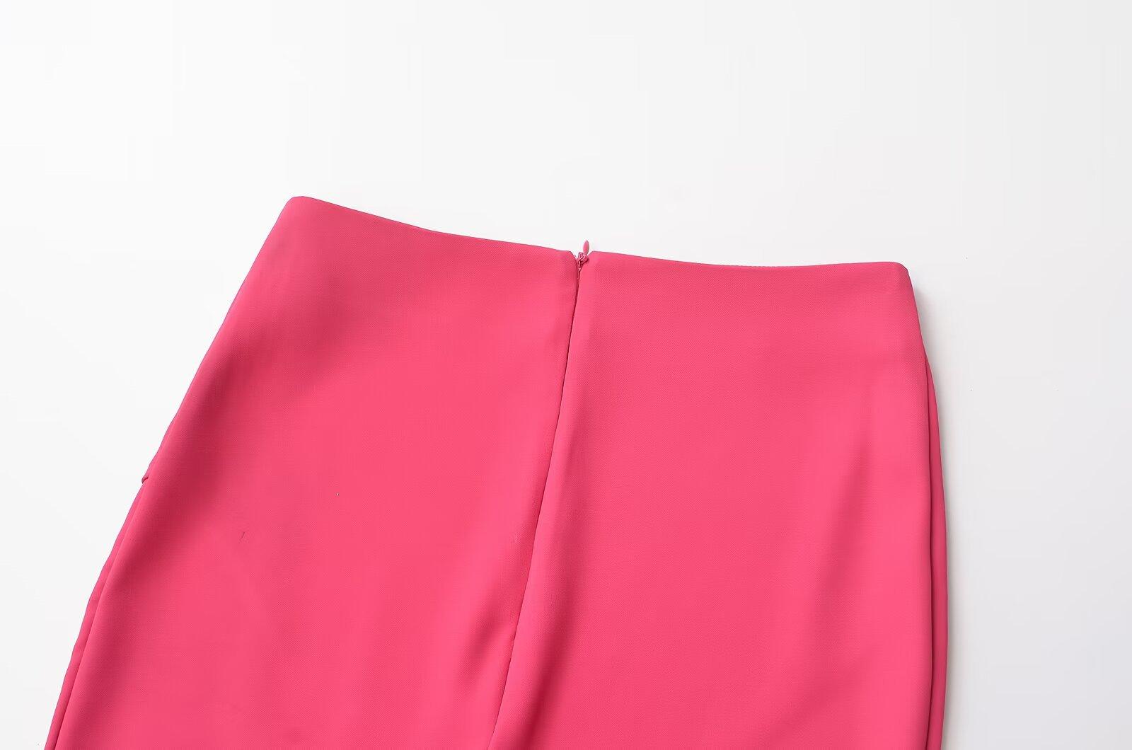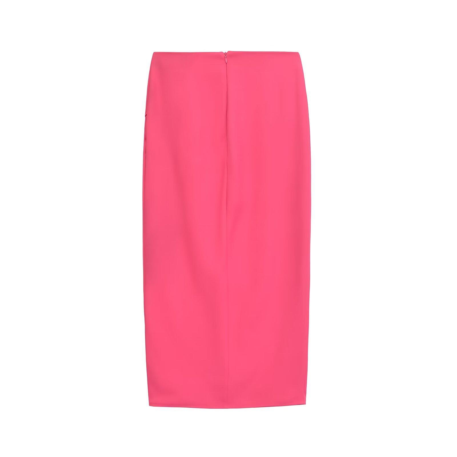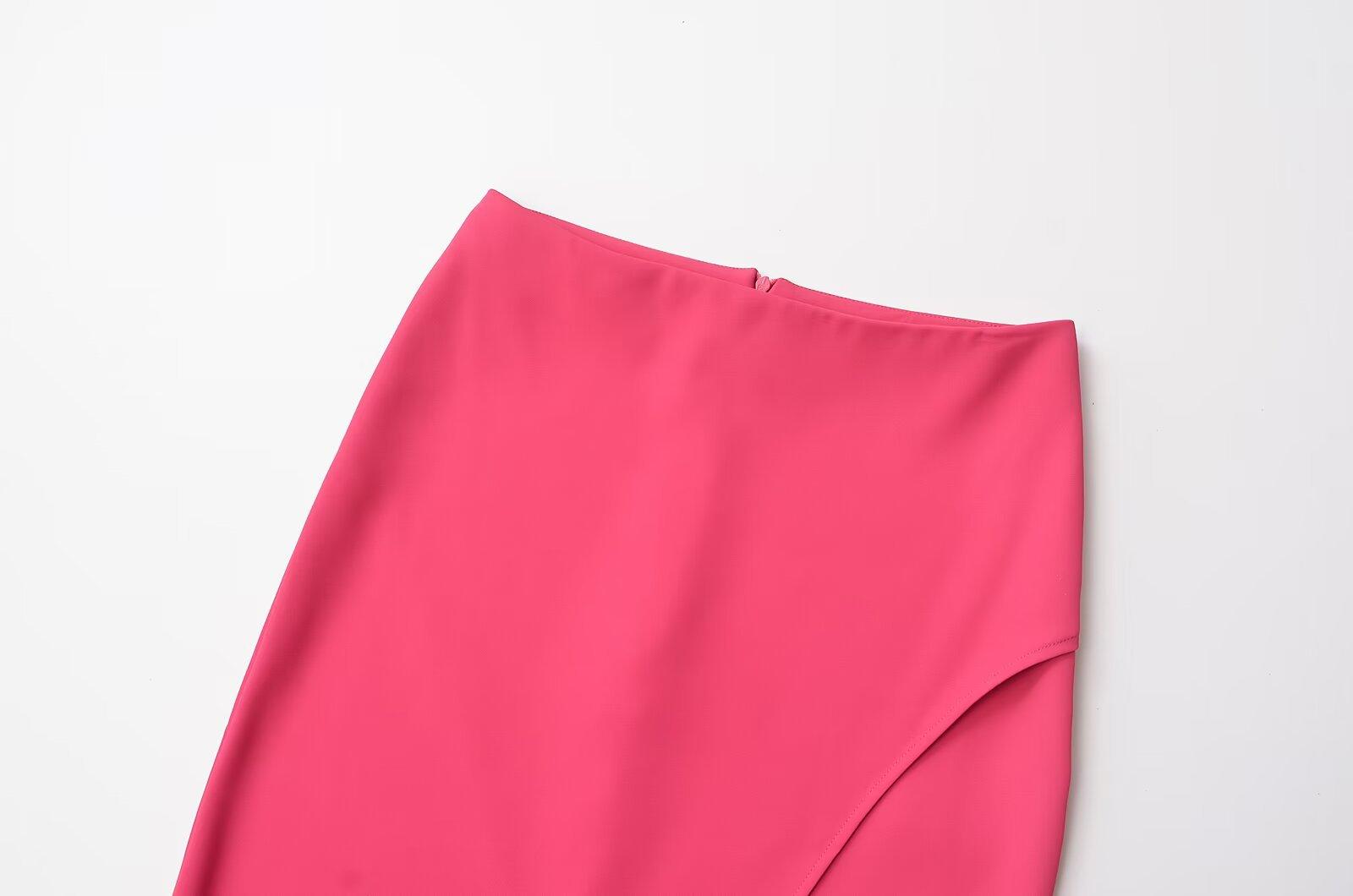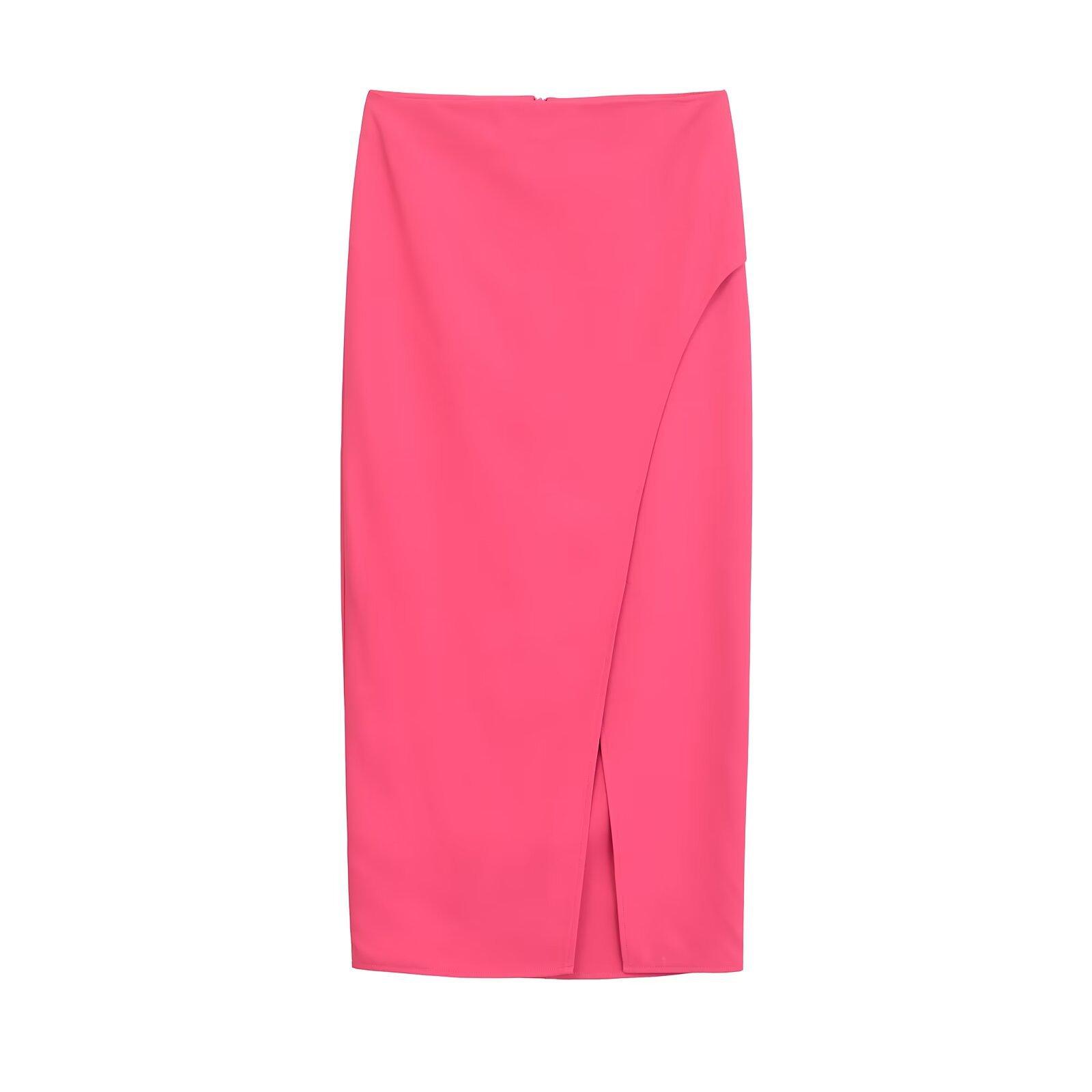 Falda midi decorativa con abertura y cintura alta, elegante, ligera, madura, color rojo rosa, para mujer, estilo transfronterizo europeo y americano, primavera de 2024