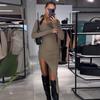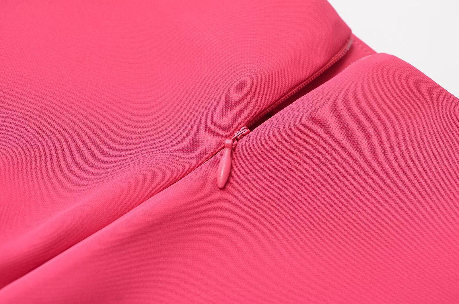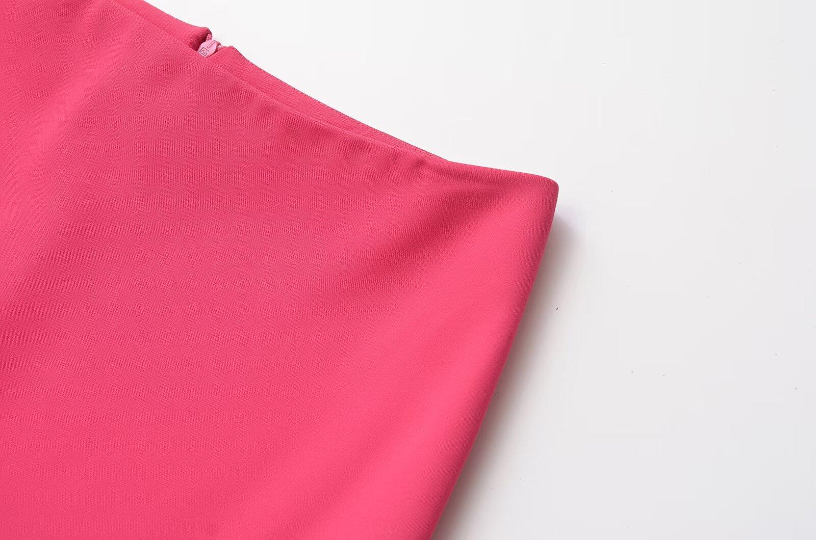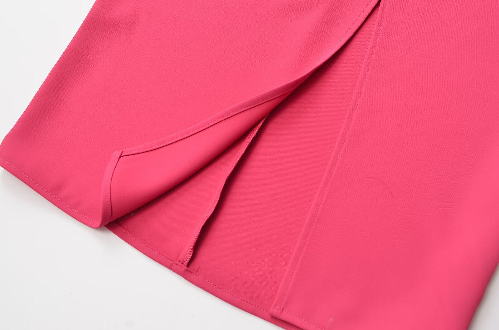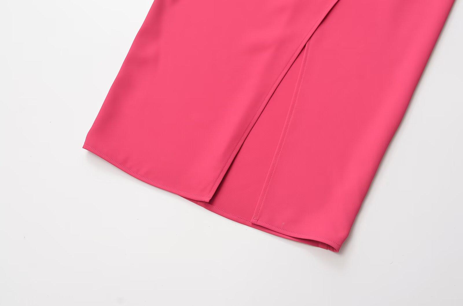 Falda midi decorativa con abertura y cintura alta, elegante, ligera, madura, color rojo rosa, para mujer, estilo transfronterizo europeo y americano, primavera de 2024