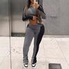 Europa y Estados Unidos transfronterizo 2024 otoño e invierno nuevo Amazon estación independiente combinación de colores hombro manga larga cintura alta ajustado traje casual