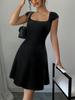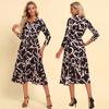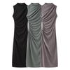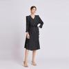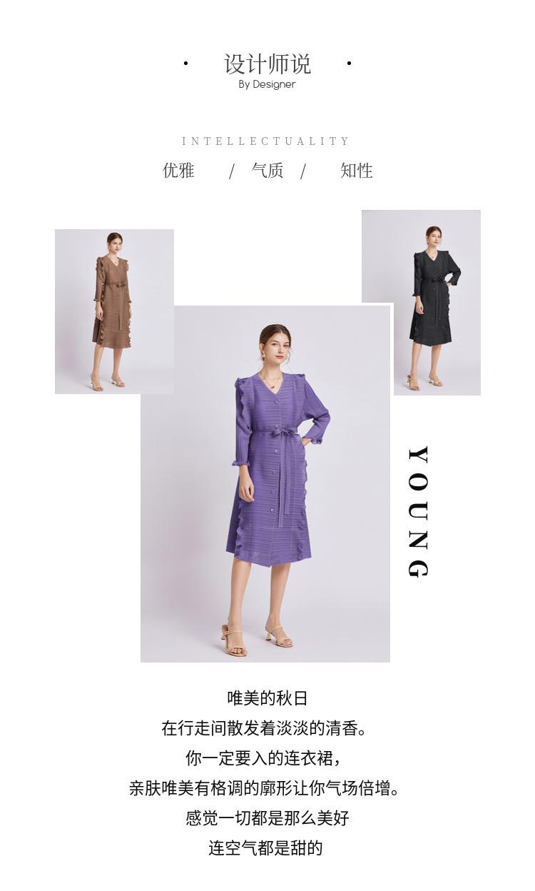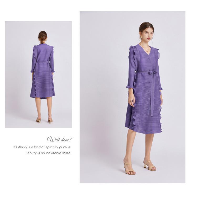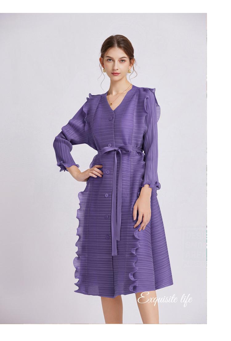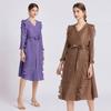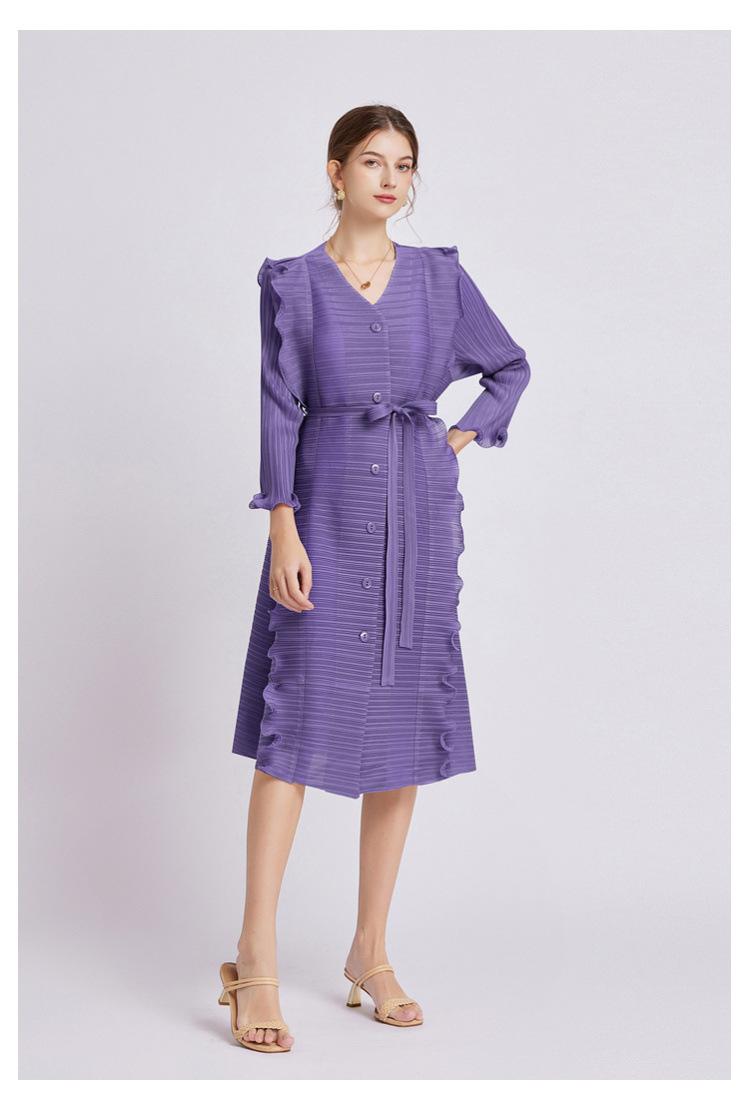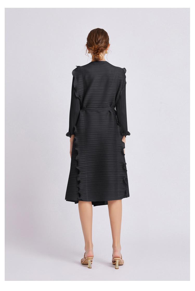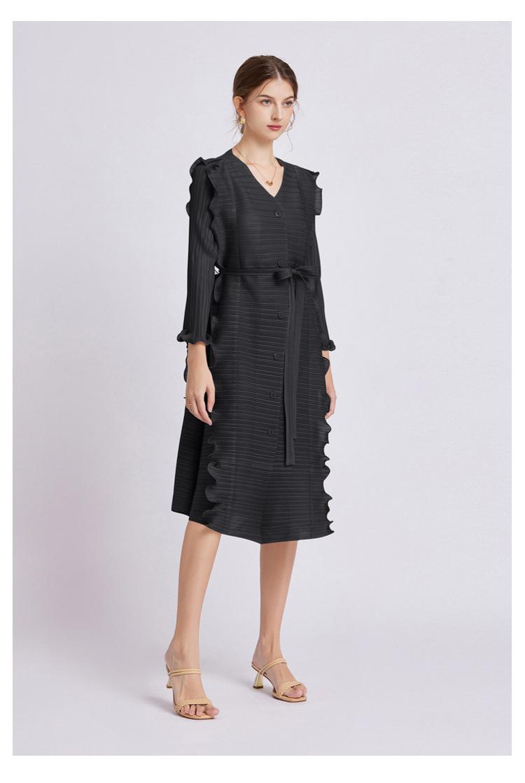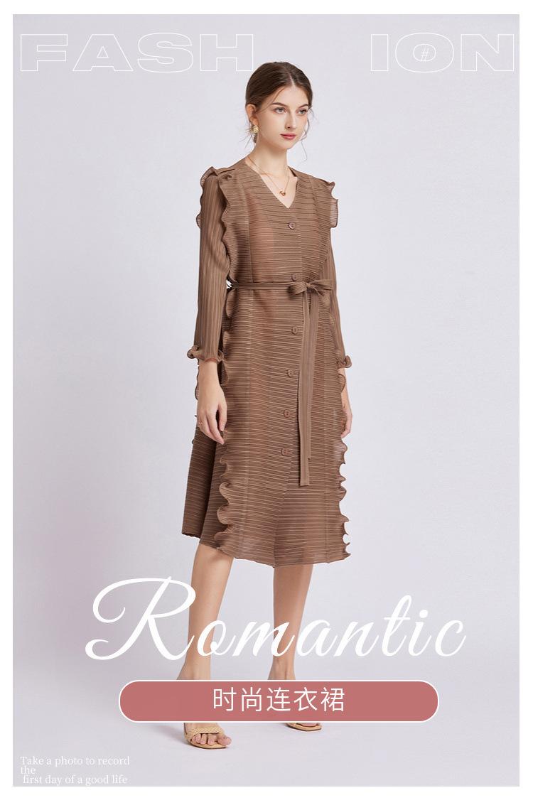 Vestido Sanzhai para mujer otoño 2023 nuevo versátil color sólido elegante para ir al trabajo cuello en V con volantes encaje con cordones en la cintura