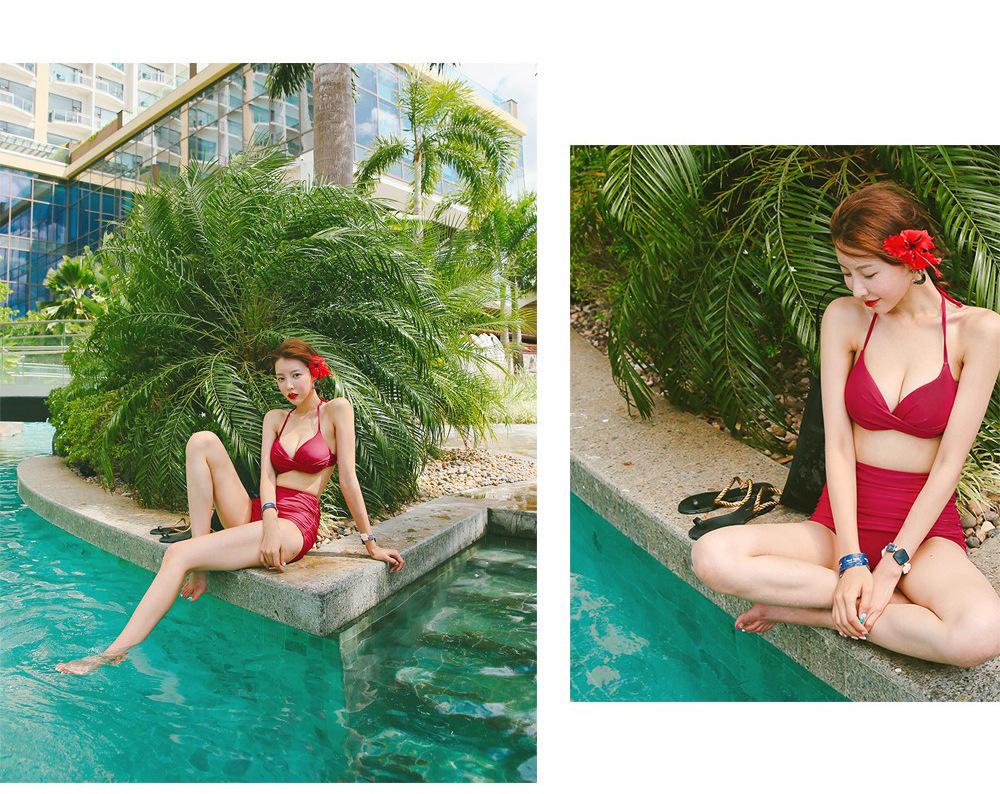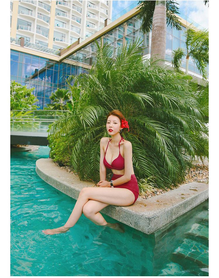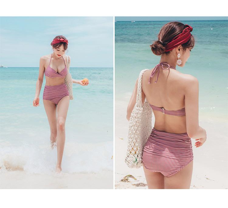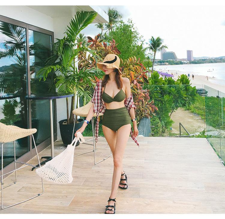 Bikini sexy para mujer de dos piezas dividido con bragas de cintura alta Traje de baño Talla Pecho Push-up Bikini Traje de baño