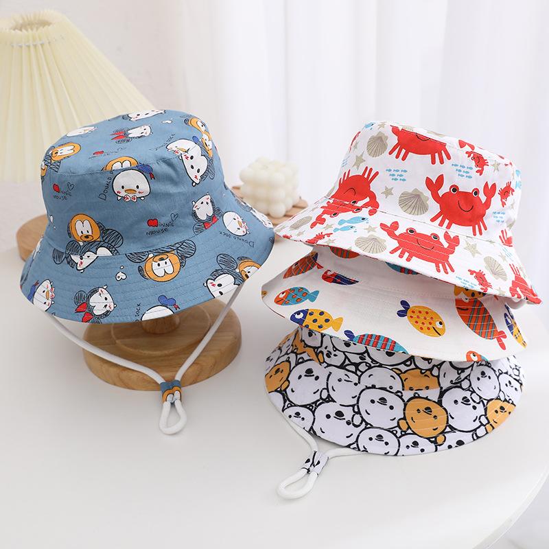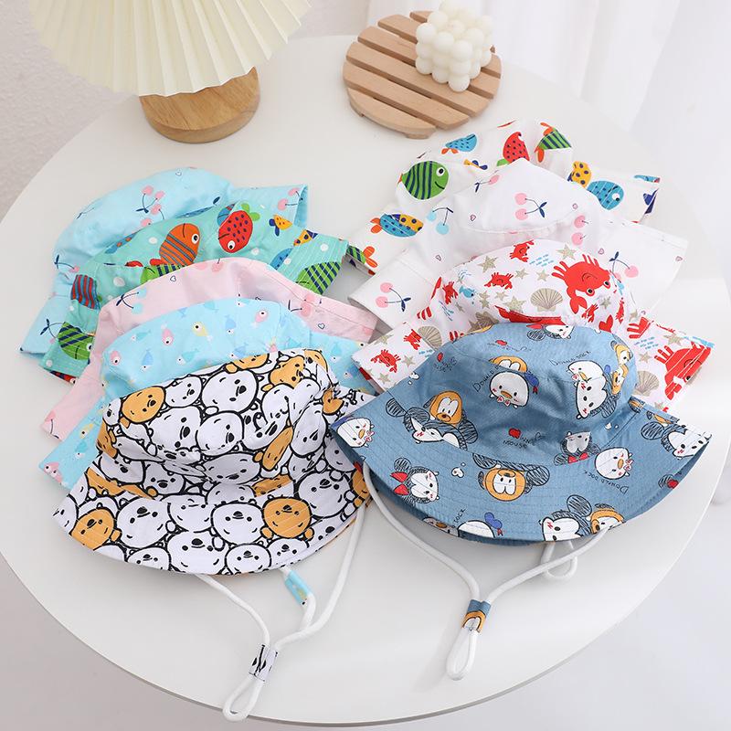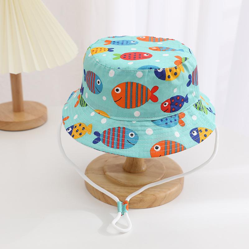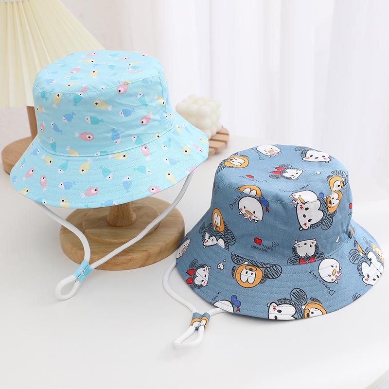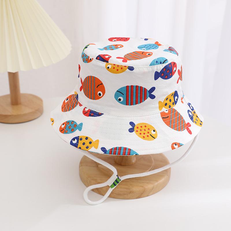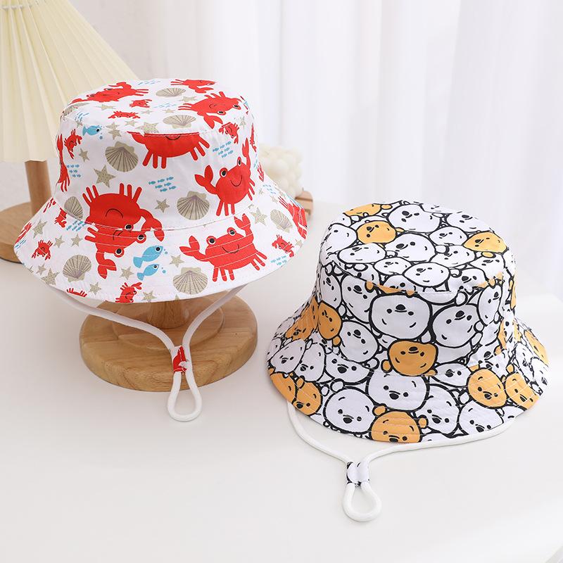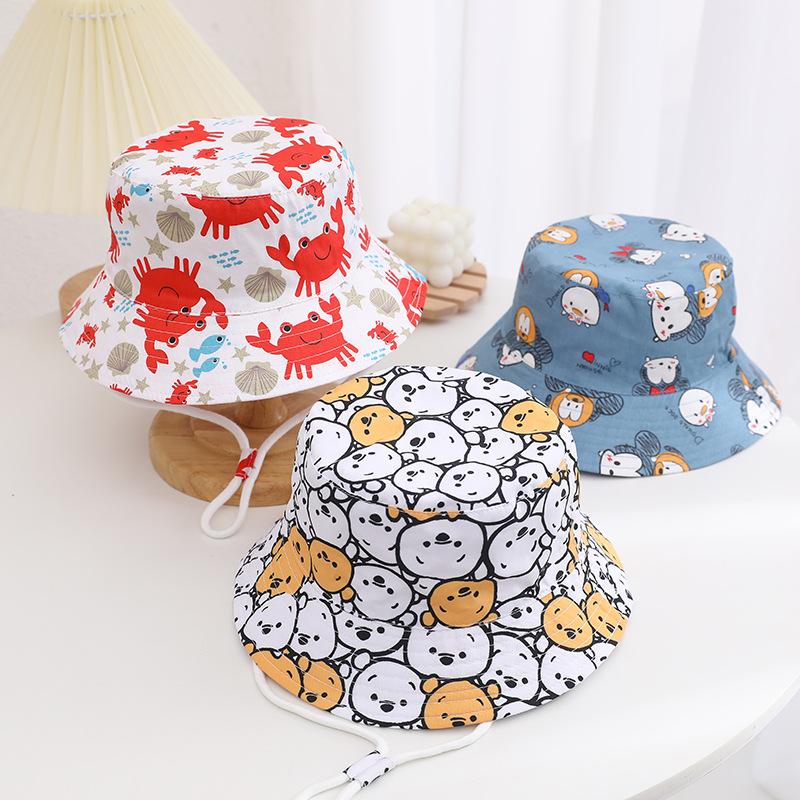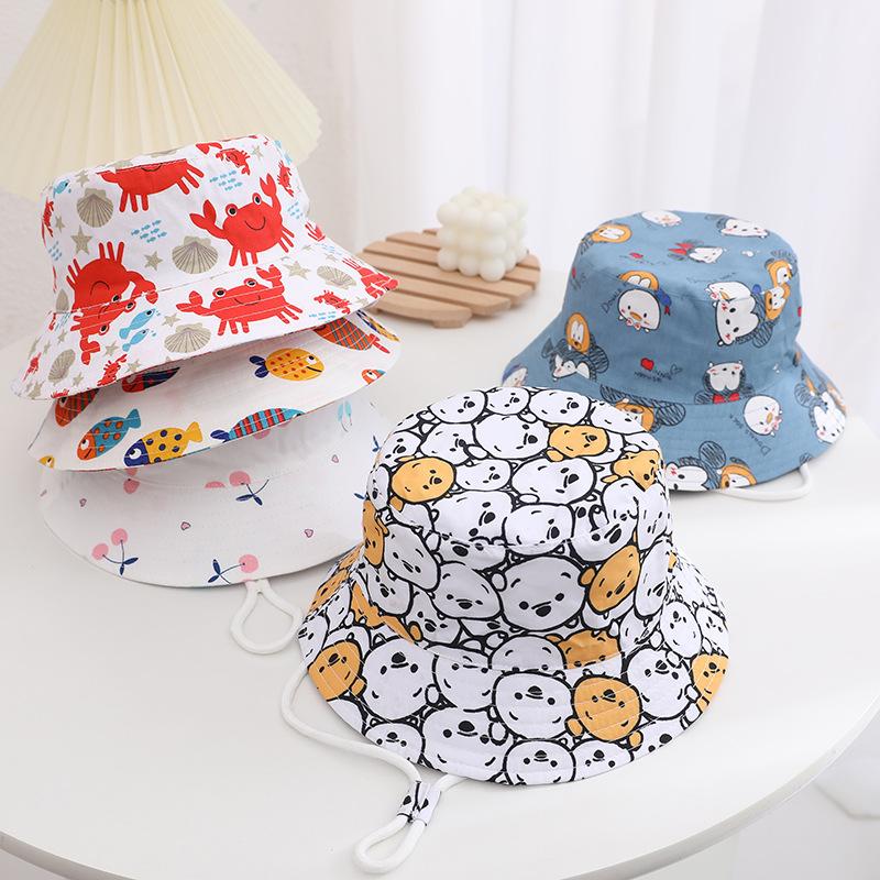 Sombrero infantil transfronterizo lindo sombrero de pescador con estampado de dibujos animados para niños y niñas sombrero de cubo de moda sombrero para el sol sombrero protector solar al por mayor