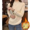 Elegante Camiseta Base de Cuello Semi-alto Estilo Francés para Mujer Otoño e Invierno Una Pieza Terciopelo Grueso Cálido Interior Estilo Occidental Reductor de Edad Top Suave y Ceroso