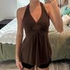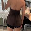 Top de moda con estampado de bordado y cuello plisado, sexy, sin espalda, personalizado, para chica sexy, aspecto ajustado, chaleco que combina con todo.
