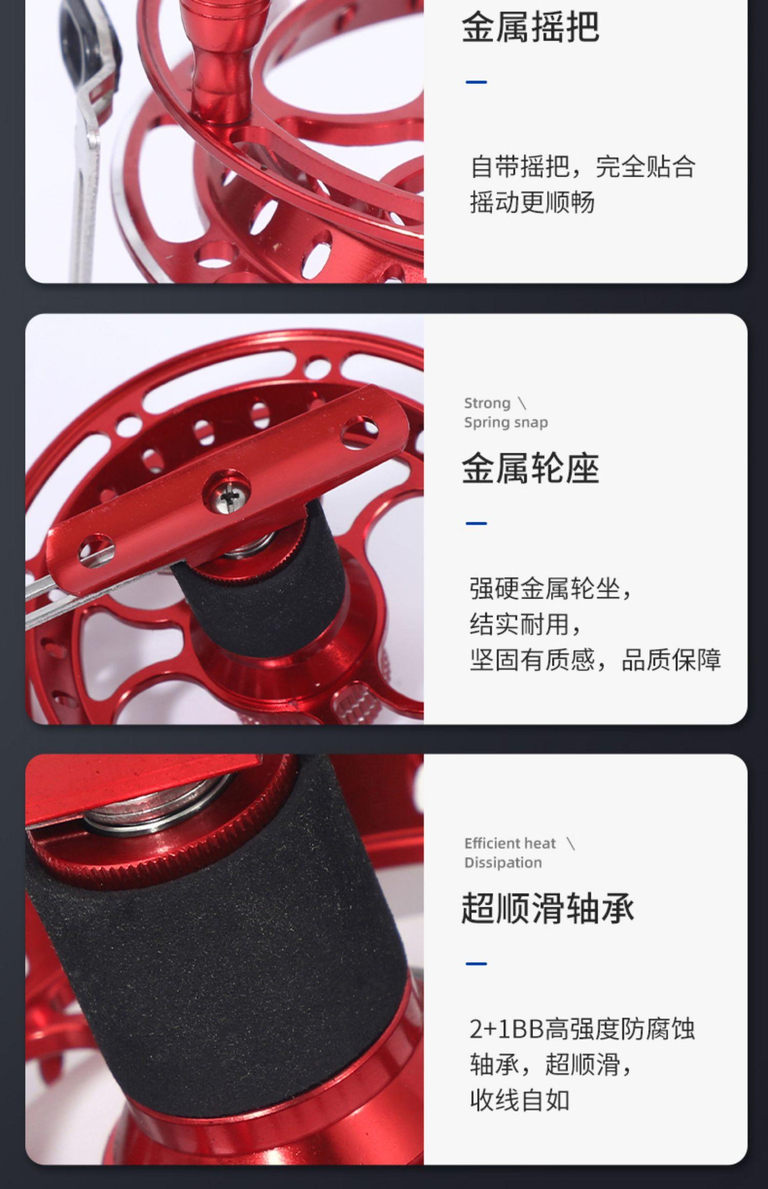 Q* Rueda de Grano Trigo Todo Metal Mejorada, Carrete de Pesca Viento y Fuego, Pesca con Caña Delantera, Remoción de Rueda Delantera para Objetos Grandes, Línea de Pesca Bagua