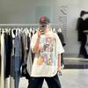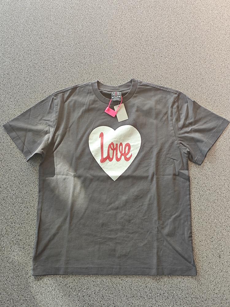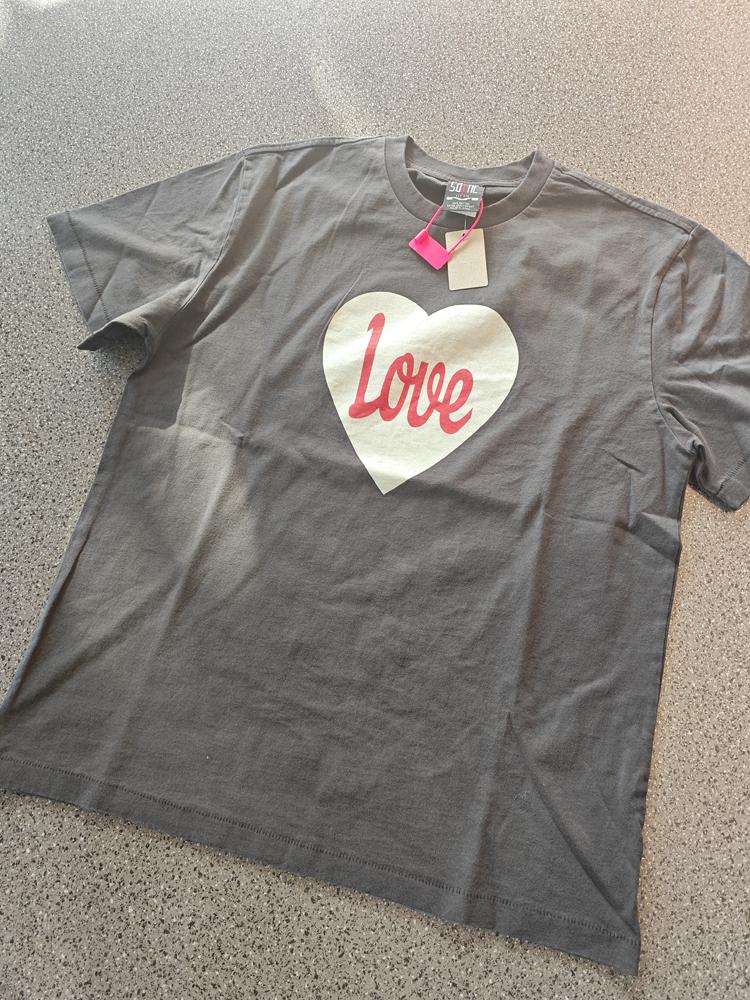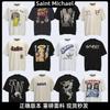 Camiseta de manga corta holgada, desgastada y lavada con el logo de Saint Michael Love, estilo vintage de moda para hombre y mujer.