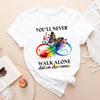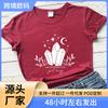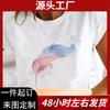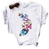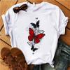 Camiseta de verano de comercio exterior con estampado de mariposas y forma de corazón para mujer, talla europea, manga corta y cuello redondo