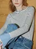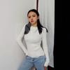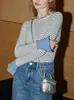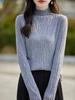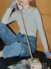 Suéter Ajustado de Manga Larga Elástico para Mujer Otoño e Invierno 2025 Nuevo Cuello Redondo Bajo Empalmado Suéter Básico