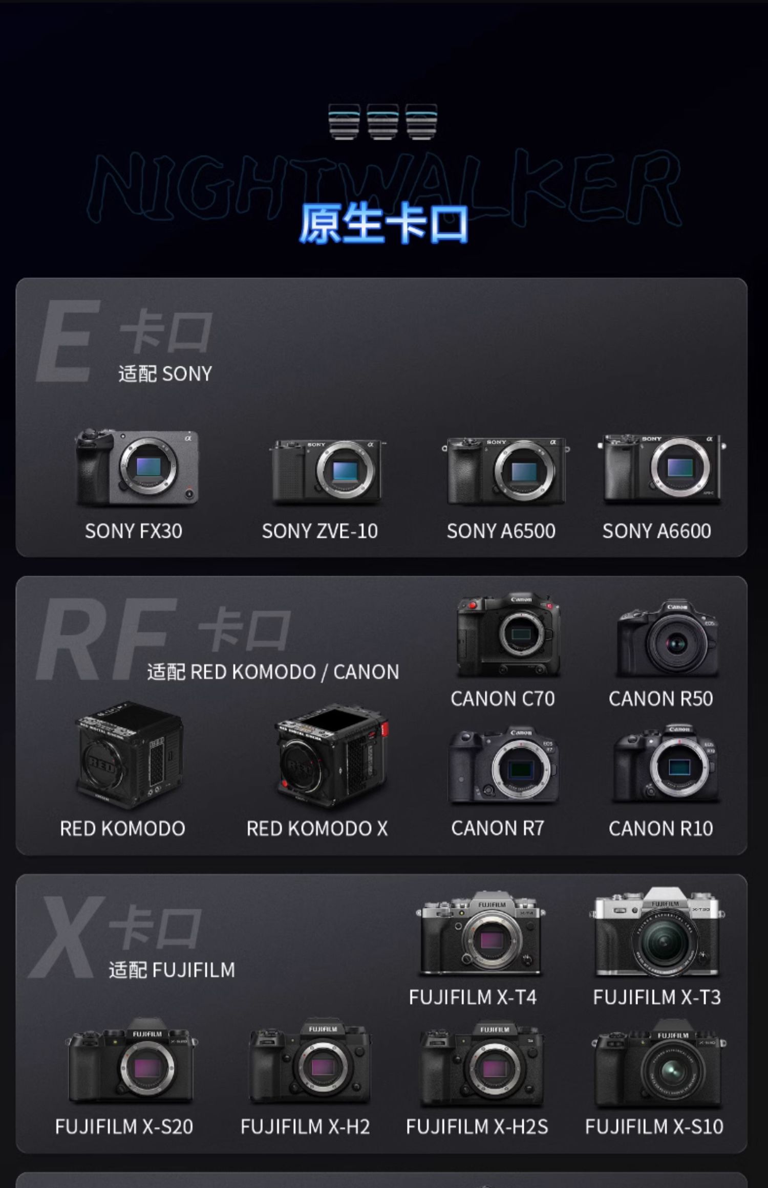 E-mount, Fuji X port, Canon RF port, Macro 4/3 system interface, L bayonet