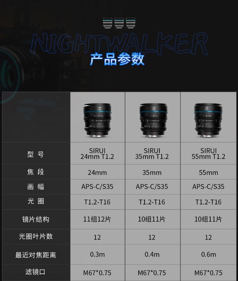 Objetivo de película manual Sirui Night Walker de 24 mm T1.2, 35 fotogramas, gran apertura, retrato, vídeo corto, puerto para tarjeta electrónica